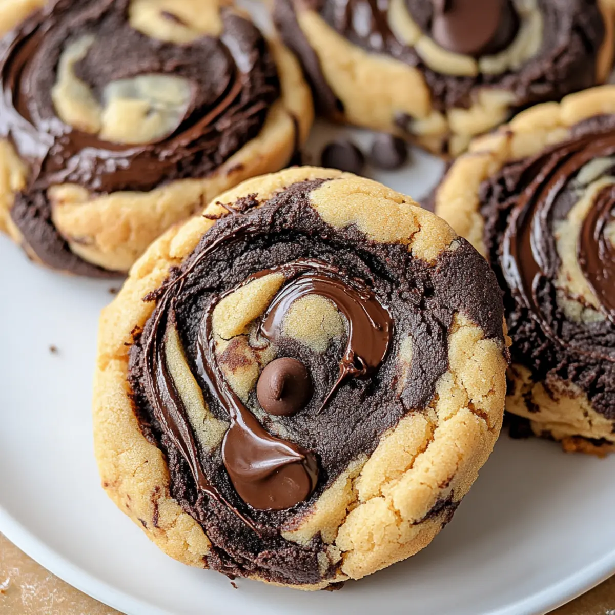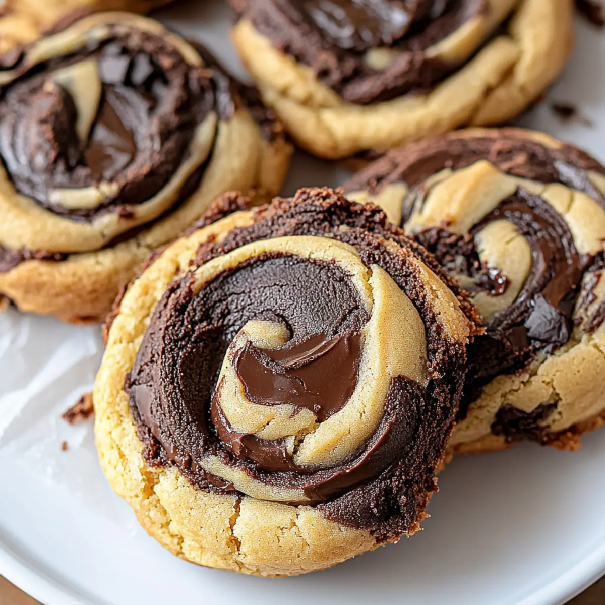 As I rummaged through my pantry one rainy afternoon, I stumbled upon half a jar of peanut butter and a longing for something sweet. That’s when the idea struck me: why not combine the nostalgia of rich, fudgy brownies with the creamy goodness of peanut butter? Enter my Peanut Butter Brownie Swirl Cookies. This delightful treat marries the best of both worlds, creating a portable indulgence that’s not only quick to whip up but also easily customized for various dietary needs. Whether you’re after a gluten-free option or seeking a vegan twist, these cookies have you covered! With hints of melty chocolate and a swirl of nutty flavor, they’re bound to impress anyone who takes a bite. Ready to create a delectable masterpiece that will delight your taste buds? Let’s get cookie-ing! What makes these cookies so irresistible? Decadent Flavor Pairing: The luscious combination of rich chocolate and creamy peanut butter will have your taste buds dancing with joy. Easily Adaptable: No matter your dietary needs—gluten-free, dairy-free, or vegan—you can enjoy a delicious treat! Quick and Simple: These cookies come together in a snap, perfect for those busy days when you need a sweet fix fast. Crowd-Pleasing Delight: They’re a hit at any gathering, guaranteed to impress friends and family alike. For a satisfying dessert experience, consider pairing them with a refreshing glass of milk or a scoop of your favorite Cookies Cream Ice. Peanut Butter Brownie Swirl Cookies Ingredients • Whether you’re about to bake or simply curious about the magic behind these treats, here’s what you’ll need! For the Peanut Butter Dough Creamy Peanut Butter – Adds rich, nutty flavor and moisture. Substitute with almond butter for a peanut-free version. Butter (softened & melted) – Provides structure and richness in both dough components. Use dairy-free butter for a dairy-free option. Brown Sugar – Sweetens the peanut butter cookie dough and adds moisture. Coconut sugar can be used for a refined sugar-free alternative. Egg – Binds the ingredients together and contributes to the cookie’s chewy texture. A flax egg can be used for a vegan version. Vanilla Extract – Enhances the overall flavor profile of both doughs. Ensure it’s pure for the best taste. All-Purpose Flour – Provides structure and stability to the cookies. Substitute with gluten-free flour blend for gluten-free variation. Baking Soda – Helps the peanut butter cookies rise slightly. Baking powder can be a substitute, but will alter texture. Salt – Balances sweetness and enhances flavors. Consider using sea salt for a gourmet touch. For the Brownie Dough White Sugar – Sweetens and contributes to the texture of the brownie batter. Use the equivalent amount of coconut sugar for refined-sugar-free cookies. Cocoa Powder – Infuses the brownie dough with rich chocolate flavor. Consider Dutch-processed for a milder chocolate taste. Chocolate Chips – Adds melty chocolate bites to the brownie dough. Dark chocolate chips can enhance richness. Now that you have all the essential Peanut Butter Brownie Swirl Cookies ingredients, you’re just one step away from baking a delightful batch that’s sure to impress! Step‑by‑Step Instructions for Peanut Butter Brownie Swirl Cookies Step 1: Prepare the Peanut Butter Dough In a large mixing bowl, cream together 1 cup of creamy peanut butter, 1/2 cup softened melted butter, and 1 cup brown sugar until the mixture is light and fluffy, approximately 3-4 minutes. Add in 1 egg and 1 teaspoon of vanilla extract, blending just until incorporated. In a separate bowl, whisk together 1 cup of all-purpose flour, 1/2 teaspoon baking soda, and a pinch of salt before gradually mixing it into the wet ingredients until just combined. Step 2: Prepare the Brownie Dough In another mixing bowl, whisk together 1/2 cup melted butter and 1 cup white sugar until the mixture is smooth and shiny, about 2 minutes. Stir in 1/3 cup cocoa powder, followed by 1 egg and 1 teaspoon of vanilla extract, mixing until fully incorporated. Finally, fold in 1/2 cup of flour, 1/4 teaspoon baking powder, and a pinch of salt along with 1/2 cup chocolate chips until just combined, creating a rich brownie batter. Step 3: Chill Doughs Wrap both the peanut butter and brownie doughs in plastic wrap and place them in the refrigerator for about 30 minutes. Chilling the doughs will firm them up, making them easier to scoop and swirl later. While you wait, preheat your oven to 350°F (175°C) to ensure it’s ready for baking after forming the cookies. Step 4: Form Cookies Once chilled, take cookie scoops of each dough—1-2 tablespoons each—and place them side by side on a parchment-lined baking sheet. Use a toothpick or skewer to gently swirl the cookie doughs together, creating a beautiful marbled effect. Be careful not to overmix, as the distinct swirl is part of what makes these Peanut Butter Brownie Swirl Cookies so visually appealing! Step 5: Bake Carefully place the baking sheet in the preheated oven and bake for 9-11 minutes. Keep an eye on the cookies; they should have lightly crackly tops and slightly set edges, while the centers remain soft. The right visual cues will ensure that your cookies are perfect—just baked enough to maintain that fudgy brownie texture! Step 6: Cool and Serve Allow the cookies to cool on the baking sheet for about 5-10 minutes after removing them from the oven. This resting time helps them set up properly. Once cool enough to handle, transfer them to a wire rack to cool completely. Now, your Peanut Butter Brownie Swirl Cookies are ready to be enjoyed—delight in their decadent flavors! Peanut Butter Brownie Swirl Cookies Variations Feel free to get creative and adjust this recipe to suit your tastes or dietary needs! Gluten-Free: Replace all-purpose flour with a gluten-free blend for a deliciously inclusive cookie. Enjoy the same rich flavors and fudgy texture without the gluten! Dairy-Free: Us