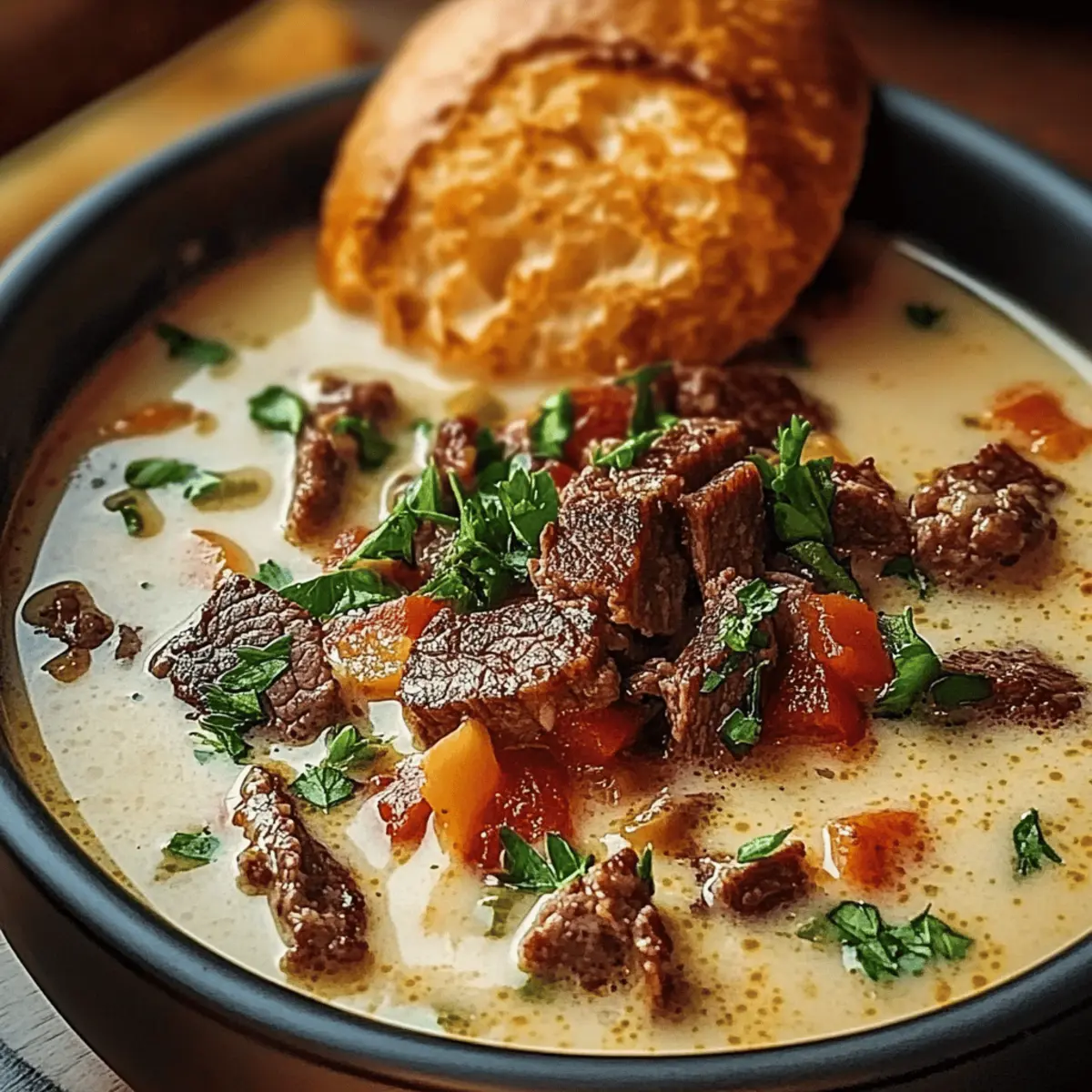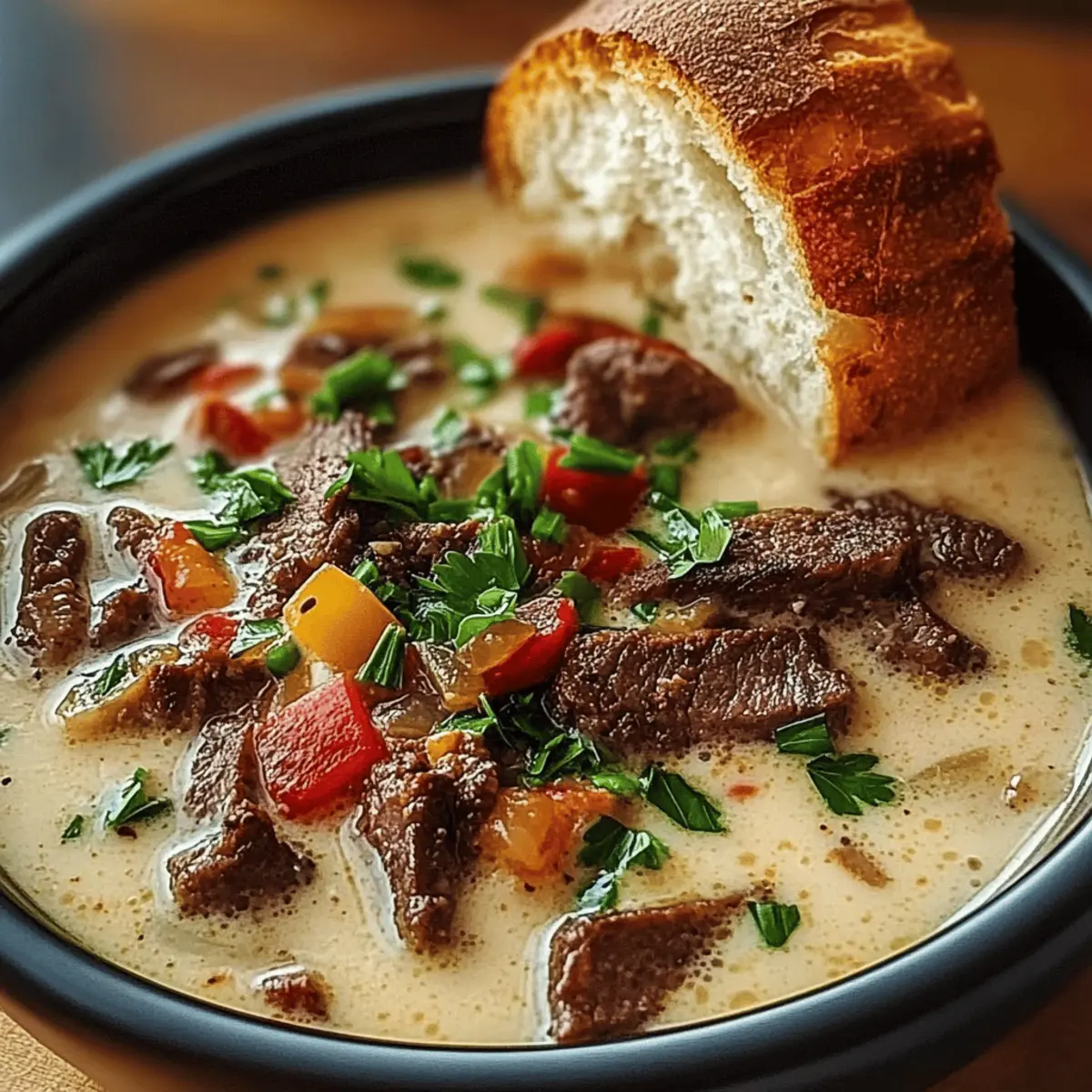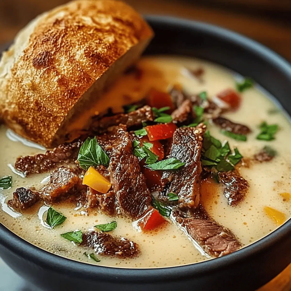 Indulge in a comforting bowl of Philly Cheesesteak Soup, a creamy twist on the classic sandwich, perfect for chilly nights.
