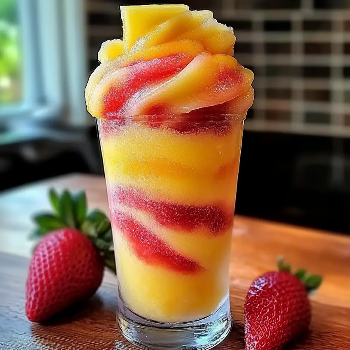 The cool breeze of summer sweeps through the kitchen as I grab my blender, ready to create something truly refreshing. If you’ve ever longed for a bittersweet farewell to sticky fast food and an embrace by the uplifting flavors of summer, you’re in for a treat with these Pineapple Strawberry Swirled Slushies. This easy-to-make concoction not only quenches your thirst in mere minutes but also dazzles your guests with its vibrant colors. Naturally sweetened and vegan-friendly, these slushies are the ideal companion for sun-drenched afternoons and garden parties. Imagine how the icy textures of tangy strawberries intertwining with the tropical sweetness of pineapple can elevate your everyday sipping experience. Are you ready to unlock this delightful summer treasure? Why are Pineapple Strawberry Slushies a Must-Try? Refreshing sensations await you with every sip, making these slushies a perfect antidote to summer heat! Vibrant colors and layers create an eye-catching presentation that’s sure to impress at your next gathering. Easy to whip up, these slushies can be ready in under 10 minutes, freeing you to enjoy more sun. Naturally sweetened with honey or alternate sweeteners, they cater to various dietary needs, making them a delightful choice for everyone. You can even explore optional flavor boosts or enjoy them as a cocktail, ensuring your refreshment is as versatile as it is tasty! Pineapple Strawberry Swirled Slushies Ingredients For the Pineapple Slush • Frozen Pineapple Chunks – The main flavor base that, when fully frozen, creates the perfect icy texture for your slush. • Pineapple Juice or Water – This liquid will help blend the pineapple smoothly; use water to tone down the sweetness if desired. • Honey (optional) – Adds a natural sweetness to enhance flavor; adjust or omit for a vegan-friendly slush. For the Strawberry Slush • Frozen Strawberries – The primary flavor base for the strawberry layer; ensure they are completely frozen for the best results. • Strawberry Juice or Water – To achieve the right consistency when blending; feel free to adjust the amount as necessary. • Honey (optional) – Works similarly in the strawberry mix for that added sweetness; adjust based on preference. With these Pineapple Strawberry Swirled Slushies ingredients, you’ll be well on your way to creating a refreshing drink that’ll be a hit during any summer gathering! Step‑by‑Step Instructions for Pineapple Strawberry Swirled Slushies Step 1: Prepare the Pineapple Slush Begin by blending 2 cups of frozen pineapple chunks in your high-speed blender. Add 1 cup of pineapple juice or water to help the blending process, plus 1-2 tablespoons of honey if desired for extra sweetness. Blend for about 30-45 seconds until the mixture is smooth and thick, adjusting the liquid if necessary for your preferred consistency. Once done, set this vibrant pineapple slush aside. Step 2: Prepare the Strawberry Slush Next, clean your blender thoroughly to avoid flavor mixing. Add 2 cups of frozen strawberries along with 1 cup of strawberry juice or water to the blender. You can also include honey to taste if you like a sweeter slush. Blend for 30-45 seconds until you achieve a smooth, thick texture, ensuring it matches the consistency of the pineapple mixture. Set this strawberry slush aside after blending. Step 3: Assemble the Swirled Slushies Get ready to create your stunning Pineapple Strawberry Swirled Slushies! Grab 4 tall glasses, and begin by spooning a layer of the pineapple slush into each glass. Next, add a layer of the strawberry slush on top, creating a beautiful two-toned effect. Use a spoon or straw to gently swirl the colors together for an eye-catching marbled look. Step 4: Serve Immediately Once your slushies are beautifully layered and swirled, it’s time to serve! Pour in a few colorful straws into each glass and enjoy your refreshing Pineapple Strawberry Swirled Slushies right away. The best experience comes from sipping them chilled and fresh, making this delightful drink perfect for summer gatherings or a relaxing afternoon in the sun. Make Ahead Options Preparing Pineapple Strawberry Swirled Slushies in advance is a fantastic way to save time during busy summer days! You can blend the pineapple and strawberry slushes up to 24 hours ahead of time and store them separately in the refrigerator. Just remember to keep the slushes tightly sealed to maintain their vibrant colors and prevent browning. When you’re ready to serve, simply give each slush a quick stir in the blender to restore that delightful icy texture before layering them in glasses. This way, you’ll have a refreshing drink ready to impress your guests with minimal effort, making your hot summer gatherings even more enjoyable! What to Serve with Pineapple Strawberry Swirled Slushies There’s nothing quite like refreshing slushies to elevate your summer gatherings. Pair these vibrant treats with delightful options that enhance your sunny experience. Fruit Skewers: An assortment of seasonal fruits adds a colorful touch and complements the slushy’s sweet flavors, providing a fresh bite. Light Salads: A refreshing salad with greens, avocado, and citrus dressing balances the sweetness of the slushies and makes for a delightful contrast. Grilled Shrimp Tacos: The zesty flavors of grilled shrimp tacos create a delightful blend with the tropical slushies; think summer beach paradise on a plate! Coconut Water: Hydrating and refreshing, coconut water offers a subtle tropical twist that aligns perfectly with the flavors of your slushies. Chips and Salsa: The crunchiness of tortilla chips paired with zesty salsa provides an enjoyable texture contrast and pairs beautifully with the fruity drinks. Lemon Sorbet: For a double fruity treat, serve a scoop of lemon sorbet alongside the slushies for an extra touch of chill and zest. Iced Herbal Tea: Lightly sweetened herbal tea adds refreshing notes that align with yo