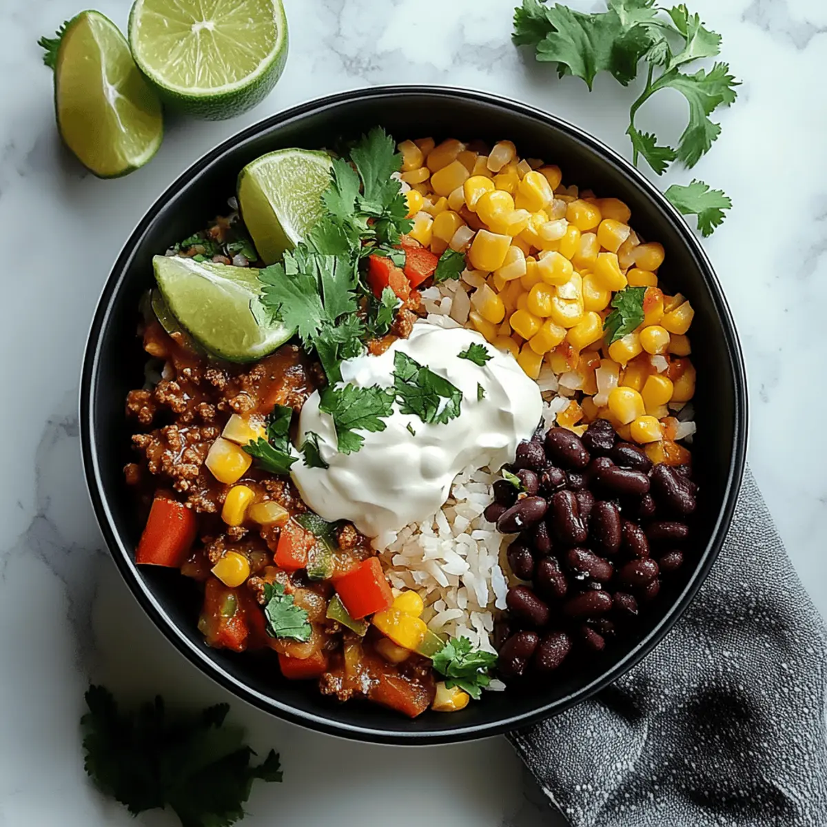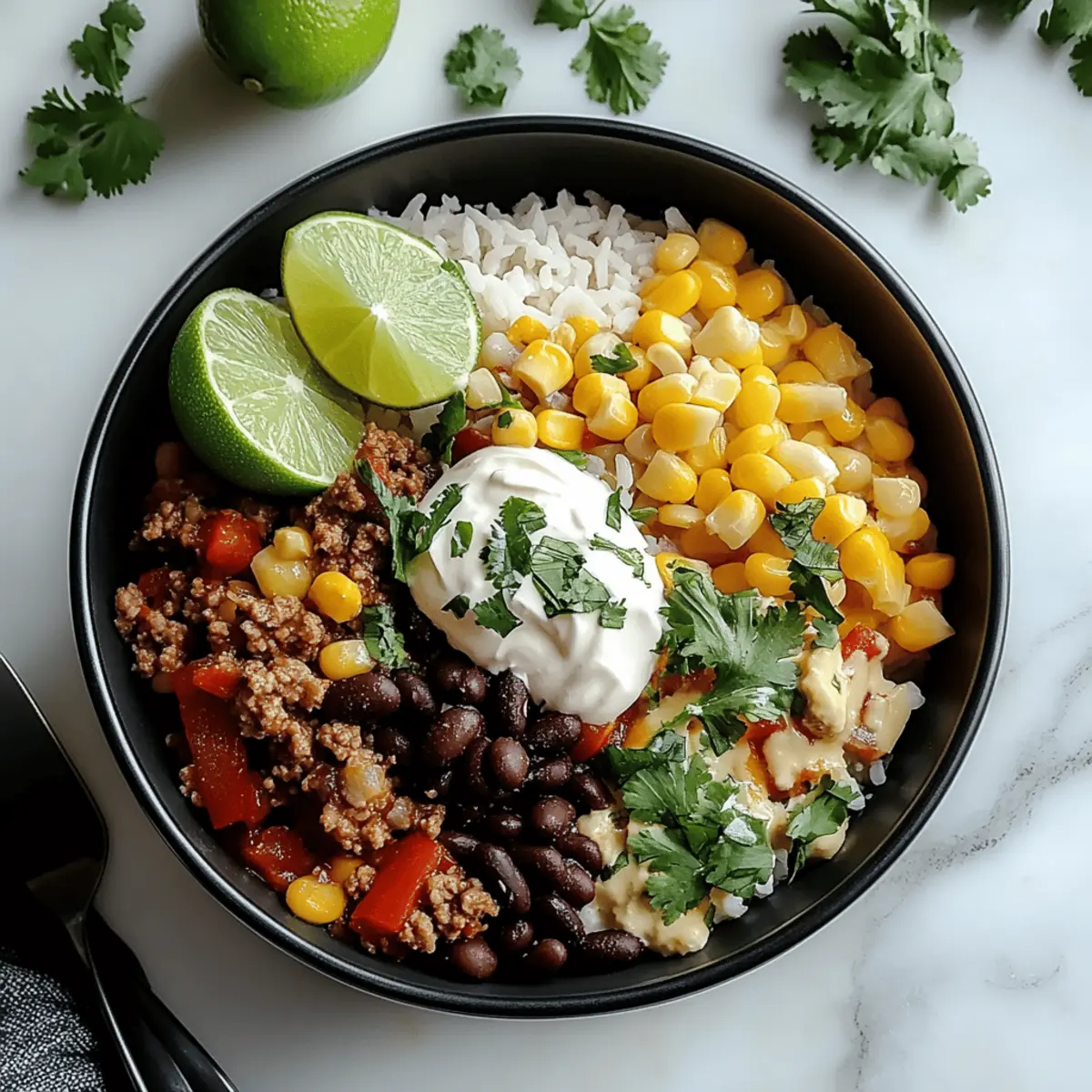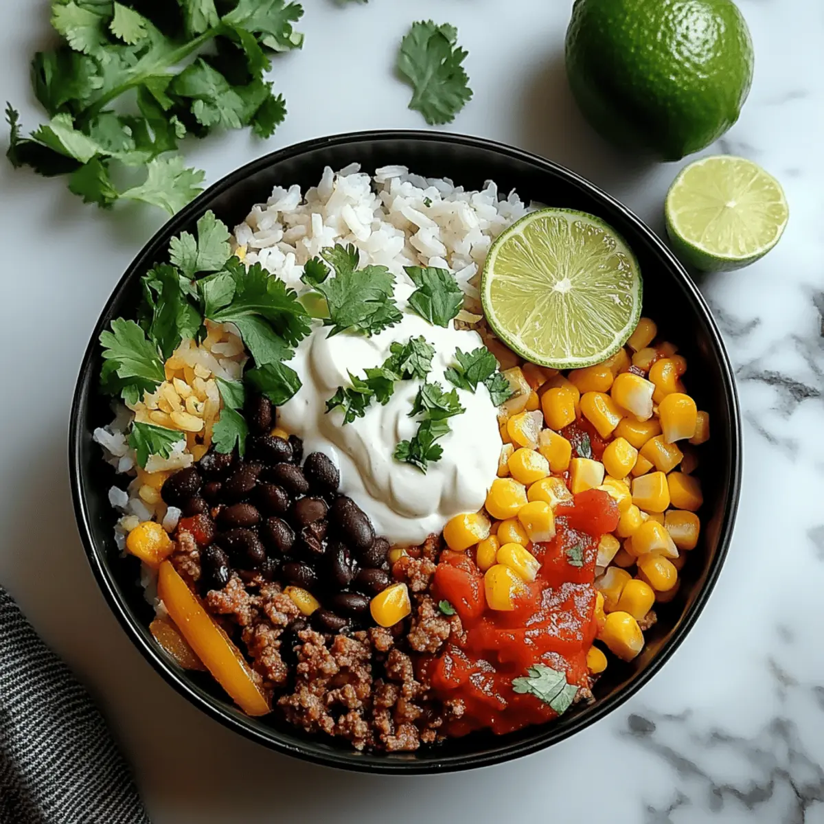 On a busy weeknight, the last thing I want is to settle for another uninspired takeout meal. Enter the Pioneer Woman Burrito Bowl—your ultimate solution for a satisfying, homemade feast that’s as customizable as it is delicious! This Tex-Mex delight brings a delightful mix of smoky, savory flavors together with fresh, vibrant ingredients. Plus, this recipe not only allows you to cater to your cravings but also lets you whip up a nourishing dinner in a snap, making it perfect for meal prep. Whether you’re in the mood for hearty ground beef, zesty turkey, or even plant-based alternatives, each bowl can be tailored to suit your taste buds. Ready to elevate your weeknight dinner routine? Let’s dive in! Why Choose the Pioneer Woman Burrito Bowl? Customization at Its Finest: This recipe lets you tailor every bowl to your preferences, with various protein options like ground turkey or tofu. Quick and Easy: Perfect for busy nights, this meal can be prepped and ready in under 30 minutes. Flavor-Packed Goodness: The savory blend of seasoned beef, beans, and fresh veggies bursts with Tex-Mex flavors that will delight your taste buds. Meal Prep Hero: Ideal for meal prepping, each component can be stored separately, making it a breeze to assemble delicious bowls throughout the week. Crowd-Pleasing Appeal: Whether it’s a family dinner or gathering with friends, this dish is sure to impress, just like our Grilled Shrimp Bowl or Chili Chicken Bowl. Pioneer Woman Burrito Bowl Ingredients For the Base • Cooked Rice – The hearty foundation of the bowl that provides a neutral base to soak up flavors. Substitution: Quinoa or cauliflower rice for a low-carb option. • Olive Oil – Adds richness and ensures beef browns nicely. Substitution: Any cooking oil or butter. For the Protein • Ground Beef – Provides savory, meaty goodness. Substitution: Ground turkey, chicken, or plant-based alternatives like crumbled tofu. • Taco Seasoning – Gives the beef flavor with spices like cumin and chili powder. Note: Use homemade seasoning for a healthier option. • Water – Aids in mixing the seasoning with beef and keeps it juicy. For the Filling • Black Beans – Adds protein, fiber, and earthy richness. Substitution: Pinto beans or kidney beans. • Corn Kernels – Brings sweetness and color; balances savory elements. Substitution: Frozen corn is an excellent quick option. • Diced Red Onion – Adds sharpness and crunch. Substitution: Green onions or shallots. • Diced Bell Pepper – Offers mild sweetness and freshness. Substitution: Any color bell pepper or chopped zucchini. • Diced Tomatoes – Contributes moisture and tanginess. For the Toppings • Shredded Cheddar Cheese – Adds melty, creamy richness. Substitution: Monterey Jack or dairy-free cheese. • Sour Cream – Provides creamy tanginess that contrasts the warm bowl. Substitution: Greek yogurt or dairy-free sour cream. • Chopped Cilantro – Adds fresh, herbal notes that brighten the dish. Note: Skip if you dislike cilantro; use parsley instead. • Lime Wedges – Increases freshness with a burst of citrus. Note: Adjust amount to personal taste. • Salsa – A finishing touch that adds heat and tang. Substitution: Pico de gallo for a fresher option. Step‑by‑Step Instructions for Pioneer Woman Burrito Bowl Step 1: Heat the Oil In a large skillet, heat 2 tablespoons of olive oil over medium heat, allowing the oil to shimmer. This will help the ground beef brown evenly and add richness to the Pioneer Woman Burrito Bowl. As the oil heats, prepare your other ingredients so everything is ready for a seamless cooking experience. Step 2: Cook the Beef Add 1 pound of ground beef to the skillet once the oil is hot. Break it apart with a spatula and cook, stirring occasionally, for about 6-8 minutes until it’s browned and no longer pink. This ensures a savory base for your burrito bowl, enhancing the overall flavor with its delectable aroma. Step 3: Add Seasoning After browning the beef, drain any excess fat from the skillet. Stir in 2 tablespoons of taco seasoning and ¼ cup of water. Reduce the heat to low and let it simmer for 5 minutes, or until the mixture has thickened. This step is crucial, allowing the beef to absorb the flavorful seasoning, creating a rich filling. Step 4: Heat the Rice While the beef simmers, in a separate bowl, heat 2 cups of cooked rice in the microwave for about 1-2 minutes until warm. Fluff the rice with a fork before serving to create a light texture, which will be the delicious base for your burrito bowl. Step 5: Prepare the Corn In another skillet, heat 1 cup of corn kernels over medium heat for about 3-4 minutes, stirring occasionally until they’re heated through. This will add a sweet pop to your Pioneer Woman Burrito Bowl and complement the savory beef and veggies beautifully. Step 6: Sauté Vegetables In the same skillet used for the corn, add ½ cup of diced red onion and 1 diced bell pepper. Sauté for 4-5 minutes until they soften, then add 1 cup of diced tomatoes, cooking for an additional 2 minutes. The vegetables will add color and freshness to the bowl, making each bite vibrant and enjoyable. Step 7: Assemble the Bowls To assemble your Pioneer Woman Burrito Bowl, start with a generous scoop of warm rice in each bowl. Layer your seasoned beef mixture on top, followed by the sautéed veggies and corn for a hearty and satisfying meal. This arrangement ensures that each bite is packed with flavor. Step 8: Top it Off Next, add 1 cup of black beans, about 1 cup of shredded cheddar cheese, and ½ cup of sour cream over the beef and veggies. Sprinkle with chopped cilantro for a fresh touch. The colorful toppings not only elevate the flavor but also make your burrito bowls visually appealing. Step 9: Serve and Enjoy Finally, serve your Pioneer Woman Burrito Bowl with lime wedges and salsa on the side. Squeeze fresh lime over the top just before eating for an extra burst of brightness. En