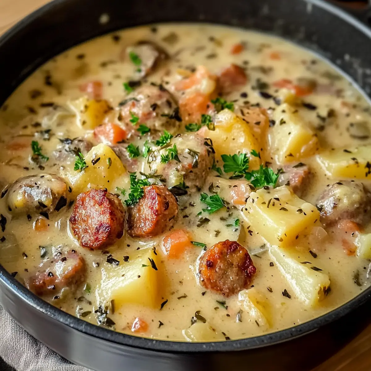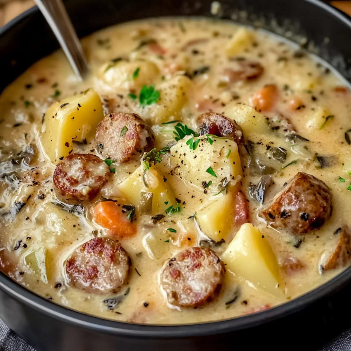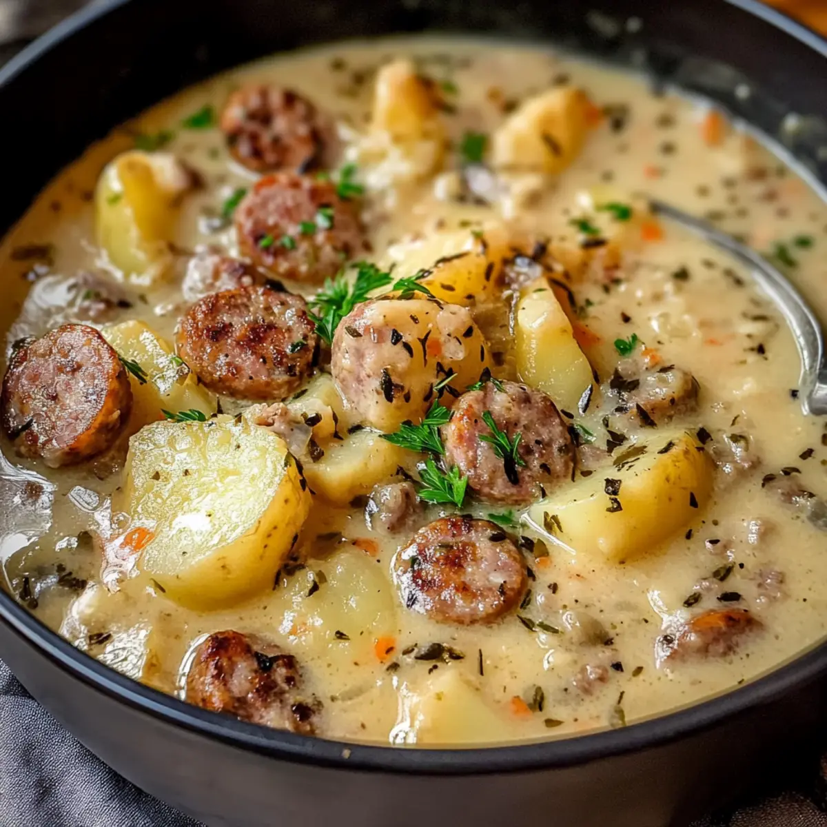 As I stood in my cozy kitchen, the evening chill creeping through the windows, I felt that unmistakable urge for comfort—a longing best met with a bowl of hearty soup. That’s when the thought of my Ultimate Potato and Sausage Chowder came rushing in, a creamy, one-pot wonder that warms both the belly and the soul. This recipe is a true lifesaver, effortlessly combining rich, satisfying flavors and quick prep, making it perfect for those busy weeknights when you want to skip the fast food. With a few simple ingredients and the option to make it dairy-free, this chowder is not only customizable but also a delightful crowd-pleaser for family gatherings. Ready to dive into a comforting bowl of goodness? Let’s get cooking! Why is This Chowder a Must-Try? Comforting Warmth: A bowl of our Ultimate Potato and Sausage Chowder wraps you in a cozy embrace, perfect for chilly evenings. One-Pot Wonder: Simplifying your dinner prep, this recipe is all about minimal mess and maximum flavor, allowing you to focus on enjoying your meal. Flavor Packed: The harmonious blend of savory sausage, creamy broth, and seasoned vegetables creates a rich taste that outshines any fast food option. Customizable Delight: Want it dairy-free? Simply swap in coconut milk. You can even add in your favorite veggies like corn or peppers for a personalized touch! Whether served alongside crusty bread or a fresh salad, this chowder promises to be a hit that lingers in your family’s hearts long after the last spoonful. Potato and Sausage Chowder Ingredients For the Base • Olive Oil – Adds richness and helps in sautéing; can use vegetable oil if preferred. • Sausage (pork, turkey, or chicken) – Provides the hearty, smoky flavor essential to chowder; use plant-based sausage for a vegetarian option. • Yellow Onion – Builds flavor through caramelization; sweet onion can be used for a milder taste. • Garlic Cloves – Enhances aroma and flavor; garlic powder can work in smaller quantities if fresh is unavailable. • Yukon Gold or Russet Potatoes – Main ingredient for heartiness and texture; be sure to peel and dice them for even cooking. • Chicken Broth – Savory liquid base for the chowder; substitute with vegetable broth for a vegetarian version. • Heavy Cream or Half-and-Half – Adds creaminess to the chowder; full-fat coconut milk makes a great dairy-free option. For Seasoning • Dried Thyme – Provides earthy notes that complement the soup. • Smoked Paprika – Adds smoky depth; regular paprika can be used for less intensity. • Salt and Pepper – Essential for bringing all the flavors together. Optional Add-Ins • Corn Kernels – For a sweet crunch and added texture. • Shredded Cheddar – Enhances creaminess and flavor; optional for those looking for a cheesy twist. • Chopped Parsley or Chives – Fresh garnish to brighten up your Potato and Sausage Chowder while adding color. Feel free to let your creativity shine with this Potato and Sausage Chowder and enjoy the comforting goodness it brings to your family table! Step‑by‑Step Instructions for Ultimate Potato and Sausage Chowder Step 1: Heat the Oil In a large pot, heat 2 tablespoons of olive oil over medium heat. Allow the oil to shimmer, signaling it’s ready for the next step. This will create a rich base for your Ultimate Potato and Sausage Chowder as you prepare to add the sausage. Step 2: Brown the Sausage Add 1 pound of your choice of sausage to the pot, breaking it into small pieces. Cook for 6 to 7 minutes, stirring occasionally, until the sausage is browned and cooked through. Drain any excess fat, keeping the delicious bits at the bottom for flavor. Step 3: Sauté Aromatics Stir in 1 chopped yellow onion and 3 minced garlic cloves. Sauté for about 3 to 4 minutes until the onion becomes translucent and fragrant, creating the flavorful backbone of your chowder. Step 4: Add Potatoes and Broth Add in 4 to 5 diced Yukon Gold or Russet potatoes, 1 teaspoon of dried thyme, and 1 teaspoon of smoked paprika. Pour in 4 cups of chicken broth and stir everything together. Raise the heat to bring the mixture to a boil, allowing the flavors to meld beautifully. Step 5: Simmer Until Tender Once boiling, reduce the heat to low and let the chowder simmer uncovered for 15 to 20 minutes. Stir occasionally until the potatoes are fork-tender but not mushy, creating that hearty texture essential to your Potato and Sausage Chowder. Step 6: Stir in Cream Pour in 1 cup of heavy cream or half-and-half, stirring well to make the chowder wonderfully creamy. Continue to simmer for an additional 5 minutes, letting all those rich flavors come together beautifully. Step 7: Adjust and Serve Taste the chowder and season with salt and pepper to your preference. If desired, add optional corn kernels or shredded cheddar for an extra touch. Ladle the chowder into bowls, garnish with chopped parsley or chives, and serve it hot for a comforting meal. Make Ahead Options These Ultimate Potato and Sausage Chowder preparations are perfect for busy home cooks who want to savor this comforting dish without the last-minute rush! You can chop the vegetables and cook the sausage up to 24 hours in advance. Simply refrigerate these components in airtight containers to maintain their freshness. When you’re ready to enjoy your chowder, combine the prepped ingredients in your pot with the broth, as directed, and simmer until the potatoes are tender. Remember, the longer the chowder sits (up to 3 days), the more the flavors meld without sacrificing its delicious creaminess. Just stir in the cream before serving, and you’ll have a piping hot, hearty meal in no time! Tips for the Best Potato and Sausage Chowder Thicker Chowder: Mash some potatoes: For a creamier texture, mash a few potato chunks right in the pot before serving, enhancing your Potato and Sausage Chowder’s consistency. Balanced Spices: Adjust smoked paprika: If you’re using spicy sausage, reduce t
