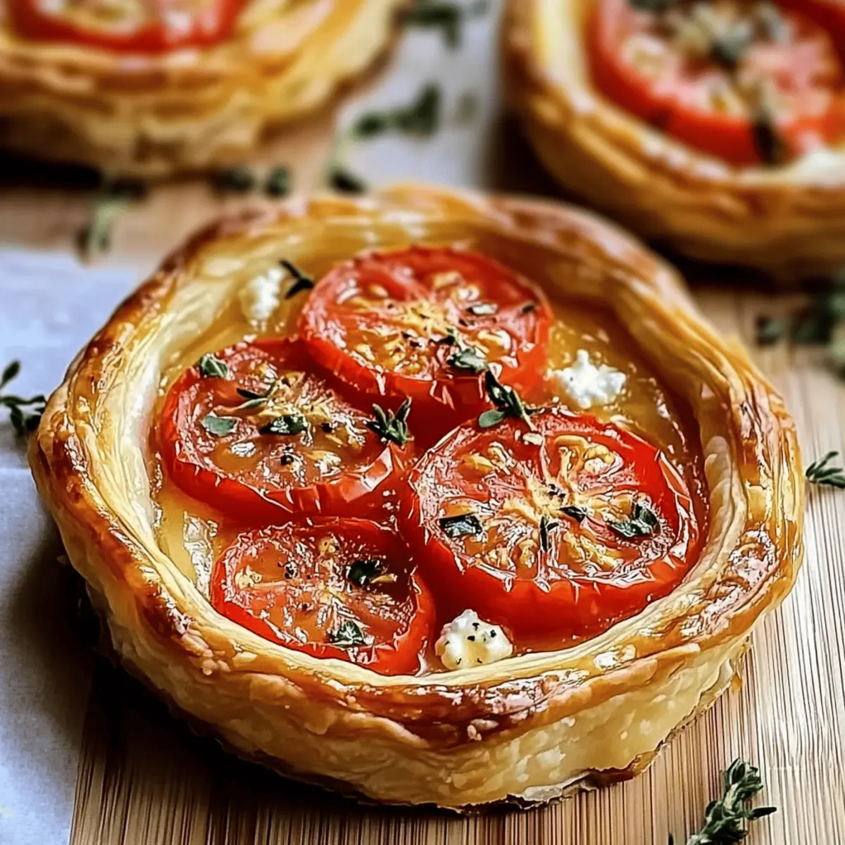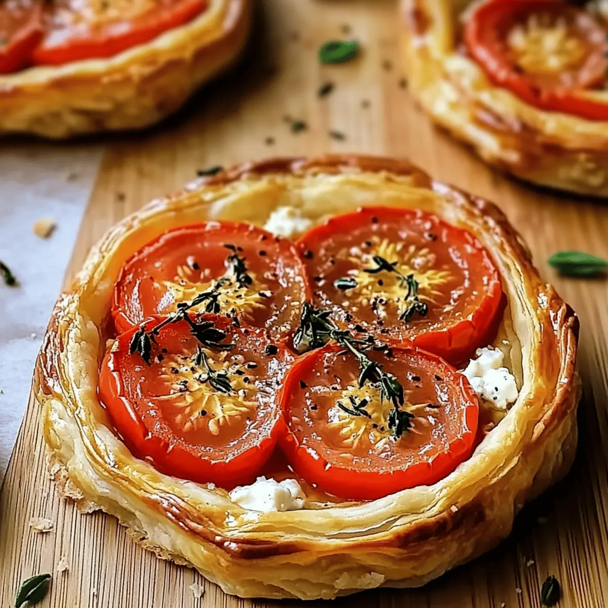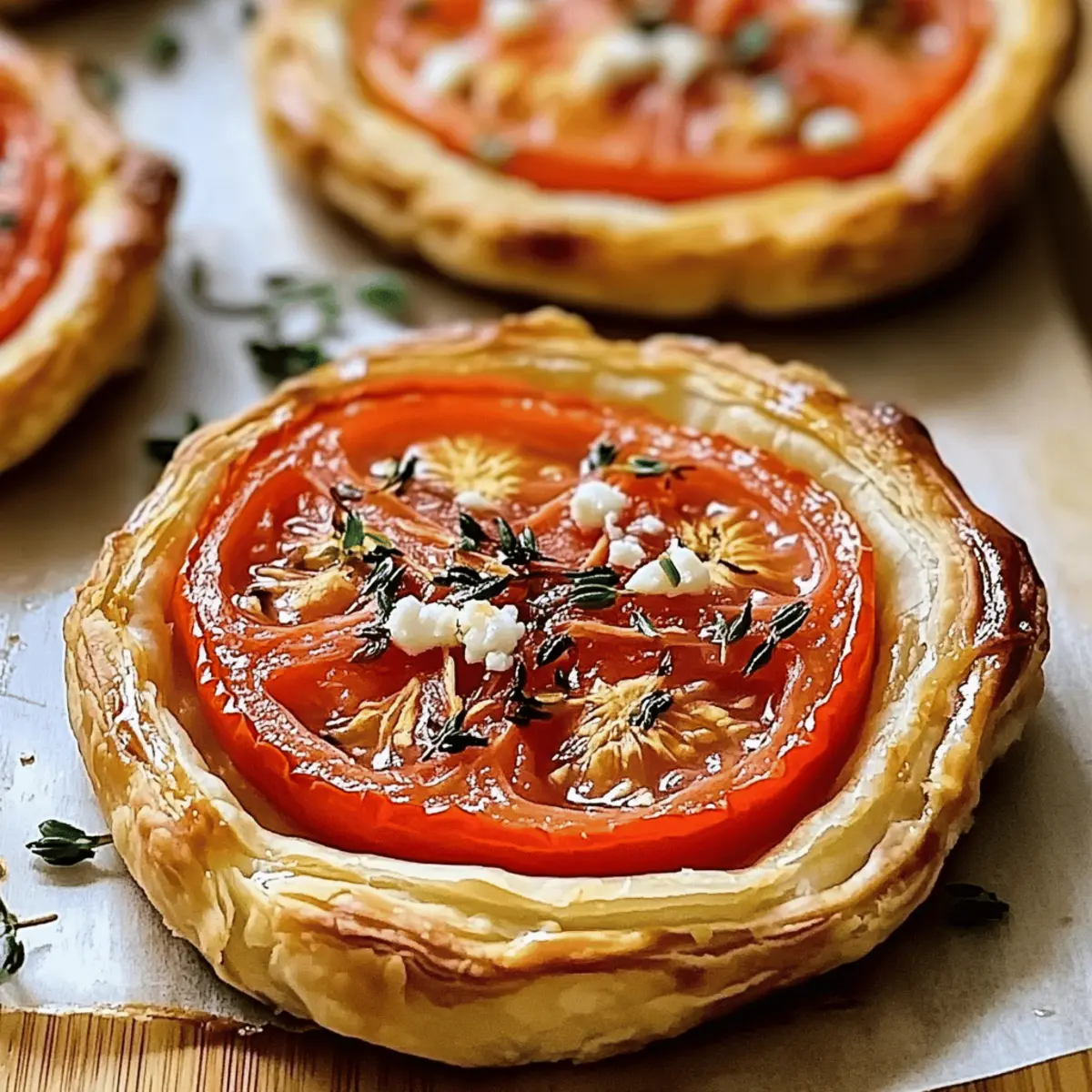 Walking through the farmer’s market on a sunny Saturday, I couldn’t resist the vibrant tomatoes calling from each stall. This burst of color inspired me to create Puff Pastry Tomato Tarts, a dish that beautifully showcases the fresh flavors of summer. These tarts are not only easy to whip up in under 40 minutes but also a vegetarian delight that can be customized to suit any palate. Whether you’re hosting a dinner party or looking for a quick snack, these flaky, golden treasures taste as impressive as they look. With just a handful of ingredients, you’ll have a mouthwatering appetizer that leaves your guests in awe. Ready to turn fresh ingredients into something extraordinary? Let’s dive into this simple yet sophisticated recipe together! Why Are These Tomato Tarts So Irresistible? Flaky Goodness: The puff pastry creates an irresistibly light and crispy base that elevates the entire dish. Fresh Ingredients: Ripe tomatoes and fragrant herbs ensure each bite bursts with garden-fresh flavor. Quick Preparation: With just 10 minutes of prep and 25 minutes in the oven, you’ll have a gourmet appetizer in about 40 minutes. Customizable: These tarts can be easily adapted to include your favorite cheeses or add-ins, making them a versatile choice for any occasion. Crowd-Pleasing: Perfect for dinner parties or casual gatherings, they are sure to impress your guests with their stunning presentation and delectable taste! Explore other delicious ideas like Tex Mex Tomato or Tomato Bacon Pasta to keep your menu exciting! Puff Pastry Tomato Tart Ingredients For the Pastry • Puff Pastry – Use thawed frozen puff pastry for a light, flaky base that’s quick and easy. For the Filling • Tomatoes – Fresh, ripe tomatoes add essential juiciness and flavor; in-season varieties yield the best results. • Goat Cheese (or Feta) – Creamy and tangy, goat cheese complements the tomatoes beautifully; substitutes like mozzarella or ricotta work well too. • Olive Oil – A light brush helps prevent sogginess and enhances flavor. • Dried Oregano – This herb adds aromatic depth; fresh herbs can elevate the flavor even further. • Salt and Pepper – Essential for seasoning; adjust to your taste preference. For Garnish • Fresh Basil Leaves – Adds a burst of fresh aroma and color to your tarts. Delight your taste buds with these Puff Pastry Tomato Tarts that shine with fresh ingredients and simple preparation! Step‑by‑Step Instructions for Puff Pastry Tomato Tarts Step 1: Preheat the Oven Begin by preheating your oven to 400°F (200°C). This ensures the heat is evenly distributed, allowing your Puff Pastry Tomato Tarts to achieve a delightful golden color while baking. A properly preheated oven is crucial for the flaky pastry to puff beautifully, so don’t skip this important step! Step 2: Prepare the Pastry On a lightly floured surface, roll out your thawed puff pastry to fit your baking sheet. Gently transfer the pastry onto a parchment-lined baking sheet, being careful not to stretch it too much. The parchment paper will help prevent sticking and make for easy cleanup after baking. Step 3: Score the Edges Using a sharp knife, lightly score a 1-inch border around the edges of the pastry. This will create a beautiful crust effect as the puff pastry rises during baking. Be cautious not to cut all the way through; you want to maintain the integrity of the base while encouraging the edges to puff up. Step 4: Brush with Olive Oil Carefully brush the inner area of the scored pastry with olive oil. This layer of oil will help prevent the puff pastry from becoming soggy as you layer on the tomatoes and cheese. By creating this barrier, your Puff Pastry Tomato Tarts will maintain that delightful crisp texture you desire. Step 5: Layer the Tomatoes Next, take ripe tomatoes and slice them into even rounds. Arrange the tomato slices evenly over the inner area of the pastry, slightly overlapping them for more visual appeal. The vibrant color and juicy texture of the tomatoes are key highlights in your Puff Pastry Tomato Tarts, enhancing both flavor and presentation. Step 6: Add Cheese Sprinkle crumbled goat cheese (or feta) generously on top of the arranged tomatoes. The creamy cheese will melt perfectly as the tarts bake, complementing the fresh tomatoes beautifully. Feel free to use different cheese varieties if you desire a unique flavor profile in your Puff Pastry Tomato Tarts. Step 7: Season the Tart Sprinkle dried oregano, salt, and pepper over the tops of the tomatoes and cheese for added flavor. This simple seasoning enhances the natural taste of the ingredients, bringing your Puff Pastry Tomato Tarts to life. Don’t be shy—adjust the seasoning to your taste preference for a personalized touch! Step 8: Bake the Tarts Place the baking sheet in the preheated oven and bake for about 20-25 minutes. Keep an eye on your tarts, looking for a beautiful golden-brown color and a puffed-up pastry. This is the moment when your kitchen will fill with mouthwatering aromas signaling that dinner is almost ready! Step 9: Garnish with Fresh Basil Once baked to perfection, remove the Puff Pastry Tomato Tarts from the oven and let them cool for a few minutes. Top the warm tarts with fresh basil leaves, adding a burst of color and an aromatic finish. This final touch will elevate the presentation and flavor profile of your delicious creation. Step 10: Slice and Serve Finally, slice the Puff Pastry Tomato Tarts into your desired shapes, such as squares or wedges. Serve them warm to enjoy the crisp texture and melty cheese. These tarts are perfect for sharing at any gathering or enjoying as a delightful snack, showcasing the beauty of simple, homemade cuisine. How to Store and Freeze Puff Pastry Tomato Tarts Fridge: Store leftovers in an airtight container for up to 3 days. Reheat in the oven at 350°F (175°C) for a few minutes to retain crispness. Freezer: Unbaked Puff Pastry Tomato Tarts can be frozen fo