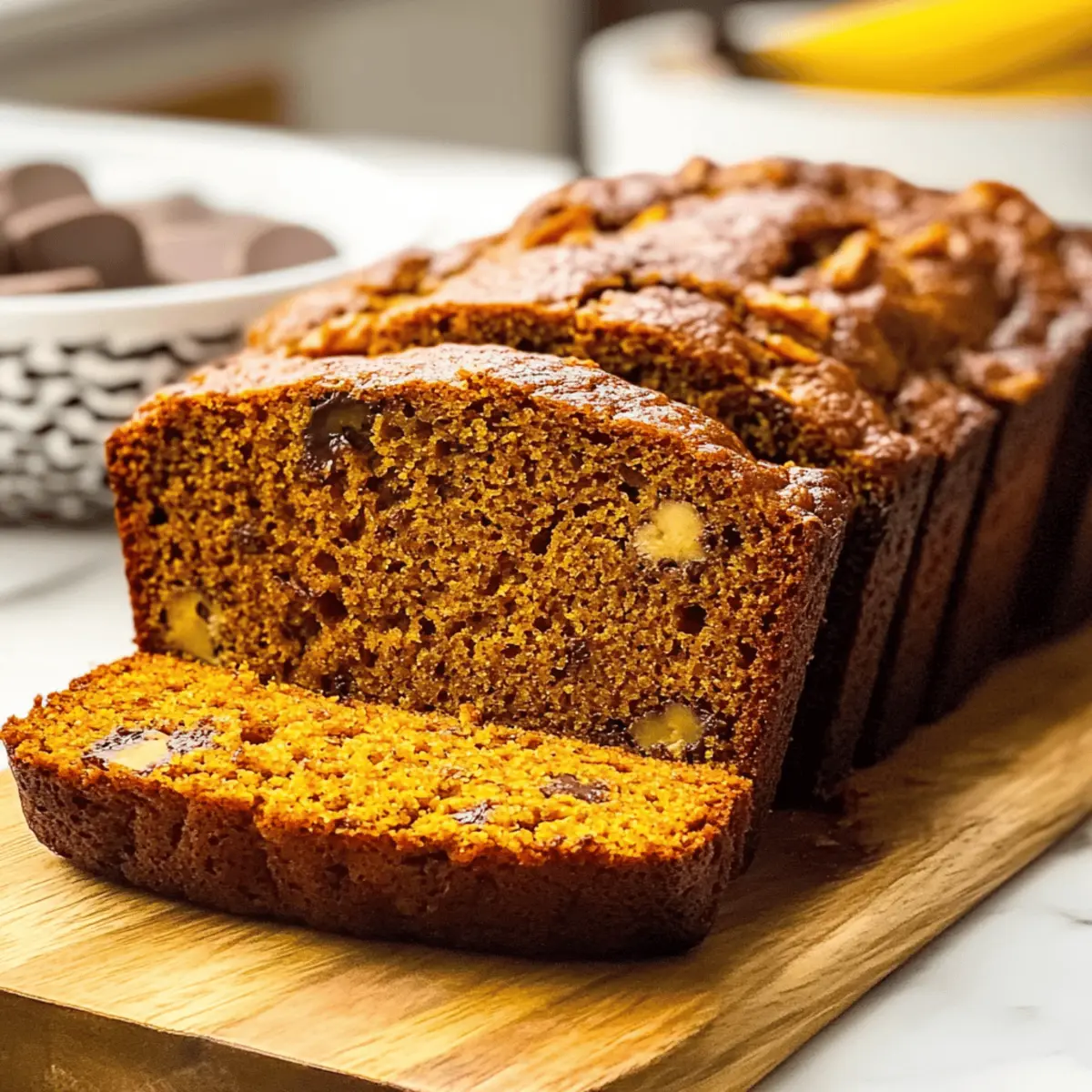 The aroma of freshly baked Banana Pumpkin Bread is like a warm embrace on a crisp fall day, evoking memories of cozy kitchens and shared moments. This delightful recipe combines the natural sweetness of ripe bananas with the rich, earthy flavor of pumpkin—a match made in heaven for any baking enthusiast. Featuring a tender crumb and a moist texture, this quick bread is not only easy to whip up but also offers versatility for breakfast, snacks, or even dessert. Plus, it’s a welcomed change from the typical rushed meals, making baking a joyful experience. Are you ready to bring some cozy vibes into your home with this seasonal treat? Why is this Banana Pumpkin Bread special? Irresistible Aroma: Your kitchen will fill with a warm, inviting scent that feels like a hug on a chilly day. Quick and Easy: This recipe is perfect for both beginner and seasoned bakers, requiring no yeast or complicated techniques. Versatile Delight: Enjoy it as a cozy breakfast, a sweet afternoon snack, or a charming dessert—it’s perfect for any time of day! Customizable Touch: Add walnuts for crunch or chocolate chips for sweetness; the possibilities are endless. If you love the flavor of bananas, don’t miss out on our delightful Banana Oatmeal Cookies as well! Nutrient-Packed: Combining bananas and pumpkin, this loaf is not just delicious but also a source of vitamins and fiber. Your friends and family will surely be asking for seconds! Pumpkin Banana Bread Ingredients • Perfect for crafting your moist pumpkin banana bread! For the Batter Mashed Ripe Bananas – Adds natural sweetness and moisture; overripe is best for flavor. Canned Pumpkin Puree – Provides richness and moistness; you can substitute with fresh pumpkin if well-drained. Unsalted Butter – Enhances flavor and moisture; olive oil is a great dairy-free alternative. Brown Sugar – Adds sweetness and depth; feel free to swap it with white sugar in a pinch. Large Eggs – Acts as a binder for the loaf; flax eggs can be used for a vegan version. All-Purpose Flour – Provides structure; consider using whole wheat flour for added nutrition. Baking Soda & Baking Powder – Essential leavening agents; always check for freshness! Salt – Enhances overall flavor; kosher salt works well if preferred. Ground Cinnamon, Nutmeg, and Cloves – A warm spice blend for flavor; customize according to your preference. Optional Mix-ins Chopped Walnuts or Pecans – Adds a delightful crunch; feel free to omit for a nut-free option. Chocolate Chips – Brings sweetness and richness; swap them with dried fruits for a fun twist. Your magical loaf is just an ingredient list away! Happy baking! Step‑by‑Step Instructions for Moist and Flavorful Banana Pumpkin Bread Step 1: Preheat and Prepare Begin by preheating your oven to 350°F (175°C). While the oven heats, take a moment to grease a standard loaf pan with butter or non-stick spray, ensuring it’s ready to prevent your delicious banana pumpkin bread from sticking. You’ll love the ease this brings when it’s time to slice and serve. Step 2: Mix Wet Ingredients In a large mixing bowl, combine 1 cup of mashed ripe bananas, 1 cup of canned pumpkin puree, ½ cup of melted unsalted butter, 1 cup of brown sugar, and 2 large eggs. Use a whisk or fork to mix until the batter is smooth and well incorporated. The combination of banana and pumpkin should create a creamy texture that feels inviting. Step 3: Combine Dry Ingredients In another bowl, whisk together 1 ¾ cups of all-purpose flour, 1 teaspoon of baking soda, ½ teaspoon of baking powder, ½ teaspoon of salt, 1 teaspoon of ground cinnamon, ½ teaspoon of nutmeg, and a pinch of cloves. Ensure there are no lumps in your dry mixture, as this step is vital for the perfect rise in your banana pumpkin bread. Step 4: Combine Mixtures Gently fold the dry ingredients into the wet mixture using a spatula or wooden spoon. Take care to combine them until just incorporated—overmixing can lead to a dense loaf. You’ll know it’s ready when no flour pockets remain, and the batter is thick and slightly lumpy. Step 5: Add Mix-ins If you desire a delightful crunch, fold in ½ cup of chopped walnuts or pecans and ½ cup of chocolate chips at this stage. This step adds texture and flavor diversity to your moist and flavorful banana pumpkin bread. Stir gently to ensure even distribution without overmixing. Step 6: Bake Pour the batter into your prepared loaf pan, spreading it evenly. Place the pan in the preheated oven and bake for 50 to 60 minutes. To check for doneness, insert a toothpick into the center of the loaf; it should come out clean or with a few moist crumbs attached. Step 7: Cool and Serve Once baked, remove the loaf pan from the oven and let it cool for about 10 minutes. Carefully transfer the bread onto a wire rack to cool completely before slicing. This critical cooling period enhances the flavor and ensures your banana pumpkin bread retains its texture, ready to be enjoyed! Pumpkin Banana Bread Customization Ideas Feel free to personalize this delicious banana pumpkin bread recipe to suit your taste buds and dietary preferences! Whole Wheat Flour: Substitute half of the all-purpose flour with whole wheat flour for added fiber and a nutty flavor. Nut-Free Alternative: Replace chopped walnuts or pecans with pumpkin seeds or sunflower seeds for a delightful crunch without nuts. Sweetness Swap: Adjust the sweetness by using coconut sugar instead of brown sugar for a more caramel-like flavor. Fruit Twist: Swap chocolate chips for dried cranberries or chopped apples for a fruity burst of flavor in every bite. Spice It Up: Experiment with spices by adding ginger or cardamom to enhance the warm, cozy flavors. Dairy-Free Option: Use coconut oil or a dairy-free butter substitute if you need a vegan twist for this delectable loaf. Fruity Addition: Toss in half a cup of shredded coconut for a tropical spin that’ll transport you straight to the beach. Flavor Bo
