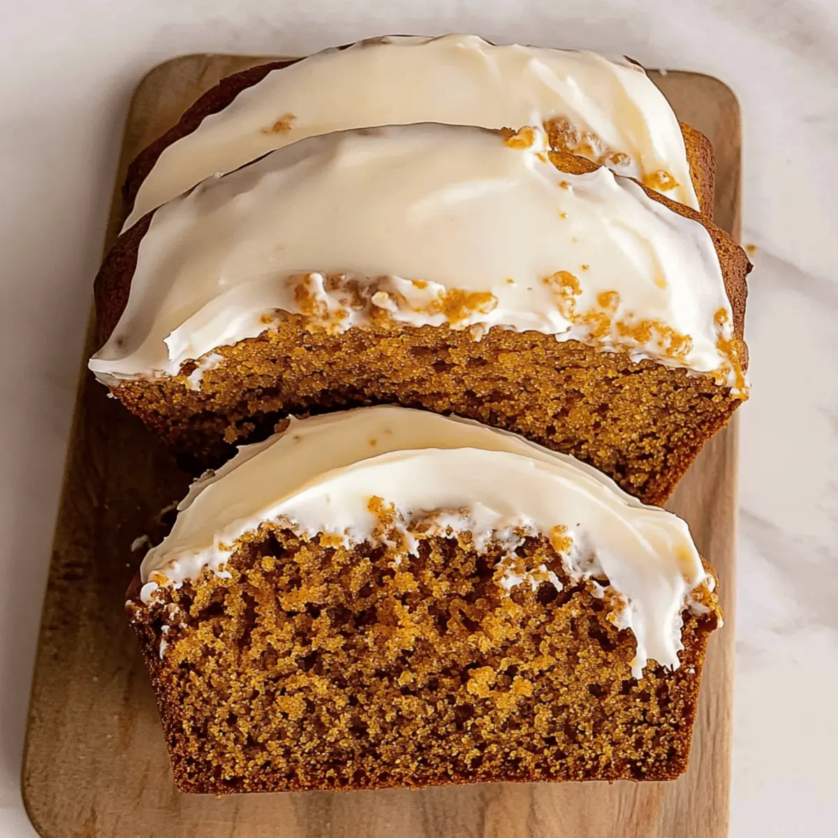 The aroma of spiced pumpkin bread wafting through the kitchen instantly transports me to cozy fall afternoons. This Moist Pumpkin Bread with Cream Cheese Frosting is my go-to recipe when I crave that warm and comforting embrace of autumn flavors. With its rich, tender texture and the delightful tang of cream cheese frosting, it’s not only easy to whip up but also a guaranteed crowd-pleaser. Imagine serving this treat at your next gathering, with friends and family savoring every bite while reminiscing about their own fall memories. Whether you’re a passionate home chef or simply someone looking for a delightful homemade alternative to fast food, this recipe checks all the boxes. Curious how to achieve that perfect balance of spices and creaminess? Let’s dive into the details! Why is this pumpkin bread special? Moist and Flavorful: This recipe guarantees a super moist pumpkin bread that’s bursting with warm autumn spices, perfect for fall gatherings or cozy evenings at home. Effortless to Make: With easy-to-follow instructions, even novice bakers can achieve delicious results with minimal effort—no special skills required! Irresistible Cream Cheese Frosting: The creamy, tangy frosting perfectly complements the sweetness of the bread, elevating it to a whole new level of indulgence. Adaptable Options: Whether you like it plain, with chocolate chips, or a swirl of pumpkin pie spice, this pumpkin bread is incredibly versatile to suit any palate. Crowd-Pleasing Delight: Serving this bread at gatherings, like Thanksgiving or fall parties, is sure to earn you rave reviews and requests for seconds. If you love the flavors of fall, you might also enjoy our Baked Mac Cheese or Cheesecake Ice Cream for dessert! Pumpkin Bread with Cream Cheese Frosting Ingredients Get ready to bake a delicious fall treat! For the Bread • All-purpose flour – Provides structure; substitute with gluten-free flour for a gluten-free option. • Baking soda – Essential for leavening; ensure it’s fresh for best results. • Ground cinnamon, ginger, nutmeg, cloves, and cardamom – These spices add warmth and depth; feel free to adjust based on your flavor preference or use pumpkin pie spice for convenience. • Salt – Enhances flavor; don’t skip this important ingredient! • Canola oil – Keeps the bread moist; can be swapped with vegetable oil or melted butter if desired. • Granulated sugar & light brown sugar – Sweetens and adds moisture; adjust according to your sweetness preference. • Large eggs – Binds ingredients and contributes moisture; room temperature eggs mix better. • Canned pumpkin puree – The star ingredient for that classic flavor and moisture; a homemade version should be well-drained. • Vanilla extract – Adds delightful aroma and sweetens the flavor; pure extract is the best choice. For the Cream Cheese Frosting • Cream cheese – Forms the base for a creamy, delicious frosting; make sure it’s softened to room temperature for easy mixing. • Unsalted butter – Adds richness to the frosting; also room temperature for better blending. • Powdered sugar – Sweetens the frosting; sift it before measuring to avoid lumps. • Milk – Adjusts the consistency of the frosting; use as much as needed for your desired thickness. This Pumpkin Bread with Cream Cheese Frosting is the perfect treat to spice up your fall baking repertoire! Step‑by‑Step Instructions for Moist Pumpkin Bread with Cream Cheese Frosting Step 1: Preheat and Prepare the Pan Begin by preheating your oven to 350°F (170°C). While it’s warming up, take a 9×5 inch loaf pan and line it with parchment paper, allowing some excess to hang over the edges. This will make it easier to remove your delicious pumpkin bread once it’s baked. The delightful aroma of spices will soon fill your kitchen! Step 2: Whisk the Dry Ingredients In a large mixing bowl, combine 2 cups of all-purpose flour, 1 teaspoon of baking soda, 2 teaspoons of ground cinnamon, and the other warm spices like ginger and nutmeg. Whisk these dry ingredients together until they are well-blended and free of lumps. Take a moment to enjoy the warm, aromatic scent of the spices inviting you to continue with your pumpkin bread creation. Step 3: Mix the Wet Ingredients In a separate bowl, mix together 1 cup of canola oil, 1 cup of granulated sugar, 1/2 cup of light brown sugar, 1 cup of canned pumpkin puree, 2 large eggs, and 2 teaspoons of vanilla extract. Blend these ingredients until they form a smooth, homogenous mixture. The vibrant color of your pumpkin puree will start to shine, signaling that it’s almost time to combine the wet and dry ingredients! Step 4: Combine Wet and Dry Mixtures Carefully pour the wet mixture into the bowl with your dry ingredients. Using a spatula, gently fold them together until just combined—be careful not to overmix, as this will keep your pumpkin bread light and fluffy. You’ll notice the batter coming together with a rich, inviting color and texture, perfect for your Moist Pumpkin Bread with Cream Cheese Frosting. Step 5: Transfer Batter to the Pan Once combined, pour the pumpkin bread batter into the prepared loaf pan, smoothing the top with the spatula. For an aesthetically pleasing touch, use a knife to drag it down the center, creating a small indent. This will give your finished bread a lovely crack on top as it bakes, enhancing both the appearance and the experience when it’s served. Step 6: Bake the Bread Place your loaf pan in the preheated oven and let it bake for 55–65 minutes. You’ll know it’s done when a toothpick inserted into the center comes out with just a few moist crumbs attached. Keep an eye on the color; it should turn a beautiful golden-brown, beckoning you to savor your creation! Step 7: Cool the Bread Once baked, remove the pumpkin bread from the oven and allow it to cool in the pan for about 15 minutes. This helps it set and makes it easier to remove. Then, carefully 
