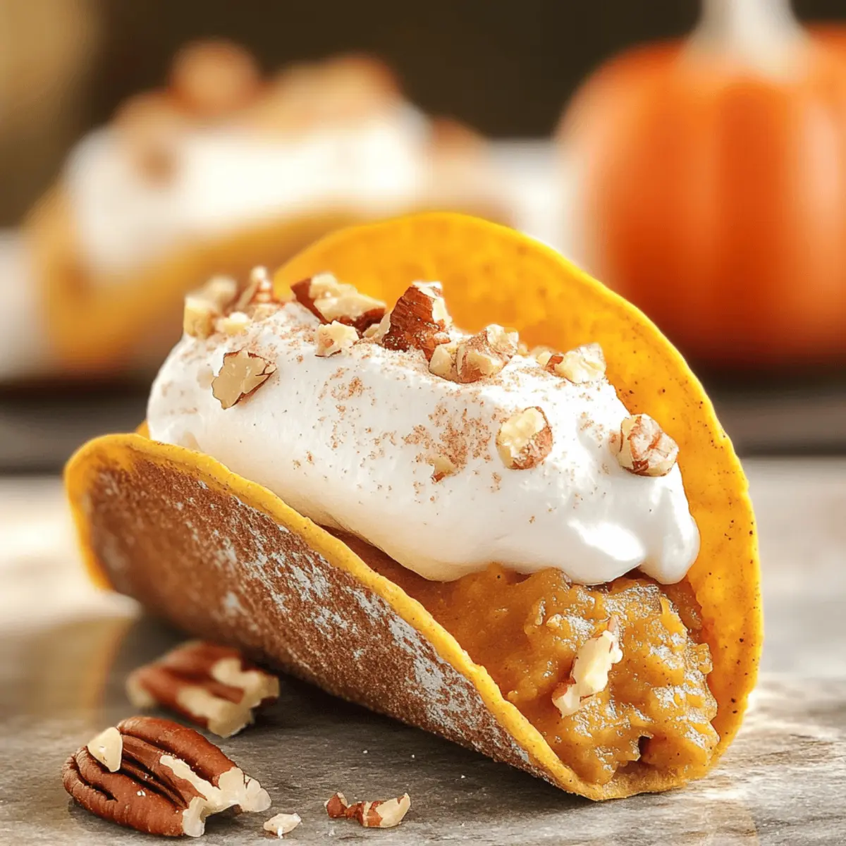 Pumpkin Pie Tacos are a delightful twist on a classic dessert, combining the flavors of pumpkin pie in a crispy taco shell. Perfect for fall gatherings.