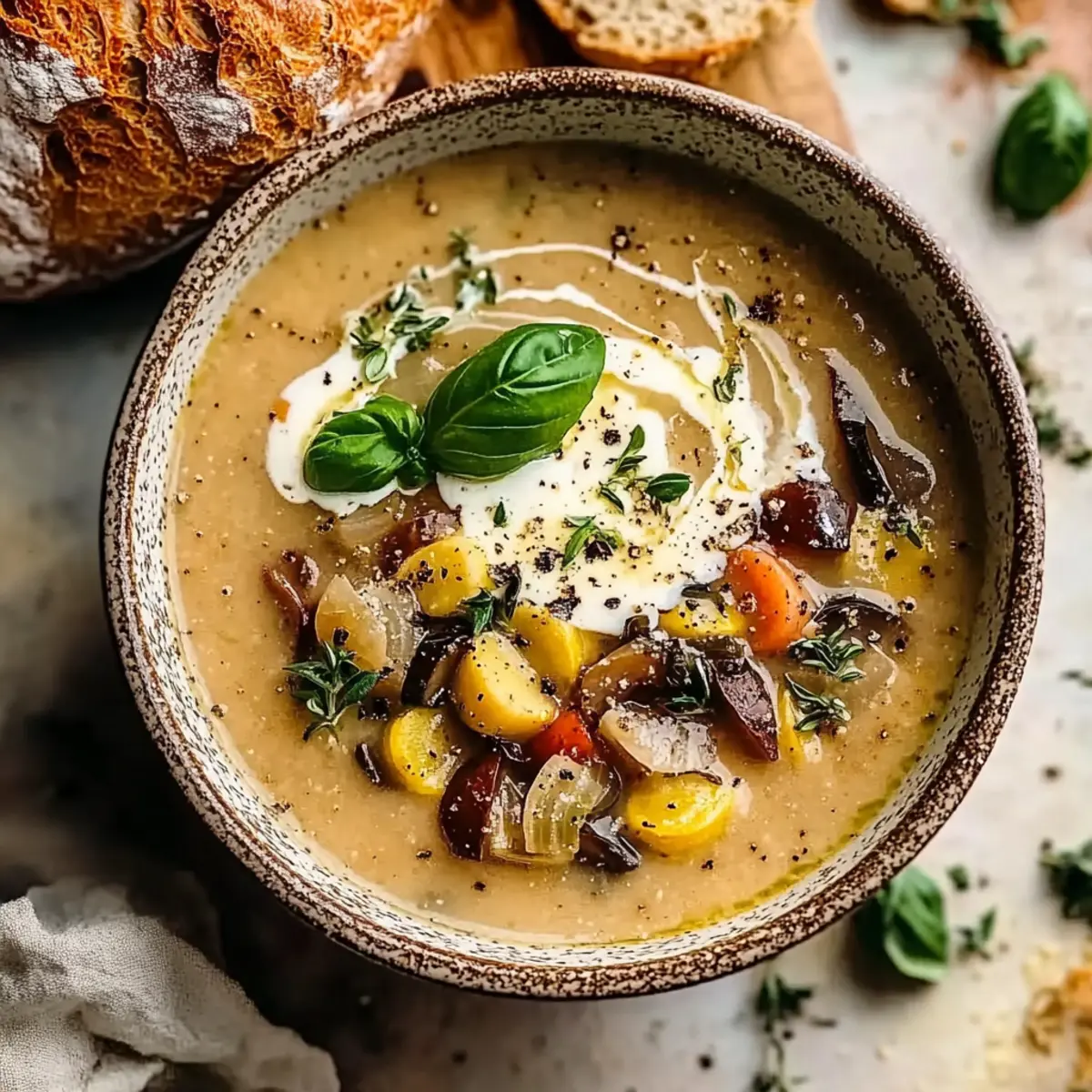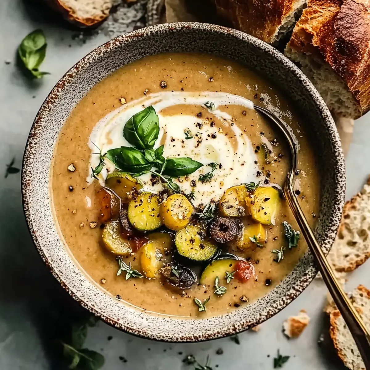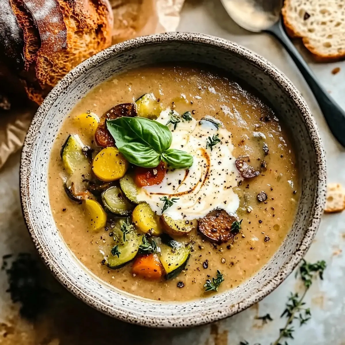 The vibrant colors of summer always tug at my heartstrings, and there’s nothing quite like transforming those fresh vegetables into a hearty Ratatouille Soup. Inspired by the enchanting film, this comforting dish showcases a medley of summer vegetables, blended into a soothing, nourishing bowl that feels like a warm hug. As you savor each silky spoonful, you’ll appreciate the remarkable benefits: it’s not only quick to whip up for a weeknight dinner but also a crowd-pleaser that’s packed with healthy goodness. Imagine serving a bowl of this flavorful delight on a sunny afternoon or cozy evening, and how it’ll warm both your heart and your kitchen. Are you ready to dive into the magic of this Ratatouille Soup? Let’s create something unforgettable together! Why is Ratatouille Soup so special? Comforting Flavors: This soup brings together a luscious blend of summer’s best vegetables, delivering warmth in every bowl. Quick & Easy: With simple steps and minimal prep, you’ll have this vibrant dish ready in no time, making it ideal for busy weeknights. Nutritional Powerhouse: Packed with vitamins and antioxidants, this dish supports your health while tantalizing your taste buds. Customizable Delight: Feel free to personalize ingredients based on your preferences, like substituting eggplant with zucchini or adding a dash of smoked paprika for depth. Crowd-Pleasing: It’s a hit among family and friends, making it perfect for gatherings or a cozy dinner at home. Don’t miss out on exploring more warm goodness with Chicken Noodle Soup or enjoy the creamy richness of Broccoli Cheddar Soup. Ratatouille Soup Ingredients • Dive into the colorful world of Ratatouille Soup with these fresh ingredients! For the Soup Base Olive Oil – Adds richness and depth of flavor; substitute with avocado oil for lighter dishes. Onion – Provides sweetness and texture; yellow or white onions work best for this soup. Garlic – Infuses aroma and depth; use fresh minced garlic for optimal flavor enhancement. Crushed Tomatoes (28 oz) – Forms the soup base, lending acidity; fresh diced tomatoes can also be used if preferred. Tomato Sauce (15 oz) – Adds richness and thickness; for freshness, consider homemade sauce. Vegetable Broth (4 cups) – Complements the soup with savory undertones; chicken broth can replace for a non-vegetarian variant. For the Vegetables Red Bell Pepper – Contributes sweetness and crunch; green bell pepper offers a more savory flavor as a substitute. Yellow Bell Pepper – Adds sweetness and vibrant color; can swap with additional red or green peppers. Eggplant – Provides a meaty texture; zucchini serves as a great alternative for those who may not prefer eggplant. Zucchini – Adds moisture and green flavor; yellow squash can be used as a substitution. Yellow Squash – Enhances vibrancy and nutrition; feel free to replace with zucchini if needed. For Seasoning & Garnish Dried Basil (1 tsp) – Provides classic Italian flavor; make it fresher by swapping in fresh basil, if available. Dried Oregano (1 tsp) – Adds depth and earthiness; Italian seasoning blend works as an alternative. Dried Thyme (1/2 tsp) – Infuses a warm, herbal note; use fresh thyme for a brighter flavor profile. Red Pepper Flakes (1/4 tsp, optional) – Introduces subtle heat; omit for a milder taste if desired. Salt and Black Pepper – Essential for flavor; adjust quantities to your personal taste preference. Fresh Basil Leaves (for garnish) – Enhances both presentation and flavor; parsley can be a lovely alternative if needed. Optional Cream/Ricotta – Adds creaminess and richness; omit for a delightful dairy-free version. Gather these ingredients, and you’re ready to experience the delightful warmth of Ratatouille Soup! Step‑by‑Step Instructions for Ratatouille Soup Step 1: Preparation Begin by washing and chopping all your vegetables: dice one onion and mince four cloves of garlic. Cut two red and yellow bell peppers into bite-sized pieces, and chop one eggplant, one zucchini, and one yellow squash into cubes. Having all your ingredients prepped and ready will make the cooking process smoother and more enjoyable as you create your Ratatouille Soup. Step 2: Sauté Vegetables In a large pot, heat three tablespoons of olive oil over medium heat. Once shimmering, add the chopped onion and sauté for about 5-7 minutes, or until translucent. Stir in the minced garlic, cooking for an additional minute before adding the bell peppers. Continue to cook for another 5 minutes, stirring frequently, until they soften. Next, incorporate the eggplant, zucchini, and yellow squash, sautéing for 8-10 minutes until all the vegetables are tender and nicely caramelized. Step 3: Simmer the Soup Now, add the crushed tomatoes, tomato sauce, and four cups of vegetable broth into the pot. Sprinkle in one teaspoon each of dried basil and oregano, along with half a teaspoon of dried thyme and a pinch of red pepper flakes if desired. Stir everything together, bring it to a gentle simmer, cover the pot, and let it cook for 30 to 60 minutes. This simmering process will enrich the flavors of your Ratatouille Soup beautifully. Step 4: Blend (Optional) If you prefer a smoother consistency for your Ratatouille Soup, you can blend it using an immersion blender directly in the pot. Alternatively, carefully transfer portions of the soup to a stand blender and blend until you achieve your desired texture. Be sure to allow steam to escape to prevent splattering, and return the blended soup to the pot once finished. Step 5: Adjust Seasoning Before serving, take a moment to taste your soup and adjust the seasoning. Add salt and black pepper to suit your preference, enhancing the flavors as needed. If you want to amp up the herbal notes, feel free to add a touch more of your dried herbs. The comforting aroma of the Ratatouille Soup should be inviting at this stage. Step 6: Serve and Garnish Ladle the steaming Ratatouille Soup