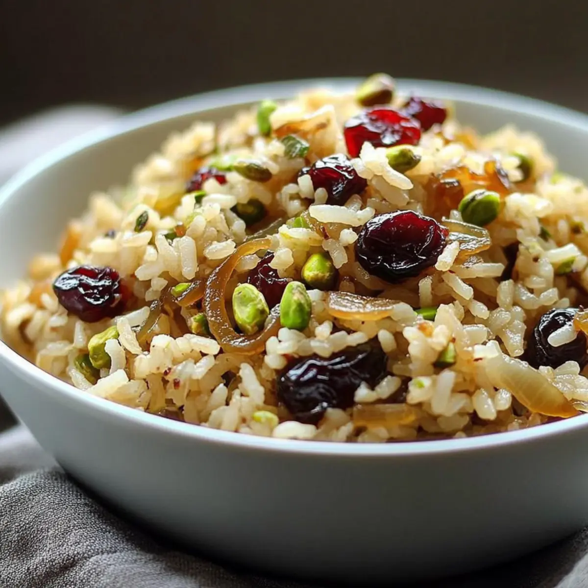 Rice Pilaf with Caramelized Onion, Orange, Cherry & Pistachio