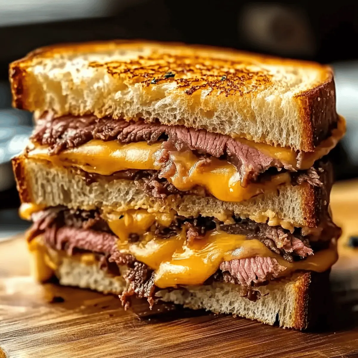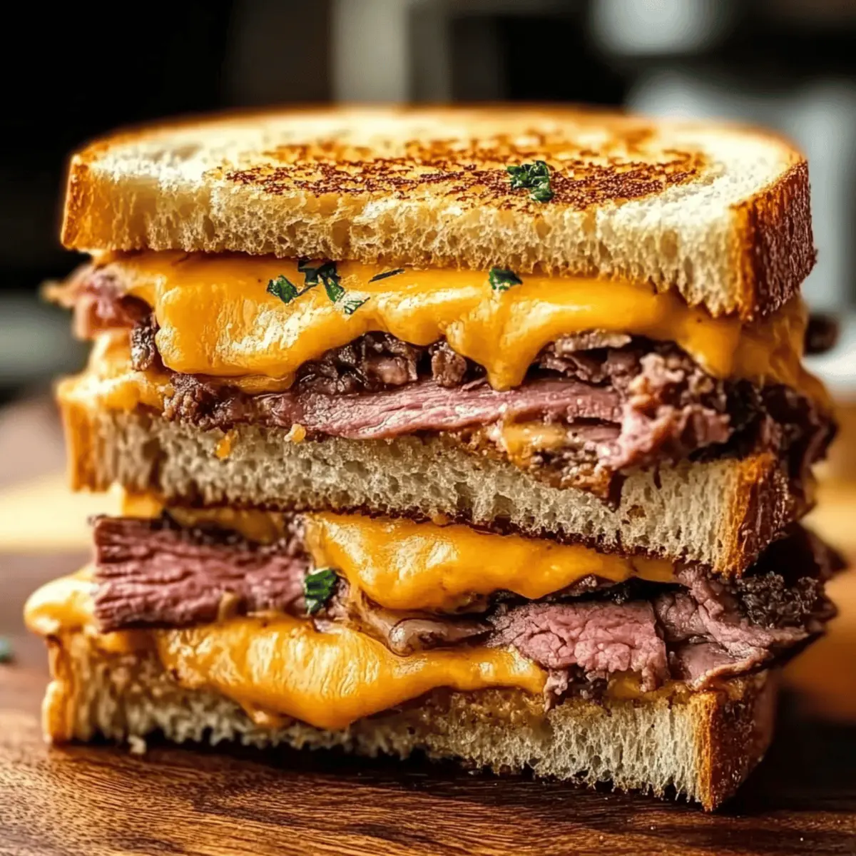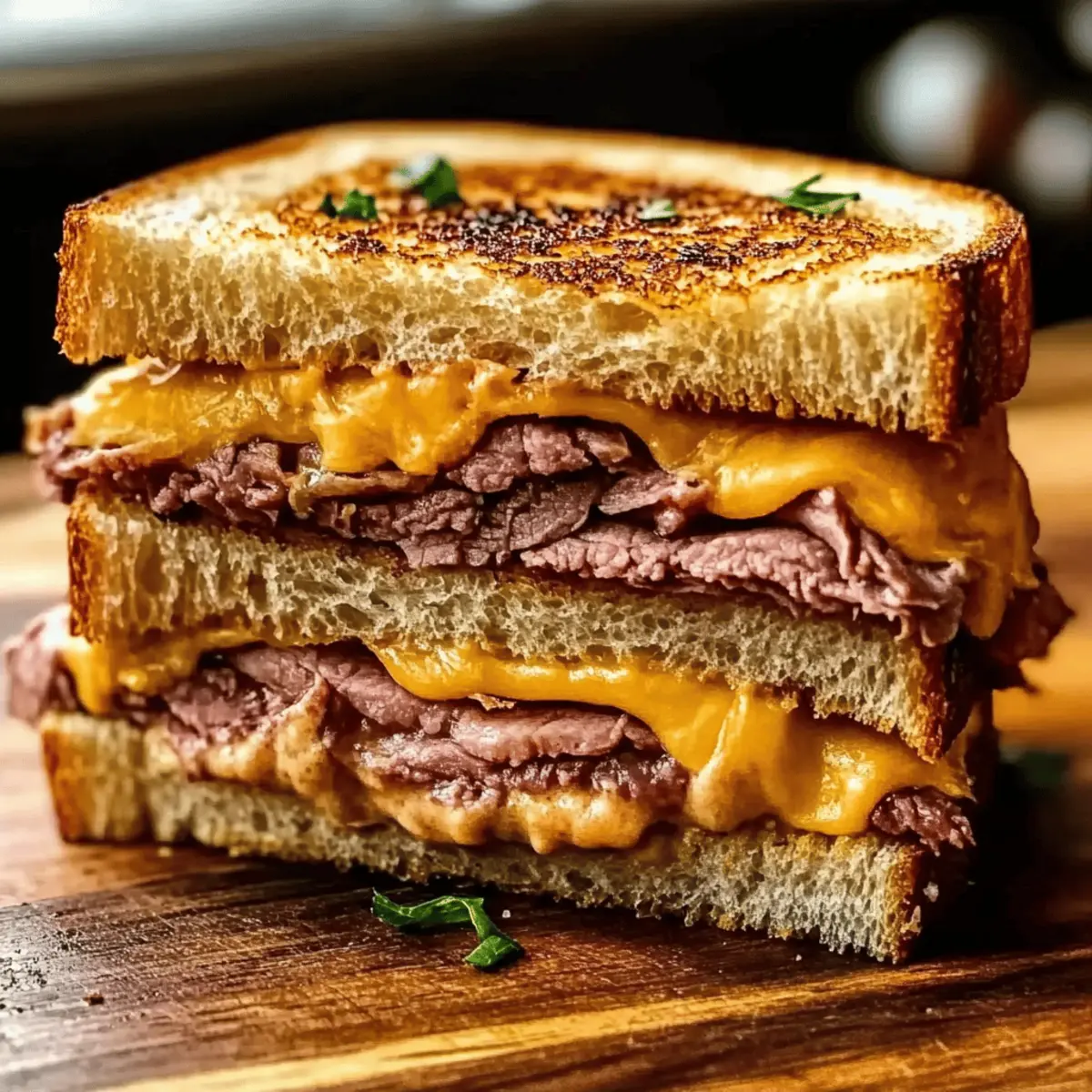 Stepping into my kitchen, the warm aroma of seared roast beef mingling with melted cheddar instantly transports me back to cozy family dinners. There’s something magical about a sandwich that elevates humble ingredients into a culinary delight, and this Roast Beef & Cheddar Melt Sandwich does just that. A perfect option for those busy days when only comfort food will do, it combines crispy, buttery bread with rich beef and gooey cheese—all in under 30 minutes! Whether you’re looking for a quick, satisfying lunch or a delicious dinner, this recipe is your answer. Get ready to indulge in a sandwich that promises not only flavor but also the joy of homemade goodness. Curious to see how it all comes together? Let’s dive in! Why is this sandwich a must-try? Quick: Made in under 30 minutes, perfect for those busy weeknights or lazy weekends. Hearty: The combination of tender roast beef and melting cheddar creates a filling meal that truly satisfies. Customizable: With options to swap ingredients, you can tailor this dish to your taste— consider trying it with turkey or pepper jack cheese! Comforting: Crispy, buttery bread with a savory filling evokes that warm, home-cooked feeling we all crave. Crowd-Pleasing: Great for family dinners, lunch with friends, or even a solo treat that feels indulgent. Pair it with a side salad or a bowl of soup for a full meal experience! Roast Beef & Cheddar Melt Sandwich Ingredients For the Bread • Sourdough Bread – This sturdy bread provides the perfect crispy foundation for your sandwich; try whole grain or rye for a tasty twist. • Unsalted Butter – Spreading this on the bread before grilling ensures a golden, crispy exterior; margarine works as a substitute if needed. For the Filling • Thinly Sliced Roast Beef – The star of the sandwich, offering a wealth of flavor and richness; deli slices save time, while roasting your own adds freshness. • Sharp Cheddar Cheese – A key ingredient that melts beautifully and enhances the sandwich’s taste; consider substituting with Swiss or Gruyere if you prefer. • Dijon Mustard (optional) – Adds a zesty kick, brightening the flavors; yellow mustard can be swapped in if that’s more your style. • Salt and Pepper – Essential seasonings to enhance the savory elements of the roast beef; adjust to fit your palate. For the Garnish • Fresh Arugula or Spinach (optional) – A sprinkle of greens adds a refreshing contrast; feel free to use any other greens like kale or lettuce! Step‑by‑Step Instructions for Roast Beef & Cheddar Melt Sandwich Step 1: Heat Skillet Begin by preheating a non-stick skillet over medium heat, allowing it to warm up for about 2-3 minutes. This is crucial for achieving a nicely toasted exterior on your Roast Beef & Cheddar Melt Sandwich. A hot skillet is essential as it helps in evenly browning the bread while keeping the fillings warm and melted inside. Step 2: Butter Bread While the skillet heats up, grab your sourdough bread and spread 1 tablespoon of unsalted butter on one side of each slice. You want a generous coating to ensure a golden, crispy crust that contrasts beautifully with the melty cheese. Set these slices aside, ready to form the ultimate sandwich. Step 3: Build Base Once the skillet is hot, place one slice of bread butter-side down onto the skillet. This will serve as the base for your Roast Beef & Cheddar Melt Sandwich. You should hear a satisfying sizzle as the bread makes contact, indicating that it’s beginning to toast nicely. Step 4: Layer Ingredients On top of the unbuttered side of the bread, optionally spread Dijon mustard for a zesty kick. Then, layer generous slices of thinly sliced roast beef and top with sharp cheddar cheese. The cheese should cover the beef entirely to ensure you get that gooey, melted goodness as the sandwich cooks. Step 5: Top It Take another slice of bread and place it on top of the cheese, ensuring the buttered side is facing up. This forms the top of your sandwich. Gently press down to help the ingredients meld together and encourage even melting, ensuring that the delicious flavors of your Roast Beef & Cheddar Melt Sandwich are nicely integrated. Step 6: Cook Allow the sandwich to cook for about 3-5 minutes, keeping an eye on the underside for a golden brown color. Carefully flip the sandwich using a spatula and cook for an additional 3-5 minutes on the other side. The bread should be crispy and the cheese melty, creating the perfect texture contrast. Step 7: Check Melting After both sides are browned, check to ensure the cheddar cheese is fully melted between the layers. If the cheese isn’t bubbling and gooey yet, you can reduce the heat slightly and continue cooking for another minute or two. The perfect Roast Beef & Cheddar Melt Sandwich should ooze with flavor upon slicing. Step 8: Cool & Slice Once the sandwich is golden and the cheese is melted, carefully remove it from the skillet. Allow it to cool for a moment to prevent burns, then slice it in halves or quarters for easy handling. This step not only makes serving easier but also reveals the beautiful layers of your hearty creation. Expert Tips for Roast Beef & Cheddar Melt Sandwich Even Heating: Make sure your skillet is consistently hot before adding the sandwich. This prevents unevenly toasted bread and ensures a perfectly crispy crust. Cheese Choice: Sharp cheddar gives great flavor, but feel free to experiment with other cheeses like Gruyere or pepper jack to match your taste. Don’t Rush: Resist the urge to flip the sandwich too early. Allowing it to cook thoroughly will help achieve a robust flavor and gooey melted cheese. Press It Down: Use a spatula to gently press the sandwich while it cooks. This promotes better contact with the skillet and produces an extra crispy finish. Taste and Adjust: Always season your roast beef with salt and pepper to enhance its natural richness. Adjust according to your personal preference for a satisfying taste.
