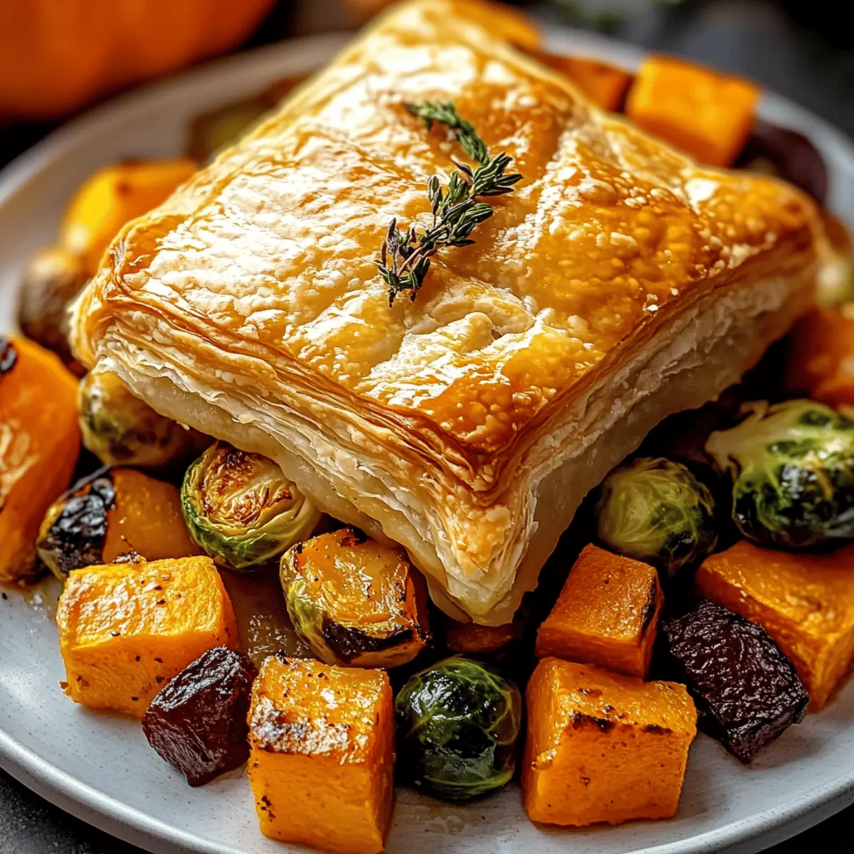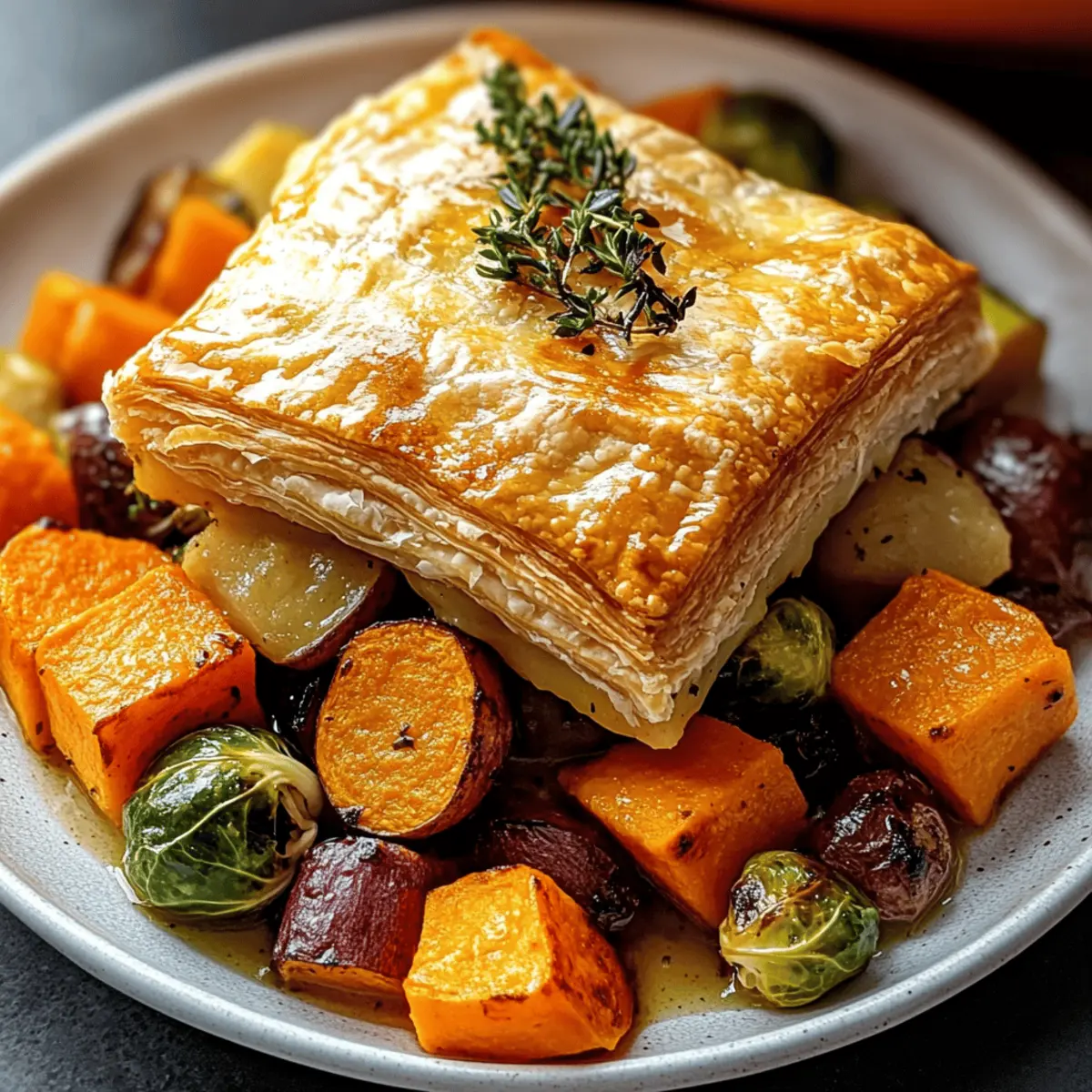 As the chill of autumn settles in, there’s something so satisfying about a warm oven and the promise of a cozy meal. Enter the Roasted Autumn Vegetable Pot Pies, a heartwarming and comforting dish that celebrates the season’s bounty. These vegetarian wonders are not only a delightful way to showcase tender roasted butternut squash, sweet potatoes, and earthy carrots bathed in a creamy sauce, but they’re also perfect for those evenings when comfort food is a top priority. The flaky puff pastry crust adds an irresistible crunch, making these pot pies a crowd-pleaser that friends and family will love. Plus, they’re super easy to customize with your favorite seasonal vegetables! Ready to warm your kitchen with fragrant spices and creamy goodness? Let’s dive into this delightful recipe that will transform your chilly nights into gourmet experiences! Why Are These Pot Pies a Must-Try? Comforting Warmth: There’s nothing quite like the aroma of freshly baked pot pies filling your home, creating an inviting atmosphere for family and friends. Seasonal Goodness: Packed with roasted butternut squash, sweet potatoes, and carrots, this recipe celebrates autumn’s finest flavors—perfect for those who crave a hearty, wholesome meal. Flaky Delight: The light and flaky puff pastry creates a blissful contrast to the creamy filling, making each bite a delicious experience you won’t forget. Customizable: Feel free to experiment with different vegetables or proteins, like chickpeas or lentils, to make this dish your own. For more comforting ideas, check out my One Pot Chicken Dumpling Soup or Chicken Pot Pie Casserole. Time-Saving: This recipe is not only delicious but also quick to prepare, allowing you to enjoy a homemade meal with minimal fuss. Perfect for busy weeknights! Roasted Autumn Vegetable Pot Pie Ingredients • Prepare to embark on a cozy culinary journey with these delightful pot pies that celebrate all things autumn! For the Filling Butternut Squash – Adds sweetness and richness; substitute with pumpkin for a different flavor. Carrots – Introduces earthy notes and color; use parsnips for extra sweetness. Parsnips – Contributes a mild sweetness; can be replaced with more carrots. Sweet Potatoes – Adds creaminess and depth; regular potatoes or yams can be used instead. Brussels Sprouts – Offers a slight bitterness to balance sweetness; any seasonal green vegetable can be included. Olive Oil – Essential for roasting vegetables; avocado oil is a great alternative. Salt and Pepper – Enhances flavor; adjust to taste. Fresh Thyme & Rosemary – Provide aromatic depth; dried versions can be used at half the amount. Butter – Creates a rich roux; for a dairy-free version, opt for vegan butter. Onion – Adds sweetness and depth; shallots or leeks are effective substitutes. Garlic – Gives aromatic flavor; garlic powder can be used in a pinch (1/8 teaspoon per clove). All-Purpose Flour – Thickens the cream sauce; swap for gluten-free flour if needed. Vegetable Broth – Adds depth to the sauce; can substitute with chicken broth for non-vegetarian options. Heavy Cream – Introduces luxurious creaminess; use coconut cream for a dairy-free option. For the Crust Puff Pastry – Provides the flaky crust; ensure it’s thawed before use. Phyllo dough can be used for a different texture. Beaten Egg – Ensures a golden finish to the pastry; swap with a dairy-free milk alternative for brushing. Create a heartwarming meal that brings comfort and joy this fall with these Roasted Autumn Vegetable Pot Pies! Step‑by‑Step Instructions for Roasted Autumn Vegetable Pot Pies Step 1: Preheat and Prepare Begin by preheating your oven to 400°F (200°C). While the oven warms up, gather your seasonal vegetables: butternut squash, carrots, parsnips, sweet potatoes, and Brussels sprouts. In a large mixing bowl, combine the chopped vegetables and drizzle with olive oil, seasoning with salt, pepper, thyme, and rosemary. Toss until evenly coated for flavorful Roasted Autumn Vegetable Pot Pies. Step 2: Roast the Vegetables Spread the seasoned vegetable mixture out on a large baking sheet in a single layer. Roast in the preheated oven for 25-30 minutes or until the vegetables are tender and caramelized, stirring halfway through to ensure even cooking. The aroma will fill your kitchen, a sign that your Roasted Autumn Vegetable Pot Pies are coming together beautifully. Step 3: Sauté Aromatics While the vegetables roast, melt butter in a medium saucepan over medium heat. Add finely chopped onion and minced garlic, sautéing for about 5 minutes until translucent and fragrant. Make sure to stir frequently to prevent burning; this mixture will provide a flavorful base for your creamy filling in the pot pies. Step 4: Create the Roux Stir in all-purpose flour with the sautéed onion and garlic, cooking for another 1-2 minutes until the flour is lightly golden. This roux will help thicken the cream sauce for your Roasted Autumn Vegetable Pot Pies. Keep stirring to eliminate any raw flour taste for a smooth filling. Step 5: Add Broth and Simmer Gradually whisk in vegetable broth, ensuring there are no lumps. Increase the heat slightly and simmer the mixture for 3-4 minutes, allowing it to thicken and bubble slightly. You’ll know it’s ready when it coats the back of a spoon, providing a rich base for the filling of your pot pies. Step 6: Finish the Sauce Stir in the heavy cream into the thickened broth mixture, followed by the roasted vegetables. Mix well, ensuring each bite will be filled with the comforting flavors of the Roasted Autumn Vegetable Pot Pies. Taste and adjust seasoning, adding more salt or pepper as needed. Step 7: Prepare the Puff Pastry On a lightly floured surface, roll out your thawed puff pastry dough to achieve an even thickness. Use a round cutter or a bowl to cut out pastry rounds that are slightly larger than the tops of your ramekins or bowls. This will create the perfect 