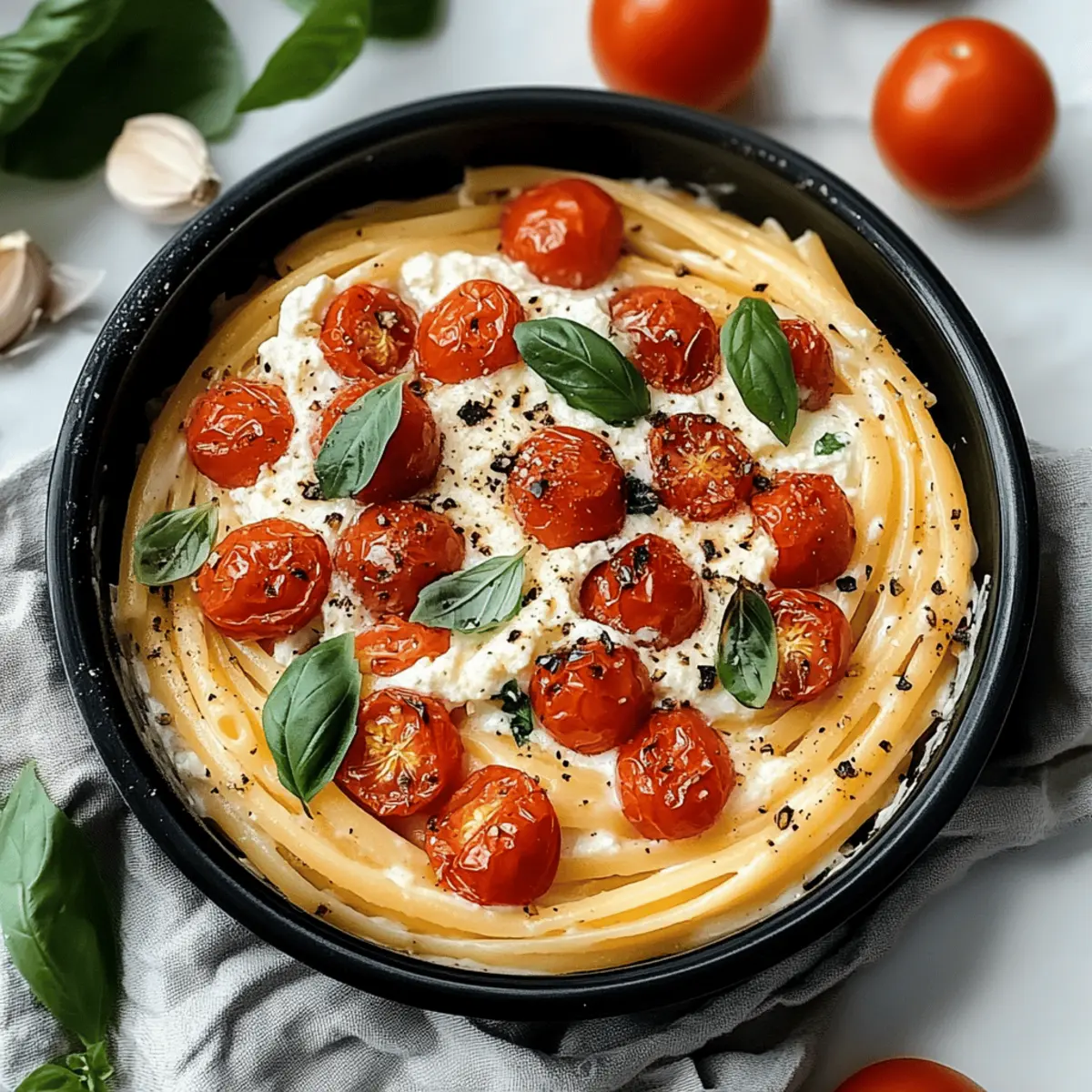 As I opened the oven door, a wave of roasted tomato and garlic goodness enveloped the kitchen, coaxing my senses into a joyful dance. If there’s one cozy meal that can soothe the soul and bring the family together, it’s this Roasted Tomato and Garlic Ricotta Pasta. Combining sweet, caramelized tomatoes with creamy ricotta and fragrant garlic, this dish is incredibly easy to whip up, making it perfect for those busy weeknights or casual gatherings with friends. Plus, it’s a vegetarian delight that offers a comforting hug in every bite. So, are you ready to create a creamy masterpiece that will make you forget all about fast food? Let’s get cooking! Why is this pasta recipe a must-try? Comforting, Creamy Delight: This Roasted Tomato and Garlic Ricotta Pasta offers comforting flavors that envelop your senses, perfect for cozy nights. Quick and Easy: With simple steps, you can serve a gourmet-quality dish in under 30 minutes. Versatile Ingredients: Feel free to swap in your favorite herbs or pasta types, making it endlessly adaptable to your pantry. Impressive Presentation: The vibrant colors and textures create a dish that’s not only delicious but also visually stunning, impressing family and friends alike. Crowd-Pleasing Flavor: The irresistible combination of sweet roasted tomatoes, aromatic garlic, and creamy ricotta is sure to satisfy even the pickiest eaters! Roasted Tomato and Garlic Ricotta Pasta Ingredients For the Pasta • Cherry Tomatoes – The heart of the dish—sweet and caramelized when roasted; substitute with grape tomatoes for a similar taste. • Olive Oil – Enhances flavors and helps caramelize tomatoes; any neutral oil can work in a pinch. • Garlic – Adds aromatic sweetness when roasted; fresh cloves are best, but garlic powder can be a quick substitution. • Dried Oregano – Provides an herbaceous note; swap with Italian seasoning if you’re fresh out. • Salt – Enhances flavors and balances the dish; sea salt or kosher salt work splendidly. • Black Pepper – Adds mild heat; freshly ground is ideal, but pre-ground will do just fine. • Pasta (Spaghetti or Penne) – Forms the base of the dish; feel free to use any pasta shape you love—just adjust cooking times accordingly. For the Sauce • Ricotta Cheese – Creates a creamy sauce that balances acidity; mascarpone or cream cheese can also be used for a similar texture. • Grated Parmesan Cheese – Ties the dish together with salty nuttiness; nutritional yeast offers a great vegan alternative. • Fresh Basil – Offers freshness and a burst of flavor; substitute with parsley or spinach if needed. • Lemon Juice – Brightens and balances the richness; lime juice can serve as a substitute in a pinch. This Roasted Tomato and Garlic Ricotta Pasta is not just another recipe; it’s a comforting dish sure to impress and satisfy! Step‑by‑Step Instructions for Roasted Tomato and Garlic Ricotta Pasta Step 1: Preheat the Oven Begin your Roasted Tomato and Garlic Ricotta Pasta by preheating the oven to 400°F (200°C). This temperature is perfect for roasting the tomatoes and garlic to sweet perfection. Make sure your oven is fully heated before proceeding to ensure even cooking and delicious caramelization. Step 2: Prepare the Tomatoes While the oven heats, halve the cherry tomatoes and arrange them cut-side up on a baking sheet. This arrangement allows for maximum roasting potential. Drizzle them generously with olive oil for flavor enhancement and have your minced garlic ready to sprinkle over the tomatoes before seasoning. Step 3: Season and Toss Sprinkle dried oregano, salt, and freshly ground black pepper over the tomatoes and garlic. Toss the mixture together gently using your hands or a spatula until everything is well coated in the olive oil and spices. This step will set the stage for a deliciously flavorful roasting process. Step 4: Roast the Tomatoes Place the baking sheet in the oven and roast the tomatoes for 20-25 minutes. Watch as they soften and their juices bubble, transforming into sweet, caramelized gems. You’ll know they’re ready when they appear slightly shriveled and have a golden hue—an irresistible sight! Step 5: Cook the Pasta As the tomatoes roast, bring a large pot of salted water to a boil. Add your choice of pasta, either spaghetti or penne, and cook according to the package instructions until al dente, usually around 9-11 minutes. Stir occasionally to prevent sticking and ensure that each piece cooks evenly. Step 6: Prepare the Ricotta Mixture In a separate bowl, combine the ricotta cheese, grated Parmesan, fresh basil, and a splash of lemon juice. Mix until smooth and creamy. This flavorful mixture is the secret to bringing creaminess to your Roasted Tomato and Garlic Ricotta Pasta, enhancing every single bite. Step 7: Combine Pasta and Tomatoes Once the pasta is perfectly cooked, reserve ½ cup of the pasta water, then drain the rest in a colander. Return the hot pasta to the pot and gently smash the roasted tomatoes with a fork before adding them along with their juices to the pasta. This action infuses the dish with rich, roasted flavors. Step 8: Add the Ricotta Mixture Now, pour the creamy ricotta mixture over the pasta and roasted tomatoes. Toss everything together carefully until the pasta is evenly coated with the creamy sauce. This step is crucial for marrying all the wonderful flavors of the Roasted Tomato and Garlic Ricotta Pasta into one delightful dish. Step 9: Adjust the Consistency If your pasta feels too thick, gradually add the reserved pasta water, a little at a time, until reaching your desired creamy consistency. This will help balance the richness of the sauce and give your dish a silky texture that clings beautifully to every piece of pasta. Step 10: Final Seasoning and Serve Taste your Roasted Tomato and Garlic Ricotta Pasta and adjust the seasoning with additional salt, pepper, or lemon juice if desired. Serve the pasta immediately,