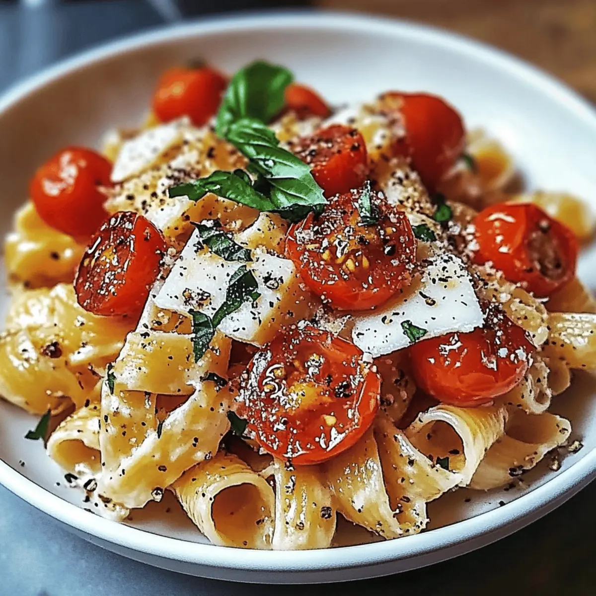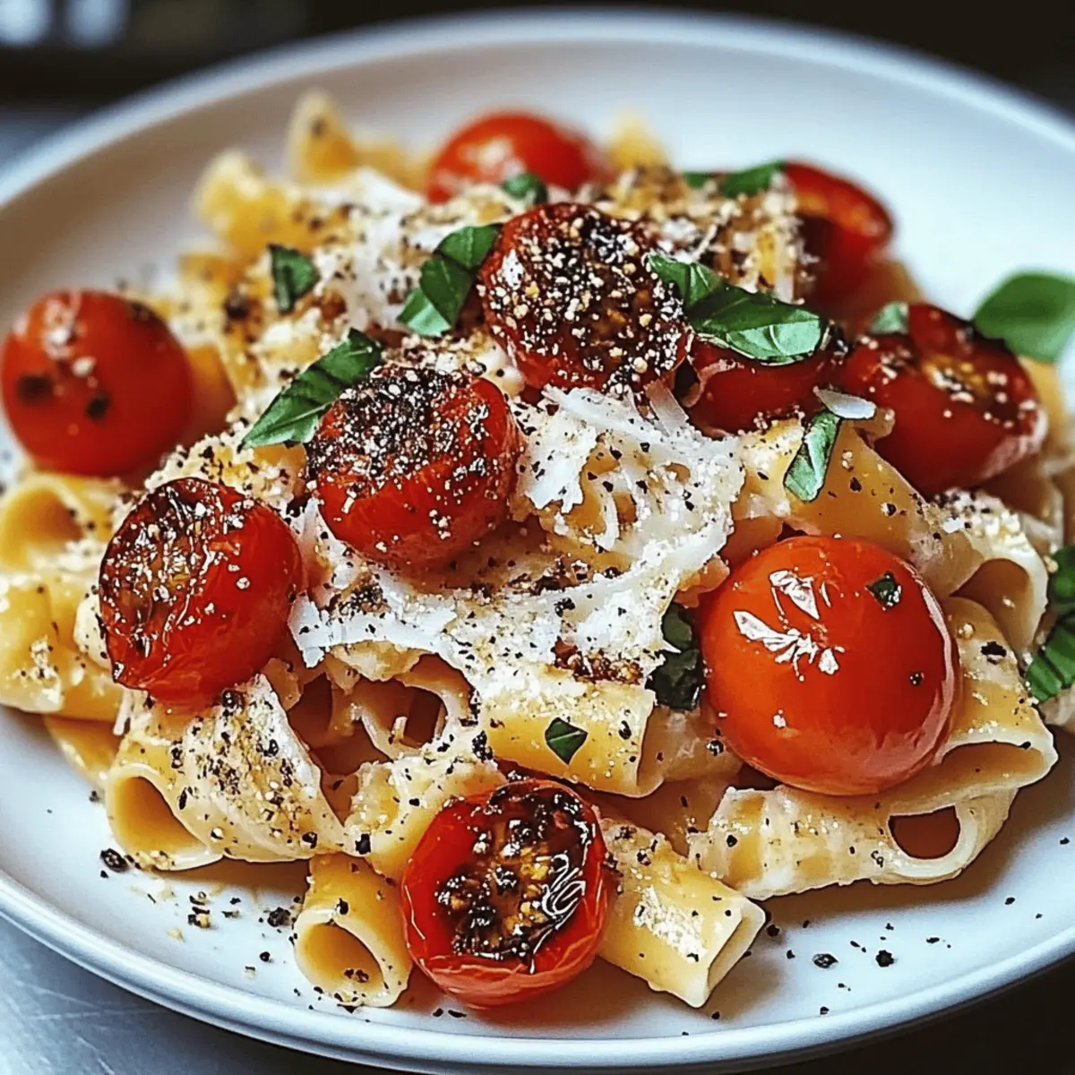 As I stirred the vibrant hues of roasted cherry tomatoes, the sweet aroma wafted through my kitchen, taking me back to sun-soaked summer days. This Roasted Tomato Garlic Pasta is not just a simple recipe; it’s a comforting embrace that transforms everyday ingredients into something magical. The delightful combination of caramelized tomatoes and aromatic garlic creates a hearty dish that’s perfect for both quick weeknight meals and cozy gatherings with friends. You’ll love how effortlessly it comes together, making it a go-to for those evenings when you crave something special without a fuss. Plus, it’s vegetarian and can easily accommodate various diets, ensuring everyone at your table leaves happy. Are you ready to turn your kitchen into a haven of comforting flavors? Let’s dive in! Why is this pasta recipe a must-try? Simplicity at its finest: This Roasted Tomato Garlic Pasta requires minimal ingredients and just a few easy steps, making it perfect for cooks of all skill levels. Bold, comforting flavors: The sweet, caramelized tomatoes paired with aromatic roasted garlic create a mouthwatering sauce that truly satisfies. Versatile and customizable: Feel free to add in some sautéed vegetables or proteins like grilled chicken for added flavor and nutrition. Quick weeknight meal: It comes together in under 40 minutes, making it an ideal choice for busy evenings. Crowd-pleaser: Whether it’s a family dinner or a gathering with friends, this dish is sure to impress! Pair it with a side salad or some crusty garlic bread for the complete Italian experience, just like with my Garlic Butter Pasta for an unforgettable meal! Roasted Tomato Garlic Pasta Ingredients Here’s everything you need to create this extraordinary dish that’s sure to warm your heart! For the Pasta • Pasta (Spaghetti or Choice) – The main carbohydrate and texture; gluten-free pasta can be used as a substitute. For the Sauce • Cherry Tomatoes – The sweetness and flavor base; substitute with grape tomatoes if desired. • Garlic – Provides aromatic depth; fresh garlic is preferred for better sweetness. • Olive Oil – Adds moisture and richness; can be substituted with avocado oil for a different flavor. • Salt – Enhances overall flavor; adjust according to your taste preferences. • Pepper – Adds mild heat; freshly cracked black pepper is highly recommended for the best flavor. • Red Pepper Flakes (optional) – For a kick of heat; skip if sensitive to spice. • Balsamic Vinegar (optional) – Adds a tangy depth; replace with lemon juice for a fresh alternative. For the Toppings • Fresh Basil – Introduces freshness and vibrant color; substitute with parsley for a different herbaceous note. • Grated Parmesan Cheese – Adds creaminess and umami; use nutritional yeast for a vegan version. Each ingredient plays a vital role in crafting the unforgettable Roasted Tomato Garlic Pasta experience! Step‑by‑Step Instructions for Roasted Tomato Garlic Pasta Step 1: Preheat the Oven Begin by preheating your oven to 400°F (200°C), creating the perfect environment for roasting. This high temperature will caramelize the cherry tomatoes, bringing out their natural sweetness while infusing your kitchen with an irresistible aroma. Grab a baking sheet and line it with parchment paper for easy cleanup later on. Step 2: Prepare the Tomatoes While the oven heats up, rinse and dry approximately two cups of cherry tomatoes. Place them in a mixing bowl and ensure they are evenly coated. This step sets the flavor base for the Roasted Tomato Garlic Pasta; simple but essential for achieving those delicious, blistered tomatoes. Step 3: Ready the Garlic Next, take a whole head of fresh garlic and carefully slice off the top to expose the cloves. Drizzle it generously with olive oil, ensuring every clove is coated. Wrap the garlic in aluminum foil to trap the heat effectively, which will help develop a sweet aroma as it roasts alongside the tomatoes. Step 4: Season the Ingredients Add two tablespoons of olive oil, along with salt, freshly cracked pepper, and optional red pepper flakes to the mixing bowl with the tomatoes. Toss everything together to ensure each tomato is well-seasoned. This will create a flavorful base for your Roasted Tomato Garlic Pasta, making each bite delightful. Step 5: Roast the Tomatoes and Garlic Spread the seasoned cherry tomatoes onto the lined baking sheet, placing the prepared garlic head next to them. Roast everything in the preheated oven for 25-30 minutes, or until the tomatoes are blistered and juicy. Keep an eye on them to prevent burning, as this roasting will enhance the dish’s comfort food essence. Step 6: Cook the Pasta While the tomatoes and garlic are roasting, fill a large pot with water and bring it to a boil. Add salt generously for flavor, then cook your choice of pasta (spaghetti works beautifully) according to package instructions until al dente. Be sure to reserve a cup of pasta water before draining, as it will help adjust the sauce’s consistency later. Step 7: Form the Sauce Once your garlic is roasted and cooled slightly, squeeze the cloves from their skins into a large mixing bowl. Add the blistered tomatoes from the oven and mash everything together gently to create a chunky sauce. This step is where the Roasted Tomato Garlic Pasta starts to evolve into a comforting dish full of rich flavors. Step 8: Combine Ingredients Drizzle in the remaining olive oil along with optional balsamic vinegar to the rustic sauce, stirring to incorporate everything evenly. Taste and adjust seasoning as necessary; this will ensure that your Roasted Tomato Garlic Pasta is perfectly seasoned and full of flavor. Step 9: Mix in the Pasta Combine the drained, al dente pasta with the roasted tomato sauce. If the mixture seems dry, add the reserved pasta water gradually until you reach your desired consistency. The starch from the water will help create a lovely, silky texture th