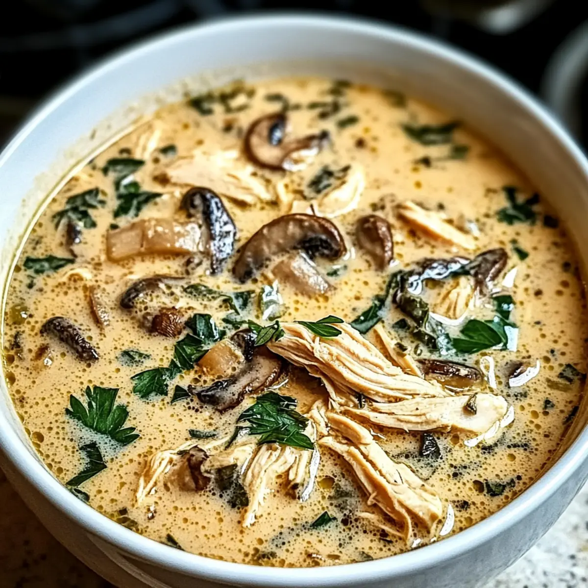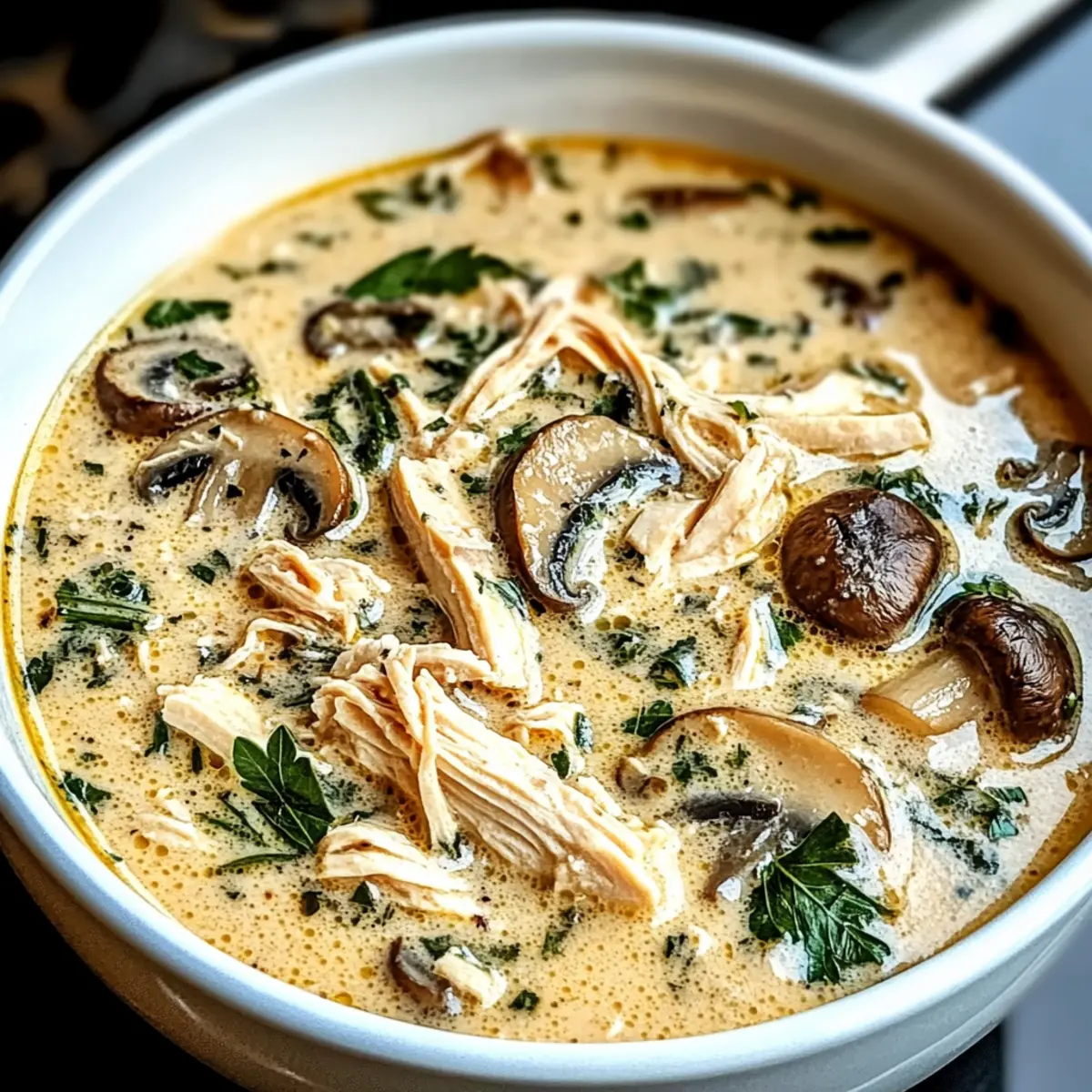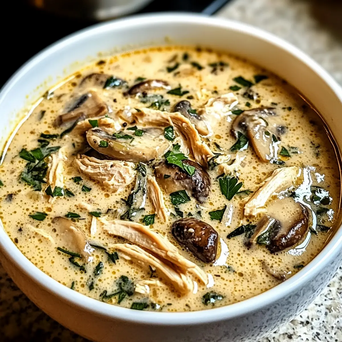 “Have you ever found yourself in a chilling dilemma of what to make for dinner?” On those brisk evenings, when time slips through your fingers, this Creamy Rotisserie Chicken Mushroom Soup becomes your warm embrace. Masterfully combining tender rotisserie chicken, earthy mushrooms, and aromatic herbs, this comforting dish is not only a quick meal solution but also a wonderfully economical option that shines in any home. Whether you’re nestled on the couch after a long day or entertaining friends with a hearty meal, this soup will surely steal the spotlight. Plus, with its customizable nature, you can easily sneak in your favorite veggies or substitute proteins, ensuring every bowl is just how you like it. Curious about how to make this cozy classic come alive in your kitchen? Let’s dive in! Why is Rotisserie Chicken Mushroom Soup a Must-Try? Comforting warmth fills your kitchen: This soup brings the delightful aromas of home-cooked meals to your table in no time. Quick preparation makes it a winner: With just a few steps, it’s ready to savor in about 30 minutes. Economical and satisfying: Using rotisserie chicken cuts costs while packing in flavor, proving you don’t need to spend much for a delicious meal. Customizable to your taste: Add in veggies like spinach or swap in different proteins for a twist on flavor and nutrition. Crowd-pleasing appeal: Whether it’s a family dinner or gathering with friends, this soup effortlessly warms hearts and appetites! Ingredients for Rotisserie Chicken Mushroom Soup For the Soup Base Olive Oil – Adds richness and helps sauté vegetables; substituting with butter offers a delightful flavor twist. Medium Onion – Provides a flavorful base for the soup; can be swapped with shallots for a mild, sweet touch. Garlic (2 cloves) – Offers fragrant depth; fresh garlic is ideal, but reduce if using garlic powder. For the Main Ingredients Mushrooms (8 ounces) – Contributes an earthy flavor and meaty texture; explore using cremini, shiitake, or a blend for variety. Chicken Broth (4 cups) – This liquid gold forms the base of the soup; homemade broth greatly enhances flavor and choosing low-sodium options helps control salt. Rotisserie Chicken (2 cups, shredded) – A quick protein source that enriches the dish; you can use leftover cooked chicken for savings. For the Creamy Finish Heavy Cream (1 cup) – Creates that velvety texture you crave; coconut milk serves as a great dairy-free alternative. Dried Thyme (1 tsp) – Infuses the soup with herbal goodness; fresh thyme can be used for a brighter and fresher flavor. Salt (1 tsp) and Black Pepper (½ tsp) – Essential seasonings that enhance the soup’s taste; adjust to your preference. For the Garnish Fresh Parsley (2 tbsp, chopped) – Adds color and a fresh note; feel free to switch it up with chives for a different herbaceous flair. Step‑by‑Step Instructions for Creamy Rotisserie Chicken Mushroom Soup Step 1: Prep Ingredients Begin by dicing the medium onion, mincing the two cloves of garlic, and slicing the 8 ounces of mushrooms. This step typically takes about 15 minutes and sets a flavorful base for your soup. Having everything prepared before cooking will make the process smoother and more enjoyable. Step 2: Sauté Base In a large pot, heat 2 tablespoons of olive oil over medium heat. Once shimmering, add the diced onion and sauté for about 5 minutes until it becomes translucent. Next, incorporate the minced garlic and sliced mushrooms, continuing to cook for an additional 5-7 minutes. The mushrooms should be tender and slightly browned, filling your kitchen with a mouthwatering aroma. Step 3: Simmer Broth Pour in 4 cups of chicken broth, bringing the mixture to a rolling boil. Once boiling, reduce the heat to low and let it simmer uncovered for 10 minutes. This allows the flavors from the sautéed vegetables to meld into the broth, resulting in a rich and savory base for your Creamy Rotisserie Chicken Mushroom Soup. Step 4: Add Chicken & Cream Stir in 2 cups of shredded rotisserie chicken, which adds both depth and a satisfying protein source. Once combined, pour in 1 cup of heavy cream, stirring well to incorporate. The soup will take on a creamy, luscious consistency, inviting you to savor every spoonful. Step 5: Season & Final Simmer Add 1 teaspoon of dried thyme, along with 1 teaspoon of salt and ½ teaspoon of black pepper. Stir everything well and let it simmer for another 5 minutes to blend the flavors beautifully. You’ll notice the soup thickening slightly, promising a delightful creamy experience with each bite. Step 6: Serve Ladle the hot Creamy Rotisserie Chicken Mushroom Soup into warm bowls. To elevate your presentation, sprinkle 2 tablespoons of chopped fresh parsley on top for a colorful garnish. Serve immediately and enjoy the comforting warmth of this delicious soup, perfect for any chilly day! What to Serve with Creamy Rotisserie Chicken Mushroom Soup Elevate your cozy meal experience with delightful accompaniments that perfectly complement the flavors of your soup. Crusty Bread: The ideal vessel for sopping up the creamy goodness, it’s a comforting addition to each bowl. Garden Salad: A mix of greens with a zesty vinaigrette brings freshness and balance, cutting through the richness of the soup. Savory Scones: Flaky and warm, these play well against the soup’s creamy texture, offering a delightful contrast on the palate. Roasted Vegetables: Their caramelized sweetness creates a wonderful flavor harmony, adding nutritional depth to your hearty meal. Grilled Cheese Sandwich: A classic pairing that appeals to nostalgia, every bite of gooey cheese complements the soup’s hearty warmth. White Wine: A crisp, chilled white wine enhances the meal, providing a refreshing contrast to the rich, creamy flavors. Homemade Biscuits: Light and flaky, they perfectly round out the meal and invite another level of warmth and satisfaction to the table. Truffle Oil Drizzl