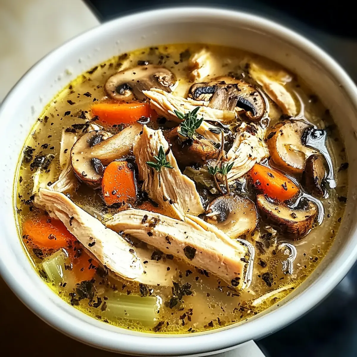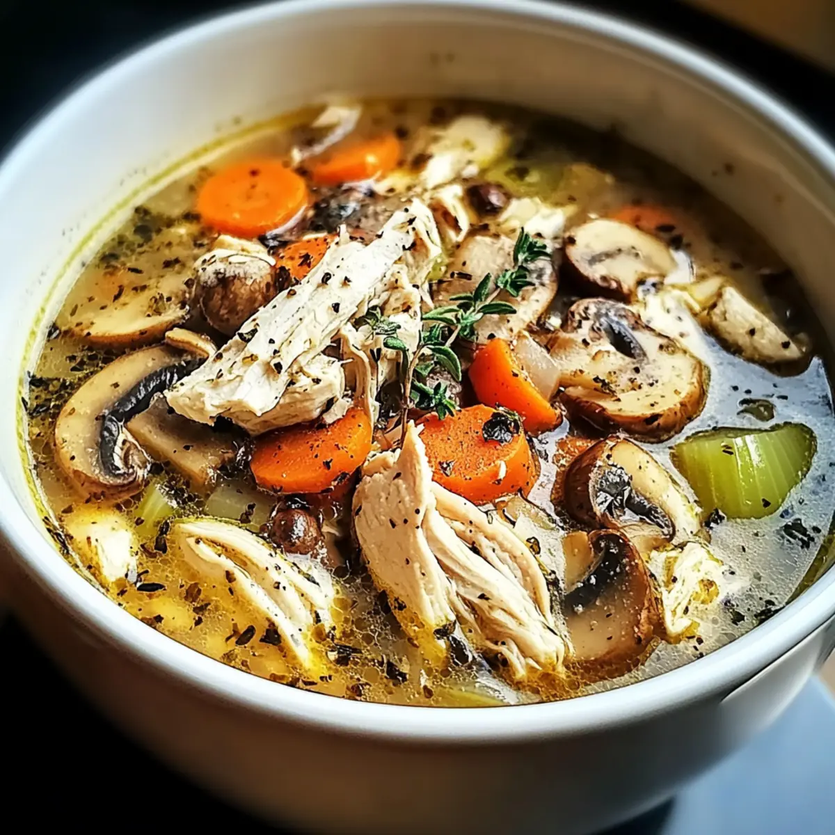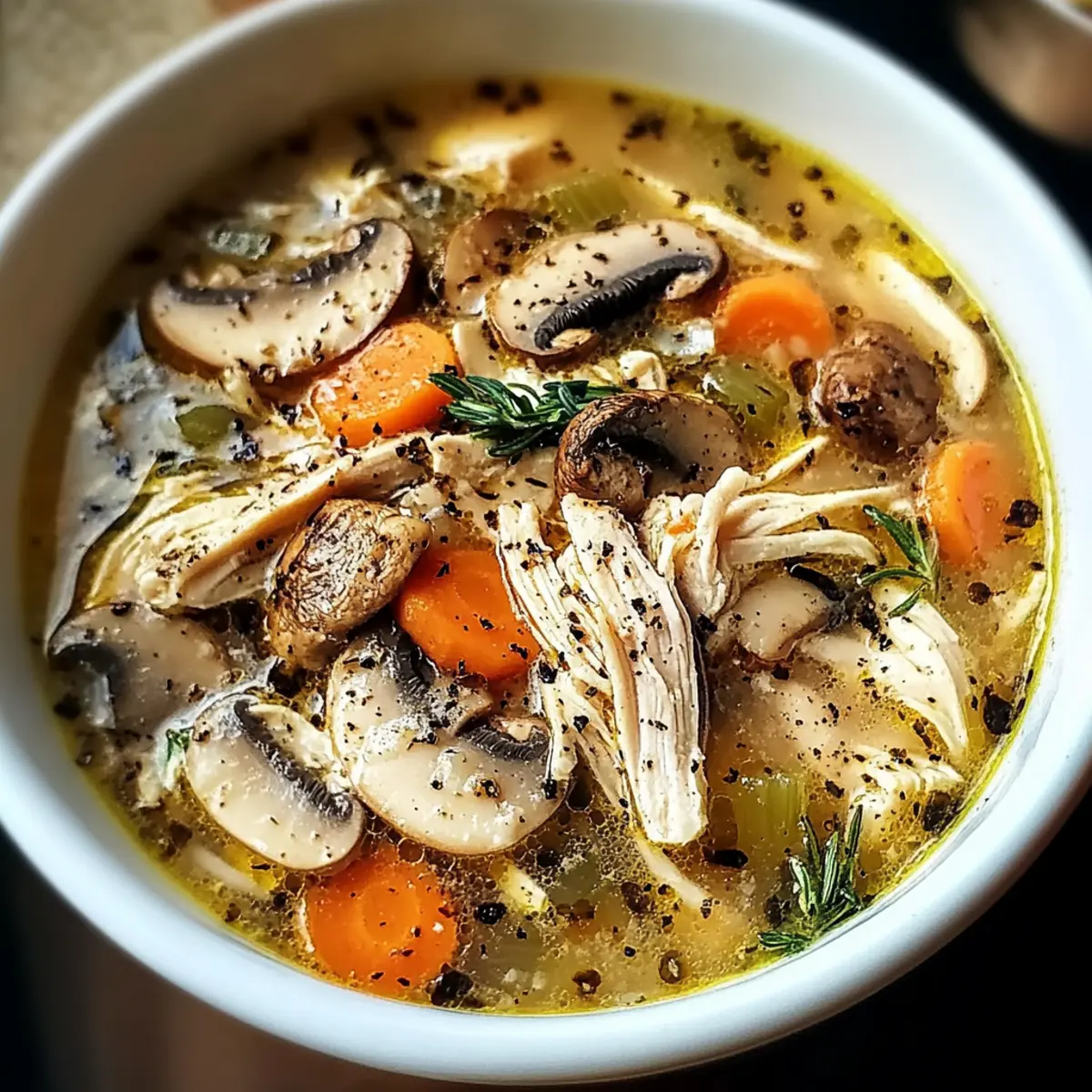As I scooped that warm broth into my favorite bowl, an inviting aroma filled the kitchen, turning my space into a cozy haven on a chilly evening. This Hearty Rotisserie Chicken Mushroom Soup not only warms the heart but also comes together in just 40 minutes, making it your go-to option for busy weeknights or family gatherings. Packed with savory rotisserie chicken and earthy mushrooms, it transforms simple ingredients into a delicious comfort food that everyone will love. Plus, it’s easily customizable—swap in your favorite veggies or add noodles for a fun twist! Are you ready to discover the joy of homemade soup that comes together so quickly? Why is this soup a family favorite? Comfort in a bowl: The Hearty Rotisserie Chicken Mushroom Soup is like a warm hug on a chilly night, perfect for soothing souls. Quick preparation: With just 40 minutes needed, it’s a lifesaver on busy nights when you crave wholesome goodness. Savory flavors: The blend of rotisserie chicken and earthy mushrooms creates a rich, delicious experience that will have everyone asking for seconds. Versatile options: Customize it with your favorite vegetables or even noodles for variety, just like in our Creamy Chicken Tortilla Soup. Family-friendly: This soup is not only nourishing but also a crowd-pleaser that kids and adults alike will enjoy, making it a perfect addition to any dinner table. Rotisserie Chicken Mushroom Soup Ingredients For the Soup Base • Rotisserie Chicken – Provides protein and rich flavor; feel free to use any cooked chicken in a pinch. • Mushrooms (8 oz) – Adds umami depth and heartiness; shiitake or button mushrooms can work as substitutes. • Onion (1, diced) – Enhances the soup’s flavor; consider shallots for a mellower taste. • Carrots (2, sliced) – Brings sweetness and vibrant color; parsnips can be an interesting alternative. • Celery Stalks (2, chopped) – Introduces crunch and aromatic notes; leeks can add a sweeter touch. • Garlic (4 cloves, minced) – A key aromatic for depth; garlic powder is a quick substitute if needed. For the Broth • Chicken Broth (6 cups) – Serves as the flavorful foundation; swap vegetable broth for a vegetarian option. For Finishing Touches • Dried Thyme (1 tsp) – Infuses herbal notes; fresh thyme can brighten the flavor if you have it. • Salt and Pepper – Essential for seasoning; adjust to your family’s taste preferences. Embrace the love of homemade food with this Rotisserie Chicken Mushroom Soup that promises warmth and joy in every bowl! Step‑by‑Step Instructions for Hearty Rotisserie Chicken Mushroom Soup Step 1: Heat the Oils In a large pot, pour in a splash of olive oil and heat over medium heat until shimmering. This should only take a minute or so. Once hot, you’re ready to add that fragrant mix of vegetables for your Hearty Rotisserie Chicken Mushroom Soup. Step 2: Sauté the Aromatics Add diced onion, sliced carrots, chopped celery, and minced garlic to the pot, sautéing for about 5–7 minutes. Stir occasionally until the onions are translucent, and the vegetables soften slightly. The aroma that fills your kitchen will guide you as the flavors begin to meld beautifully. Step 3: Cook the Mushrooms Next, toss in the sliced mushrooms, stirring them into the mix. Allow them to cook for 3–4 minutes until they begin to release their juices and turn golden brown. This step enhances the earthy flavor essential for your Hearty Rotisserie Chicken Mushroom Soup. Step 4: Add the Broth Pour in 6 cups of chicken broth, raising the heat to bring everything to a gentle simmer. This should take just a couple of minutes. As it bubbles, you’ll see all those vibrant ingredients combining, creating a rich base for your comforting soup. Step 5: Incorporate the Chicken and Thyme Add the shredded rotisserie chicken and dried thyme into the pot, stirring to combine. Let the soup simmer on low heat for about 20 minutes, allowing the flavors to meld beautifully. You’ll know it’s ready when the soup is fragrant and cozy, perfect for warming up chilly evenings. Step 6: Season to Taste After simmering, taste your Hearty Rotisserie Chicken Mushroom Soup and adjust the seasoning with salt and pepper. Feel free to add a bit more thyme if you prefer! The nuances of flavor should dance together, creating the perfect bowl of comfort. Step 7: Serve and Enjoy Ladle the hot soup into bowls, making sure to include plenty of chicken, mushrooms, and vegetables in each serving. Pair it with crusty bread or a green salad for a delightful meal that brings warmth and joy to your family dinner. Storage Tips for Rotisserie Chicken Mushroom Soup Fridge: Store leftovers in an airtight container for up to 3-4 days. This will keep your delicious Rotisserie Chicken Mushroom Soup fresh and ready for your next cozy meal. Freezer: If you plan to save it for longer, it can be frozen for up to 3 months. Make sure to leave some space in the container for the soup to expand as it freezes. Reheating: To enjoy your soup again, thaw it in the refrigerator overnight, then reheat on the stovetop over low heat until warmed through. Stir occasionally to maintain a lovely consistency. Avoid Spoilage: Always check for any changes in smell or appearance before reheating leftovers, ensuring your soup remains as delightful as the day you made it. What to Serve with Hearty Rotisserie Chicken Mushroom Soup? Indulging in a bowl of warm, hearty soup can transport you to a place of comfort, especially when paired with perfect accompaniments. Crusty Bread: Offers a satisfying texture to dip and soak up the flavorful broth, making every bite a delight. Fresh Green Salad: A refreshing side that adds a crisp contrast, lightening up the meal with vibrant veggies and tangy dressing. Garlic Breadsticks: Complement the savory soup with an irresistible garlic flavor, perfect for a cozy dinner setting. Roasted Vegetables: Enhance the meal with caramelized goodness, balancing th