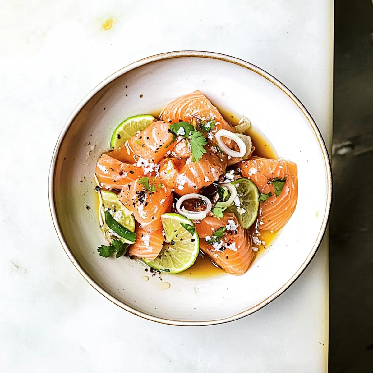 Experience the elegance of Salmon Crudo with Soy Sesame Dressing, a quick high-protein appetizer that dazzles without cooking.