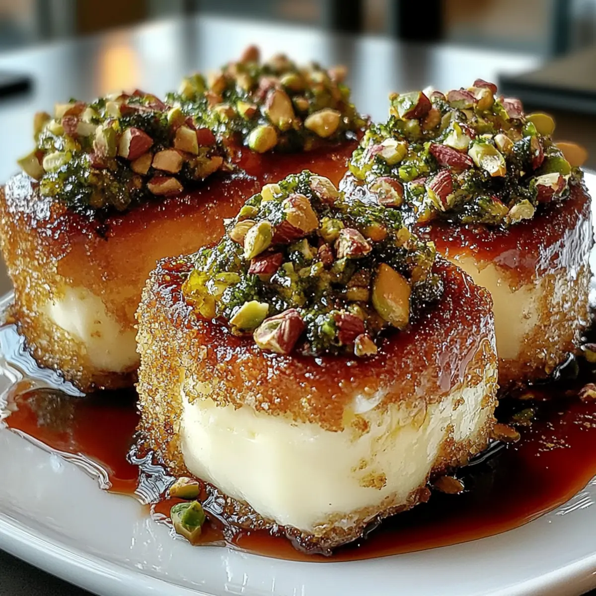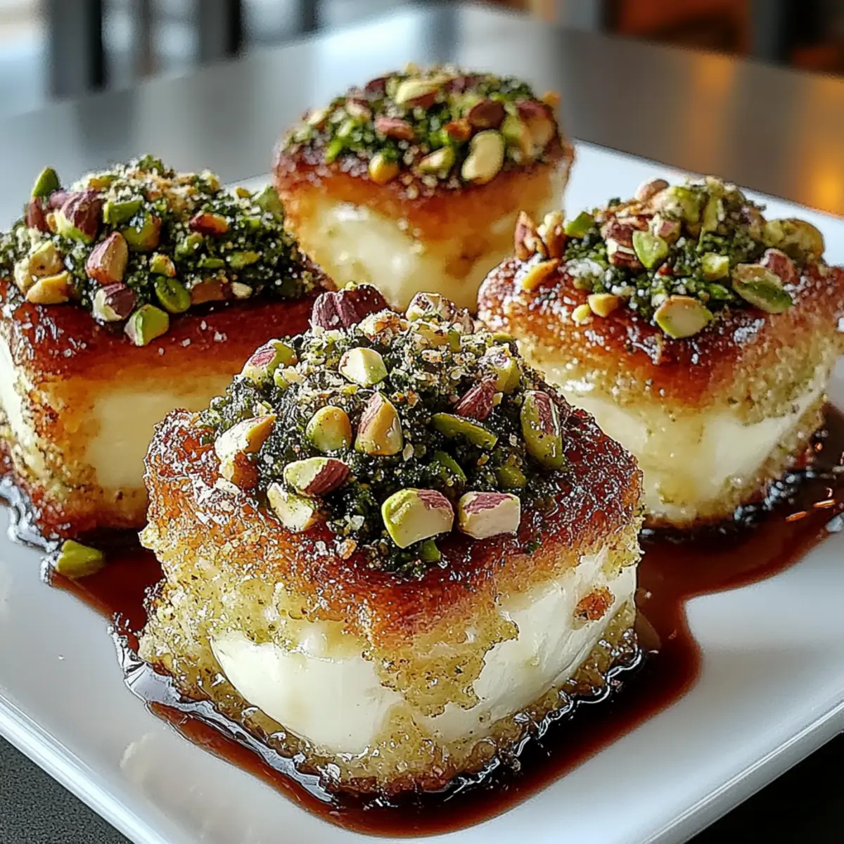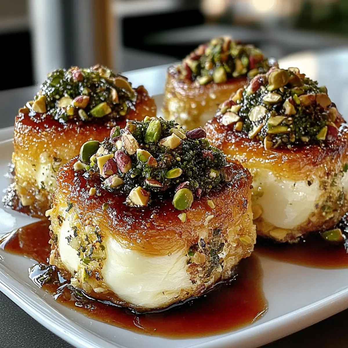 As the aroma of warm, melting cheese fills the air, I’m reminded of other evenings spent delighting in gooey bites that spark conversation and laughter. Enter these Savory Pistachio-Crusted Brie Bites, a quick and elegant appetizer that will leave your guests reaching for more. With creamy brie wrapped in flaky puff pastry and a crunchy pistachio coating, this dish is not only simple to prepare, but it’s also a versatile crowd-pleaser. Perfect for brunch gatherings or fancy soirées, these bites shine as an upscale yet approachable addition to any spread. Plus, you can easily swap in different cheeses or nuts to suit your taste, ensuring that every experience feels fresh and exciting. Why settle for ordinary when you can impress effortlessly? What’s your favorite twist on classic cheese bites? Why Are These Brie Bites a Must-Try? Simplicity defines this recipe, featuring just a handful of ingredients and easy steps to follow. Versatile options make it a breeze to customize, allowing for different cheeses like camembert or almond crusts based on your preference. Elegant presentation elevates your brunch or gathering, making even casual events feel special. Crowd-pleaser appeal guarantees compliments from guests who can’t resist the delightful combination of textures and flavors. For more unique ideas, explore our Croissant Breakfast Sandwiches or pair these bites with a refreshing drink, just like our Chicken Rice Savory. Savory Pistachio-Crusted Brie Bites Ingredients For the Cheese • Brie – Creamy cheese that melts beautifully; swap with camembert for a milder flavor or sharp cheddar for more depth. For the Pastry • Puff Pastry – Provides a flaky, buttery crust; use gluten-free puff pastry for a delightful gluten-free option. For the Coating • Unsalted Pistachios – Offers crunch and nutty depth; toast lightly for enhanced flavor, or substitute with toasted almonds or walnuts. • Fresh Thyme – Adds earthy brightness; try rosemary for a different herbaceous note. • Sea Salt – Enhances all the flavors; it’s crucial to use unsalted nuts to avoid overpowering the dish. For the Glaze • Honey – Balances sweetness with richness; for a vegan version, substitute with agave syrup. For the Egg Wash • Egg – Helps the pistachio coating adhere to the pastry; replace it with a mix of plant-based milk and maple syrup for a vegan alternative. These Savory Pistachio-Crusted Brie Bites are not only easy to make, but they also offer limitless variations to impress every palette at your next gathering! Step‑by‑Step Instructions for Savory Pistachio-Crusted Brie Bites Step 1: Prep Brie Begin by cutting the brie into 12 equal cubes, approximately 1½ inches in size. Gently pat each cube dry with a paper towel; this will help the coating stick better. Set the brie cubes aside while you prepare the puff pastry. Step 2: Roll Pastry On a lightly floured surface, roll out the puff pastry until it’s about 1/8 inch thick. Cut the pastry into 12 equal squares, each approximately 3 inches in size. Lay the squares out on a parchment-lined baking sheet, preserving their shape as you work on the next steps. Step 3: Make Coating In a mixing bowl, combine the chopped, toasted pistachios, minced fresh thyme, and a sprinkle of sea salt. Use a fork to mix the ingredients well, ensuring an even distribution. This flavorful coating will add crunch and depth to your Savory Pistachio-Crusted Brie Bites. Step 4: Assembly Take one puff pastry square and place a brie cube in the center. Fold the corners of the pastry over the cheese, pinching to seal securely. Brush the exterior with an egg wash for added gloss and to help the pistachio coating adhere, then roll in the pistachio mixture to completely cover the pastry. Step 5: Bake Preheat your oven to 350°F (175°C) while you continue assembling the bites. Once ready, place the prepared bites on a baking sheet and bake for 15-18 minutes or until they are beautifully golden brown and puffed. The aroma of melting cheese will fill your kitchen as they cook! Step 6: Rest Remove the baking sheet from the oven and allow the Savory Pistachio-Crusted Brie Bites to cool for about 3-4 minutes. This resting period is crucial as it helps the cheese set slightly, ensuring each bite has a perfect gooey texture without spilling out. Step 7: Serve Just before serving, sprinkle the warm bites with freshly cracked black pepper for an extra touch of flavor. Optionally, drizzle with honey-thyme glaze for a touch of sweetness. Serve immediately while warm to enjoy the delightful contrast of textures and flavors. Storage Tips for Savory Pistachio-Crusted Brie Bites Fridge: Store uneaten bites in an airtight container to keep them fresh for up to 3 days. This helps to retain moisture while preventing them from absorbing any odors. Freezer: For longer storage, freeze the bites for up to 2 months. Place them in a single layer in a freezer-safe container to prevent sticking. Reheating: Reheat in an oven at 350°F (175°C) for about 10-15 minutes to maintain the pastry’s flakiness and warmth, restoring the delightful textures of your Savory Pistachio-Crusted Brie Bites. Savory Pistachio-Crusted Brie Bites Variations Feel free to get creative with these scrumptious bites—tailoring them to your taste buds adds a personal touch! Cheese Swap: Choose camembert for a richer, creamier flavor, or opt for sharp cheddar for a delightful tang. Nut Alternatives: Swap pistachios with toasted almonds or walnuts to create a different crunch profile and flavor dimension. Herb Infusion: For an aromatic twist, replace fresh thyme with rosemary or even sage to elevate the dish’s flavor. Glaze Creativity: Add a splash of orange zest to the honey glaze, creating a bright pop that complements the warm cheese beautifully. Vegan-Friendly: Replace the brie and egg with plant-based cheese alternatives and a mixture of plant-based milk and maple syrup for the wash. Balsamic Bliss: Drizzl