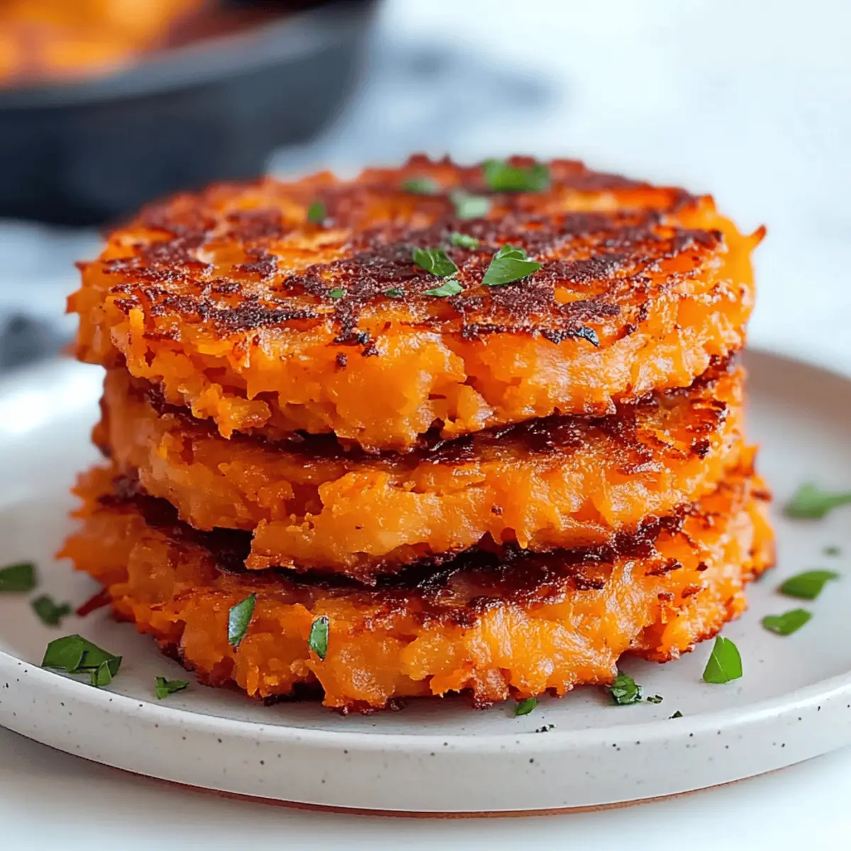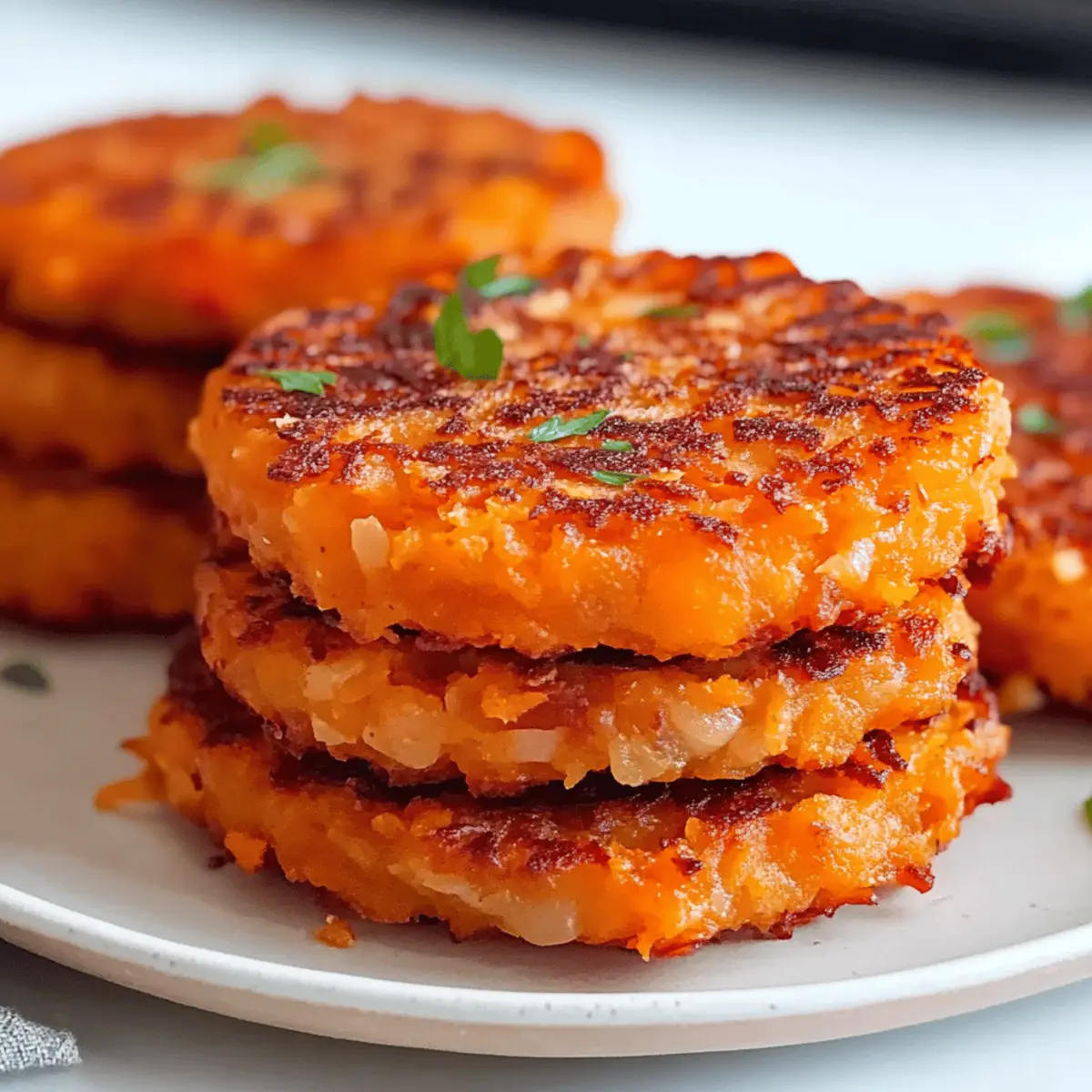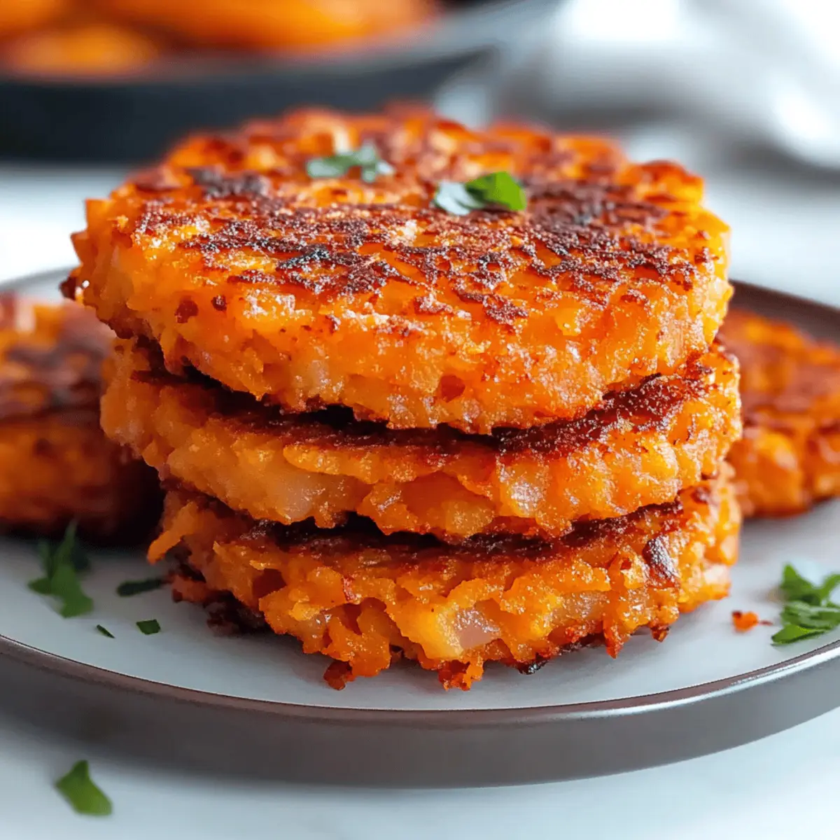 As the morning sun spills through the window, I can almost hear the promising sizzle of crispy Savory Sweet Potato Hash Browns in the skillet. This cozy dish redefines breakfast and brunch with its beautiful blend of sweet and savory flavors, making it a delightful choice for any gathering—or even just a lazy Sunday. What I adore most is how this recipe transforms humble sweet potatoes into golden, crunchy delights, perfect for sharing or indulging solo. Not only are they crispy on the outside and fluffy on the inside, but they’re also gluten-free and vegetarian, appealing to a wide range of dietary needs. With just a handful of ingredients and minimal prep time, you’ll find this hash brown recipe a game-changer in your kitchen. So, are you ready to discover how to elevate your brunch game? Why are these hash browns irresistible? Crispy Texture: The irresistible crunch of these Savory Sweet Potato Hash Browns sets them apart from typical breakfast fare. Each bite delivers a satisfying texture that wonderfully contrasts with their tender interior. Flavor Burst: With the natural sweetness of sweet potatoes balanced by savory onions and seasoning, these hash browns are a taste sensation that will brighten your mornings. Flexible Serving: Whether enjoyed solo or paired with fried eggs, crispy bacon, or even a dollop of Greek yogurt, they easily adapt to various meals, making them a versatile favourite! Quick & Easy: Just a handful of ingredients and minimal prep time mean you can whip these up without stress, ensuring you spend more time enjoying your meal instead of cooking. Diet-Friendly: Gluten-free and vegetarian, these hash browns cater to different dietary preferences, allowing everyone at the table to indulge happily. Pair them with some Garlic Mashed Potatoes or a stirring portion of Sausage Potatoes Skillet for a complete meal. Savory Sweet Potato Hash Browns Ingredients • Bring your culinary creations to life with this straightforward list of necessities! For the Hash Browns Sweet Potatoes – Choose orange-fleshed varieties like Beauregard for natural sweetness and optimal crispiness. Onion – Adds a delightful savory depth; shallots or green onions can offer a milder flavor for those who prefer it. Eggs – Help bind the mixture together for a fulfilling texture; consider using a flax egg for a vegan alternative. Flour – Aids in binding and enhances crispness; feel free to use gluten-free all-purpose flour for dietary needs. Salt & Pepper – Essential seasonings that lift the overall flavor; adjust to your taste preference for the perfect bite. Embrace the beautiful harmony of flavors and textures with these Savory Sweet Potato Hash Browns! Step‑by‑Step Instructions for Savory Sweet Potato Hash Browns Step 1: Preheat the Oven Begin by preheating your oven to 350°F (175°C). This ensures a warm cooking environment that will perfectly crisp your savory sweet potato hash browns in the final baking step. Setting the oven now allows you to focus on preparing the hash brown mixture without any interruption. Step 2: Grate Sweet Potatoes Coarsely grate the sweet potatoes using a box grater or a food processor. Place the grated sweet potatoes into a large bowl and soak them in cold water for about 10 minutes. This step helps remove excess starch and prevents browning, keeping your sweet potatoes vibrant and fresh. Step 3: Drain and Dry After soaking, drain the sweet potato shreds and thoroughly pat them dry using a clean kitchen towel. Squeeze out as much moisture as possible; this is crucial for achieving the desired crispy texture in your savory sweet potato hash browns. Aim for a dry, fluffy consistency before mixing in the other ingredients. Step 4: Combine Ingredients In a large mixing bowl, combine the drained and dried sweet potatoes with finely chopped onions, eggs, flour, salt, and pepper. Stir everything together until well blended, ensuring that the flour evenly coats the mixture. This will help bind the ingredients and enhance the crispiness of the hash browns. Step 5: Heat the Skillet Heat a generous amount of oil in a non-stick skillet over medium heat. Once the oil is shimmering but not smoking, it’s time to add the sweet potato mixture. Using a tablespoon, drop heaping scoops of the mixture into the skillet, giving you plenty of space to work with. Step 6: Shape the Patties Lightly flatten each scoop with a spatula to form even patties, making them about ½ inch thick. Allow the savory sweet potato hash browns to cook for approximately 3-4 minutes on one side, until they develop a golden-brown crust that signals they are ready for flipping. Step 7: Flip and Cook Carefully flip each hash brown using the spatula, allowing it to cook on the other side for another 3-4 minutes. You’re looking for a nice golden color and crispy edge. Cooking them evenly ensures both sides are perfectly delightful, creating a beautiful texture and flavor. Step 8: Bake for Extra Crispiness Once your hash browns are beautifully browned, transfer them to a baking sheet lined with parchment paper. Place them in the preheated oven and bake for an additional 10-12 minutes to finish cooking through while further enhancing their crispiness. Step 9: Serve Hot Once baked, remove the savory sweet potato hash browns from the oven and let them cool for a minute. Serve them hot alongside your favorite toppings, like a dollop of Greek yogurt, a sprinkle of fresh herbs, or a slice of creamy avocado for an irresistible breakfast or brunch experience! Make Ahead Options These Crispy Savory Sweet Potato Hash Browns are perfect for meal prep enthusiasts looking to save time during busy mornings! You can grate and combine the sweet potatoes, onions, eggs, and flour up to 24 hours in advance. Store the mixture in an airtight container in the refrigerator, placing a paper towel on top to absorb excess moisture and prevent sogginess. When you’re ready to serve, simply heat your skillet, drop spoon