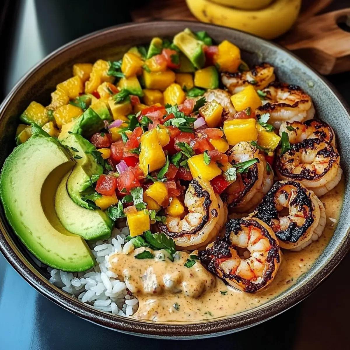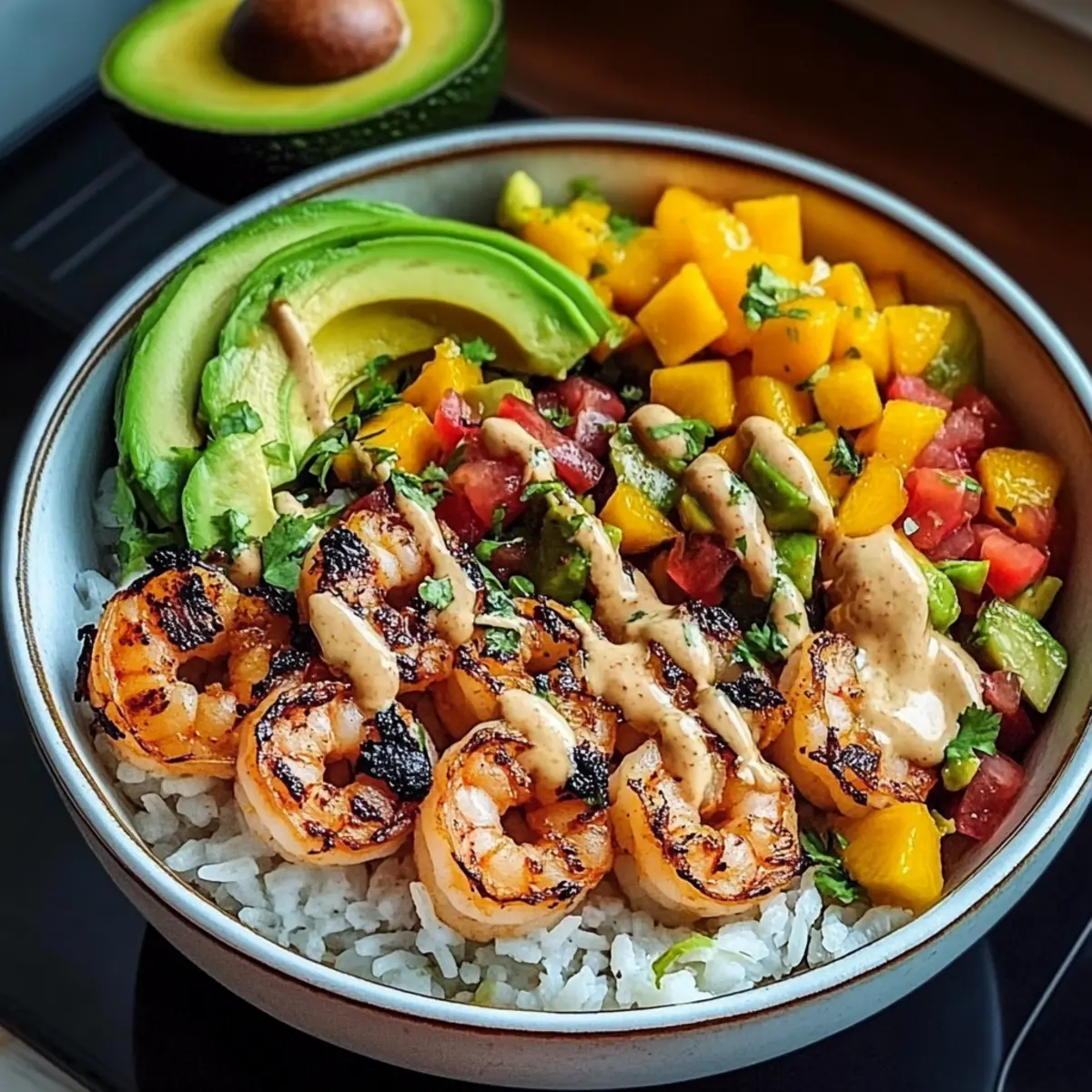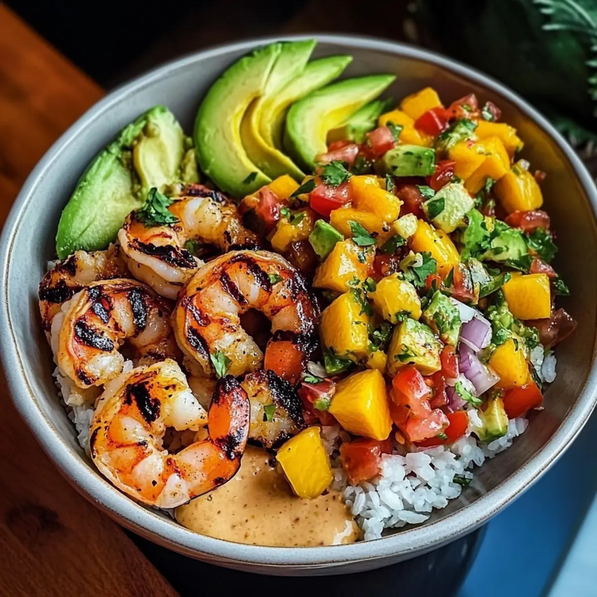 There’s something invigorating about a bowl packed with bright colors and vibrant flavors—especially when it transports you to a sandy beach with every bite. My Shrimp and Avocado Bowls with Mango Salsa & Lime-Chili Sauce are just the dish for those cravings. This meal is not only a feast for the eyes but also a celebration of fresh ingredients that combine juicy grilled shrimp with creamy avocado and sweet mango salsa. The best part? They’re incredibly meal prep-friendly and make a delightful weeknight dinner option. Plus, with a few simple substitutions, you can easily make them gluten-free or swap shrimp for chicken or tofu. Curious about how to deliver an unforgettable tropical experience on your dinner table? Let’s dive into this recipe together! Why are these bowls a must-try? Freshness that sings: Each bite bursts with the vibrant flavors of grilled shrimp, ripe avocado, and zesty mango salsa. Meal prep-friendly: Prepare components ahead and assemble for quick, delicious dinners throughout the week. Customizable for everyone: Swap shrimp for chicken or tofu and adjust spice levels to suit your taste. Rich and creamy lime-chili sauce ties everything together, enhancing every delicious bite. Nutrient-packed: Loaded with healthy fats and protein, these bowls are perfect for a balanced meal. Think you’ll love these as much as I do? Pair them with a side of Cajun Shrimp Boil for a festive tropical feast! Shrimp and Avocado Bowls Ingredients For the Shrimp • 12 large shrimp – The star of the dish; provides a meaty texture. Substitution: Can be swapped with chicken or tofu for variety. • 1 tablespoon olive oil – Adds richness when marinating the shrimp. • 1/2 teaspoon garlic powder – Enhances flavor for the shrimp marinade. • 1/2 teaspoon chili powder – Adds warmth and flavor depth. Notes: Increase for a spicier result. • 1/2 teaspoon salt – Essential for enhancing the shrimp’s flavor. • 1/4 teaspoon black pepper – Provides a touch of warmth. For the Salsa • 1 ripe avocado – Brings creaminess and healthy fats to the dish. Prep Note: Slice fresh to avoid browning. • 1 mango, diced – Introduces sweetness and a tropical flair. Substitution: Use papaya for a different fruit twist. • 1 medium tomato, diced – Addsjuiciness and freshness. • 1/4 red onion, finely chopped – Offers a mild sharpness. Substitution: Substitute with green onions for a mellower flavor. • 1 tablespoon chopped cilantro – Infuses herbal notes into the salsa. Substitution: Parsley works for a different herb profile. • 1 small jalapeño or chili, minced – Gives a spicy kick. Notes: Adjust quantity for desired heat level. • 2 tablespoons lime juice (divided) – Brightens the salsa with acidity. Substitution: Lemon juice can work as an alternative. For the Lime-Chili Sauce • 1/3 cup sour cream or Greek yogurt – Creates a creamy base for the lime-chili sauce. Substitution: Use coconut yogurt for a dairy-free option. • 1/2 teaspoon chili powder – Adds a touch of warmth to the sauce. • 1/2 teaspoon garlic powder – Boosts flavor in the creaminess. • 2 tablespoons lime juice (divided) – Gives juiciness and tang to the sauce. For the Bowl Base • 2 cups cooked rice – Acts as a hearty base for the bowl. Substitution: Choose jasmine, basmati, or brown rice for varied texture. • 1/2 teaspoon salt – Essential for flavor enhancement throughout the dish. Cooking doesn’t have to be complicated when you can whip up these Shrimp and Avocado Bowls with Mango Salsa & Lime-Chili Sauce that promise bright flavors and a delightful experience! Step‑by‑Step Instructions for Shrimp and Avocado Bowls with Mango Salsa & Lime-Chili Sauce Step 1: Prepare the Shrimp Start by peeling and deveining the 12 large shrimp. In a bowl, combine the shrimp with 1 tablespoon of olive oil, 1/2 teaspoon of garlic powder, 1/2 teaspoon of chili powder, 1/2 teaspoon of salt, and 1/4 teaspoon of black pepper. Let the shrimp marinate for 15–20 minutes, allowing the flavors to meld and set them aside while you prepare the other components. Step 2: Grill the Shrimp Preheat your grill or grill pan over medium-high heat. Once hot, place the marinated shrimp on the grill, ensuring they are spread out and not overcrowded. Grill for about 2 minutes on each side or until they turn pink and are charred, with a pleasing grilled aroma filling the air. Remove the shrimp from the heat and keep warm. Step 3: Make the Mango Salsa In a mixing bowl, dice the mango, tomato, red onion, and jalapeño. Add 1 tablespoon of chopped cilantro and squeeze in the juice of 1 tablespoon of lime for a zesty kick. Toss everything together, seasoning with a pinch of salt, until well combined. This vibrant mango salsa is a delightful accompaniment for your Shrimp and Avocado Bowls. Step 4: Prepare the Lime-Chili Sauce In another bowl, mix 1/3 cup of sour cream (or Greek yogurt) with 1 tablespoon of lime juice, 1/2 teaspoon of chili powder, 1/2 teaspoon of garlic powder, and a pinch of salt. Use a whisk or blender to combine until the sauce is smooth and creamy. This lime-chili sauce adds a rich, tangy flavor that perfectly complements the shrimp and avocado. Step 5: Cook the Rice Cook 2 cups of rice according to package instructions until fluffy. This step usually takes about 15–20 minutes. Once the rice is done, fluff it with a fork and keep it warm. The rice serves as the essential base for your Shrimp and Avocado Bowls, absorbing all the delicious flavors from the other ingredients. Step 6: Assemble the Bowls To assemble your Shrimp and Avocado Bowls, start with a generous scoop of warm rice at the bottom of each bowl. Layer grilled shrimp on top, followed by slices of fresh avocado. Spoon a hearty portion of mango salsa over the shrimp and drizzle with your creamy lime-chili sauce. Serve immediately with extra lime wedges for added freshness and flavor. Expert Tips for Shrimp and Avocado Bowls Marinate Ov