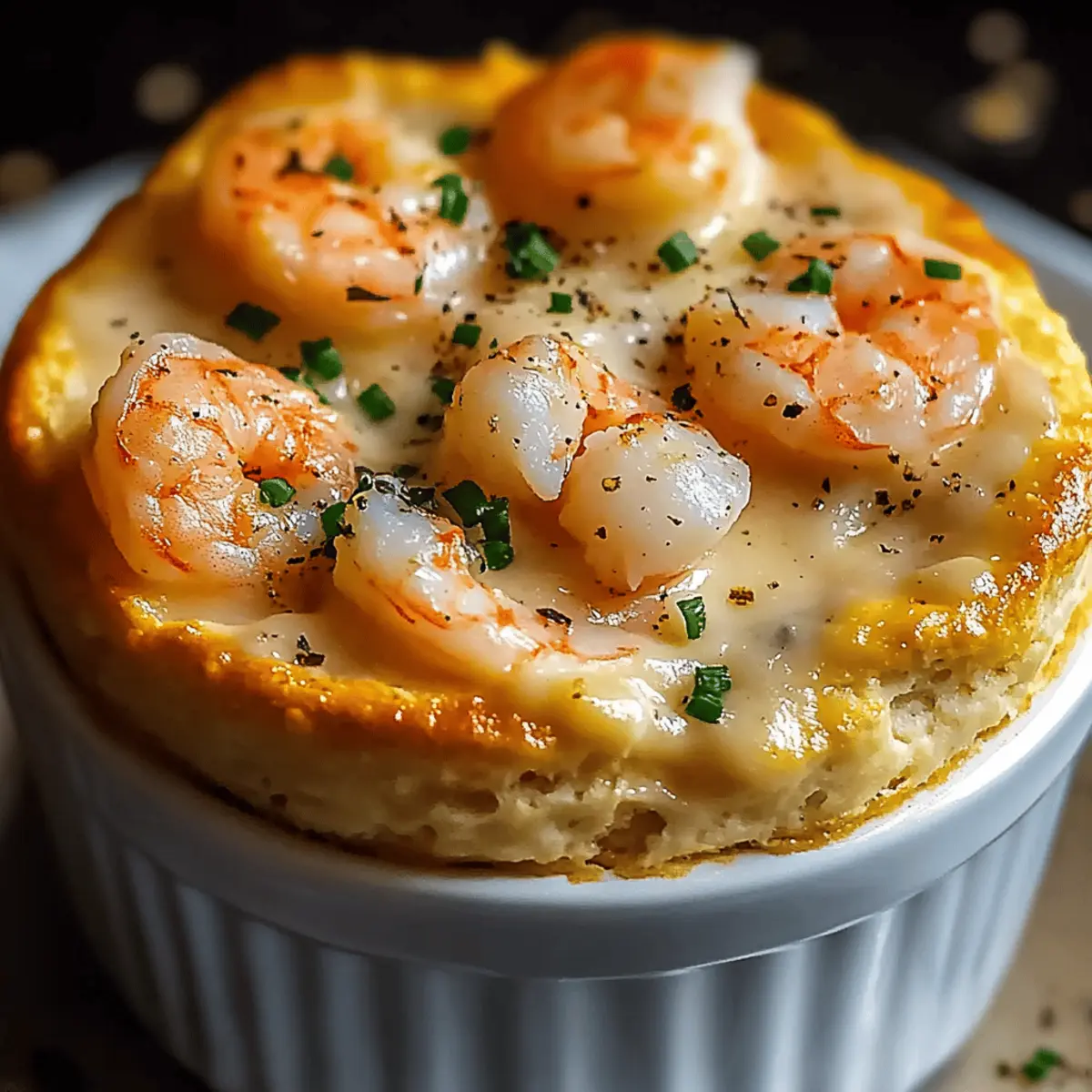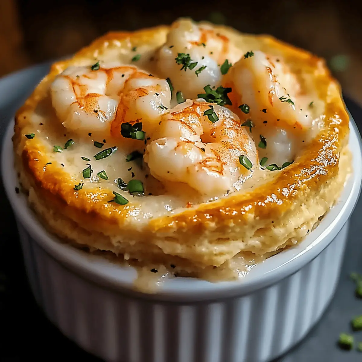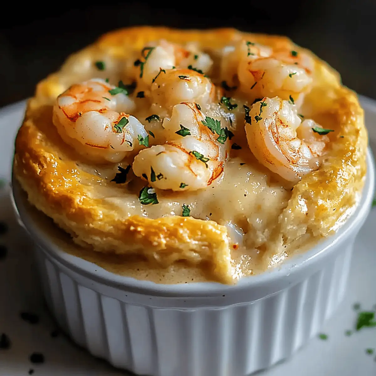 A hint of the ocean wafts through the air as I pull this culinary gem from the oven. My Shrimp & Lobster Cheddar Bay Biscuit Pot Pie isn’t just any comfort food; it’s a warm embrace on a chilly evening, filled with a rich, creamy seafood filling and topped with golden, flaky biscuits. Perfect for a cozy night in or to dazzle your friends at your next gathering, this dish combines the heartiness of pot pie with the luxurious taste of coastal seafood. It’s surprisingly easy to whip up, making it a go-to for those tired of fast food but craving something truly special. Are you ready to transform your kitchen into a seafood haven? Why is this Pot Pie a Must-Try? Comforting Elegance: This Shrimp & Lobster Cheddar Bay Biscuit Pot Pie blends the warmth of a classic pot pie with the sophistication of premium seafood. Quick & Easy: Impress your family or guests without spending hours in the kitchen—this recipe is accessible yet gourmet. Flavorful Delight: Enjoy a creamy filling bursting with succulent shrimp and tender lobster, all elevated by the iconic taste of cheddar bay biscuits. Amazing Versatility: Whether you serve it at a dinner party or enjoy a cozy weeknight dinner, it checks all the boxes. Plus, why not pair it with a refreshing side like Broccoli Cheddar Soup for a complete meal? Shrimp & Lobster Cheddar Bay Biscuit Pot Pie Ingredients For the Filling Unsalted Butter – Adds richness to the filling; margarine can be used for a dairy-free option. Garlic Cloves, Minced – Provides aromatic flavor; use garlic powder if fresh isn’t available. Small Onion, Finely Chopped – Offers sweetness and depth; shallots are a milder substitute. Celery, Diced – Adds crunch and freshness; can be omitted if not available. All-Purpose Flour – Thickens the filling; substitute with gluten-free flour blend if needed. Seafood Stock or Chicken Stock – Acts as the base for the filling; vegetable stock can be used for a vegetarian version. Heavy Cream – Contributes creaminess; full-fat coconut milk works for a dairy-free option. Old Bay Seasoning – Enhances seafood flavor; replace with a mix of paprika and celery salt if unavailable. Salt and Black Pepper – Basic seasoning; adjust according to taste. Shrimp, Peeled and Deveined – Main protein source; crab can be a delightful substitute. Cooked Lobster Meat, Chopped – Adds sweetness and luxury; skip if seafood availability is limited. Fresh Parsley, Chopped – Provides freshness and color; use dried parsley in smaller amounts if fresh is unavailable. For the Biscuit Topping All-Purpose Flour (for Biscuit Topping) – Provides structure to the biscuits; a gluten-free blend can substitute. Baking Powder – Leavens the biscuit; no substitutes necessary. Garlic Powder and Salt – Season the biscuit topping; fresh garlic can enhance flavor if preferred. Cold Butter, Grated – Creates flakiness in the biscuits; use vegan butter for a dairy-free version. Shredded Sharp Cheddar Cheese – Adds flavor and richness; swap for dairy-free cheese alternative if needed. Whole Milk – Moistens the biscuit dough; almond milk or any preferred milk can work for a dairy-free option. Chopped Fresh Chives or Parsley (optional) – An optional garnish for flavor and presentation; skip if not available. With this ingredient lineup, you may discover a newfound love for homemade seafood comfort food that goes beyond fast food! Enjoy crafting this ultimate Shrimp & Lobster Cheddar Bay Biscuit Pot Pie. Step‑by‑Step Instructions for Shrimp & Lobster Cheddar Bay Biscuit Pot Pie Step 1: Preheat Your Oven Begin by preheating your oven to 400°F (200°C). This step is crucial for ensuring a perfectly baked Shrimp & Lobster Cheddar Bay Biscuit Pot Pie with a golden biscuit topping that contrasts beautifully with the creamy filling. While the oven heats, you can start preparing your filling. Step 2: Sauté the Aromatics In a medium saucepan, melt 2 tablespoons of unsalted butter over medium heat. Once the butter is bubbling, add 2 minced garlic cloves, 1 finely chopped small onion, and 1 diced celery stalk. Sauté the mixture for about 5 minutes, stirring occasionally, until the vegetables are soft and fragrant, filling your kitchen with delicious aromas. Step 3: Create the Roux Stir in ¼ cup of all-purpose flour, cooking for an additional minute to create a roux. This will help thicken your pot pie filling. Be sure to stir continuously to prevent burning, and watch for a light golden color that indicates it’s ready for the next step. Step 4: Whisk in the Liquids Gradually whisk in 2 cups of seafood stock and 1 cup of heavy cream. Keep stirring for about 5-7 minutes, until the mixture thickens and becomes creamy. As it simmers, you’ll notice it becoming a rich and luxurious base for your shrimp and lobster filling. Step 5: Season the Filling Once thickened, season your filling with 1 tablespoon of Old Bay seasoning, along with salt and black pepper to taste. Stir well to combine all the flavors. The seasoning enhances the seafood, making this Shrimp & Lobster Cheddar Bay Biscuit Pot Pie a delightful experience for your taste buds. Step 6: Add the Seafood Next, fold in 1 pound of peeled and deveined shrimp, cooking until they turn pink, which should take about 2-3 minutes. Gently stir in 1 cup of chopped cooked lobster meat and ¼ cup of chopped fresh parsley. Once combined, remove the mixture from heat and let it cool for a moment. Step 7: Prepare the Biscuit Topping In a large mixing bowl, combine 2 cups of all-purpose flour, 2 teaspoons of baking powder, ½ teaspoon of garlic powder, and ½ teaspoon of salt. Whisk the dry ingredients together before cutting in ½ cup of cold grated butter until the mixture resembles coarse crumbs. Then, stir in 1 cup of shredded sharp cheddar cheese. Step 8: Form the Biscuit Dough Pour in ¾ cup of whole milk, mixing just until the dough comes together. It’s important not to over-mix; you want a slightly sticky dou