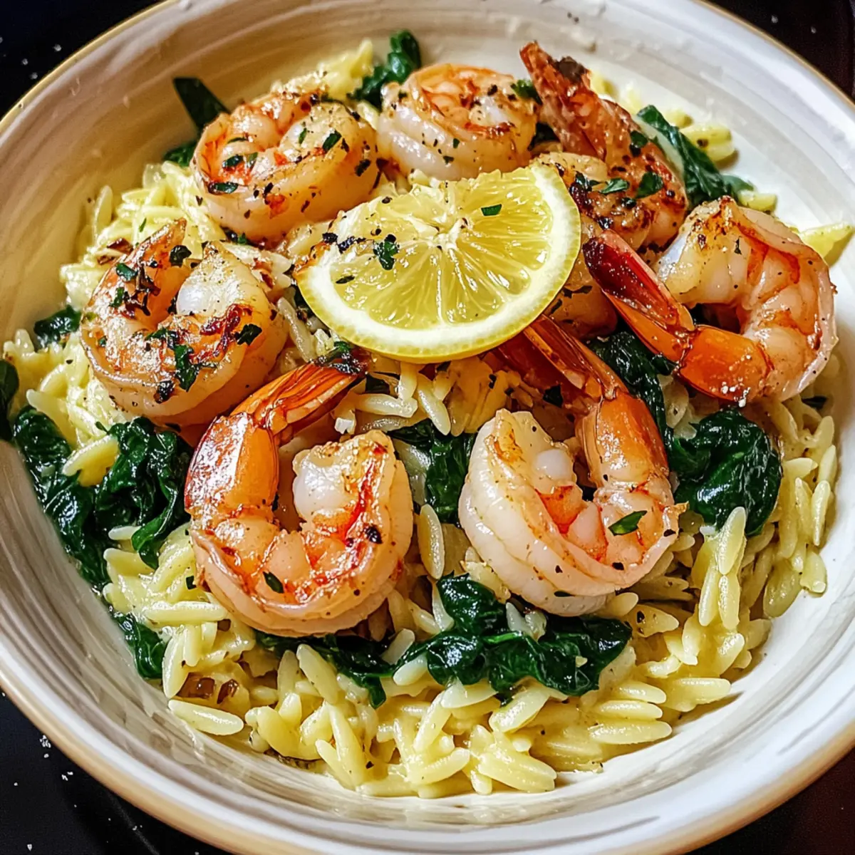 As I stood in my kitchen, the aroma of sizzling garlic filled the air, instantly transporting me to a coastal café where fresh seafood dances hand-in-hand with vibrant flavors. This Easy Shrimp Orzo in Lemon Garlic Sauce is not just a meal; it’s a celebration of simplicity and a fresh twist on dinner that will have your taste buds thanking you. With just 30 minutes of prep and cooking time, this dish is an ideal solution for busy weeknights or when you want to impress guests without all the fuss. Highlights include juicy shrimp and tender orzo, perfectly mingling in a lemony garlic sauce that’s bound to evoke compliments from everyone at the table. Are you ready to elevate your dinner routine with this delightful recipe? Let’s dive in! Why Is This Shrimp Orzo Recipe Perfect? Simplicity at its Finest: This dish comes together in just 30 minutes, making it an ideal choice for busy weeknights or impromptu gatherings. Vibrant Flavor Profiles: The zesty lemon and fragrant garlic create a mouthwatering sauce that elevates the shrimp and orzo to new heights. Versatile Ingredients: You can easily customize this meal with vegetable or protein swaps—try adding bell peppers or using chicken instead of shrimp for a different twist. Crowd-Pleasing Appeal: Whether you’re feeding the family or hosting friends, this recipe guarantees smiles and compliments at the table. Skill Level-Friendly: Perfect for beginners yet satisfying for seasoned cooks, it’s a surefire way to gain confidence in the kitchen. Pair this with a refreshing side salad or some Roasted Garlic Mashed potatoes for a complete experience. Ready to impress? Shrimp Orzo in Lemon Garlic Sauce Ingredients For the Shrimp • 1 pound large shrimp, peeled and deveined – This main protein brings a sweet, delicate flavor; frozen shrimp can work well if thawed properly. For the Pasta • 1 cup orzo pasta – This tiny pasta helps soak up the delicious sauce; feel free to substitute with gluten-free pasta as needed. For the Sauce • 3 tablespoons olive oil, divided – Enhances richness in both the shrimp and sauce; choose extra virgin for the best flavor. • 4 cloves garlic, minced – Adds aromatic depth; sauté until just fragrant to avoid bitterness. • Zest and juice of 2 lemons – Brightens up the dish with fresh, citrus flavor; always opt for fresh lemons if possible. • 1 cup chicken broth – Provides savory depth, balancing the brightness of lemon; vegetable broth works for a vegetarian option. • 1/4 cup white wine (optional) – Introduces a fruity tang to the sauce; replace with additional chicken broth for a non-alcoholic alternative. • 1/4 teaspoon crushed red pepper flakes – Adds a subtle kick; adjust to your desired spice level. • Salt and black pepper to taste – Essential seasonings that enhance overall flavors. For the Greens • 2 cups baby spinach – Adds a nutritious touch and vibrant color; it wilts beautifully into the sauce. For the Finish • 1/4 cup freshly grated Parmesan cheese – Brings umami richness and helps thicken the sauce; omit for a dairy-free version. • Lemon wedges for serving – A fresh squeeze adds the perfect finishing touch to your dish! Get ready for a delightful dining experience with this Shrimp Orzo in Lemon Garlic Sauce that will leave everyone asking for seconds! Step‑by‑Step Instructions for Shrimp Orzo In Lemon Garlic Sauce Step 1: Cook the Orzo Start by bringing a large pot of salted water to a rolling boil. Add 1 cup of orzo pasta and cook according to package instructions until al dente, usually about 7-9 minutes. Stir occasionally to prevent sticking. Once done, drain the orzo in a colander and set it aside, ready to absorb the flavorful sauce later on. Step 2: Sauté the Shrimp In a large skillet, heat 2 tablespoons of olive oil over medium heat. Add 1 pound of peeled and deveined shrimp to the hot oil, cooking for about 2-3 minutes per side. The shrimp should turn a lovely pink color and be opaque when cooked. Once they’re done, remove the shrimp from the skillet and set them aside on a plate to keep warm. Step 3: Sauté the Garlic In the same skillet, drizzle in the remaining tablespoon of olive oil. Add 4 cloves of minced garlic and sauté for 1-2 minutes, stirring frequently until fragrant and lightly golden. Take care not to let the garlic burn, as it can turn bitter. This step is essential for building the delicious base of your Shrimp Orzo in Lemon Garlic Sauce. Step 4: Prepare the Sauce Now, stir in the zest and juice of 2 fresh lemons, along with 1 cup of chicken broth and 1/4 cup of white wine, if using. Scrape the bottom of the skillet with a wooden spoon to deglaze, releasing the flavorful bits stuck to the pan. Bring the mixture to a gentle simmer and season with 1/4 teaspoon of crushed red pepper flakes, salt, and black pepper to your liking. Step 5: Combine Orzo and Spinach Add the cooked orzo and 2 cups of baby spinach to the simmering sauce in the skillet. Stir gently, cooking for about 2-3 minutes until the spinach wilts and everything is combined beautifully. The orzo will soak up the zesty sauce while remaining tender, making this Shrimp Orzo in Lemon Garlic Sauce a delightful dish. Step 6: Return the Shrimp Once the spinach is wilted, return the sautéed shrimp to the skillet. Toss everything together for a couple of minutes on low heat, allowing the flavors to meld and the shrimp to warm through. This final step ensures that the shrimp is perfectly coated in the luscious lemon garlic sauce. Step 7: Add Parmesan and Serve Remove the skillet from heat and sprinkle in 1/4 cup of freshly grated Parmesan cheese if desired, stirring until melted and incorporated. Serve your Shrimp Orzo in Lemon Garlic Sauce immediately, garnished with lemon wedges for an extra burst of flavor. Enjoy this dish warm and watch as everyone delights in its zesty goodness! What to Serve with Easy Shrimp Orzo in Lemon Garlic Sauce As you enjoy this delightful d