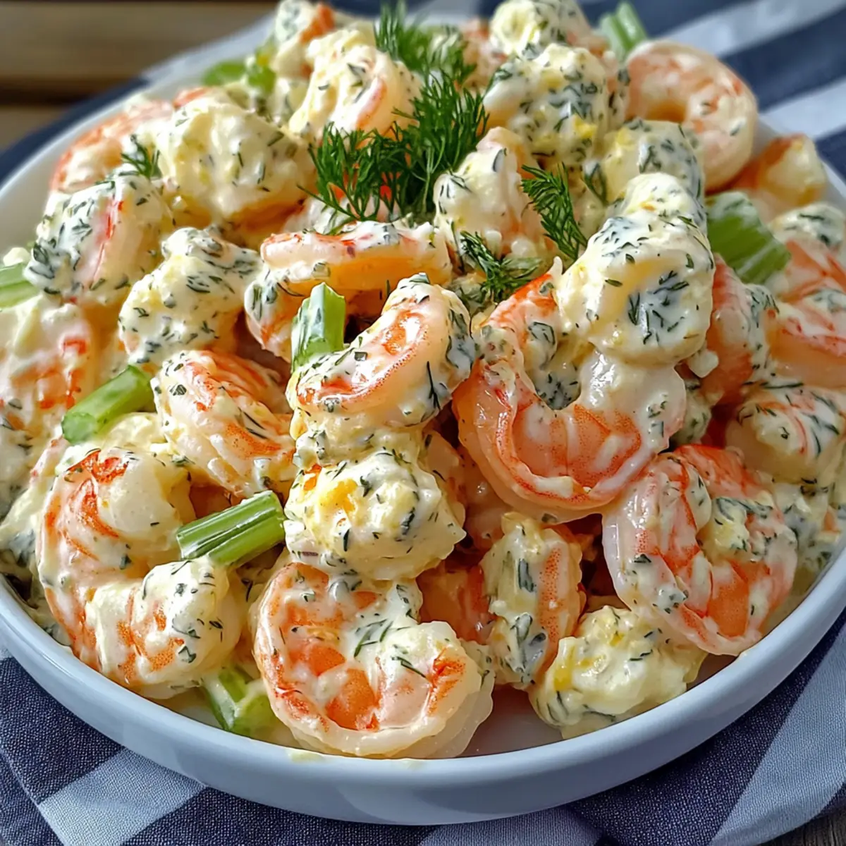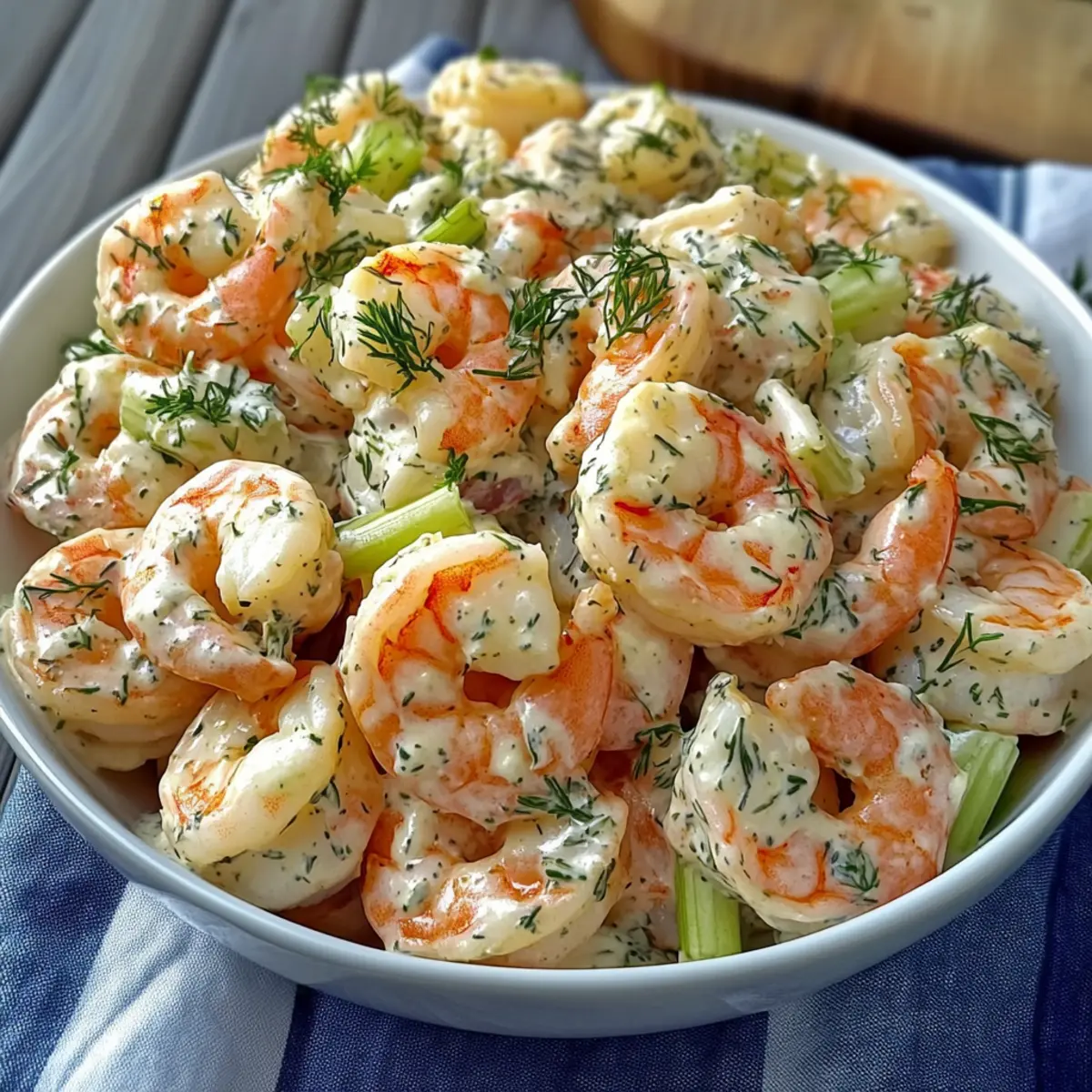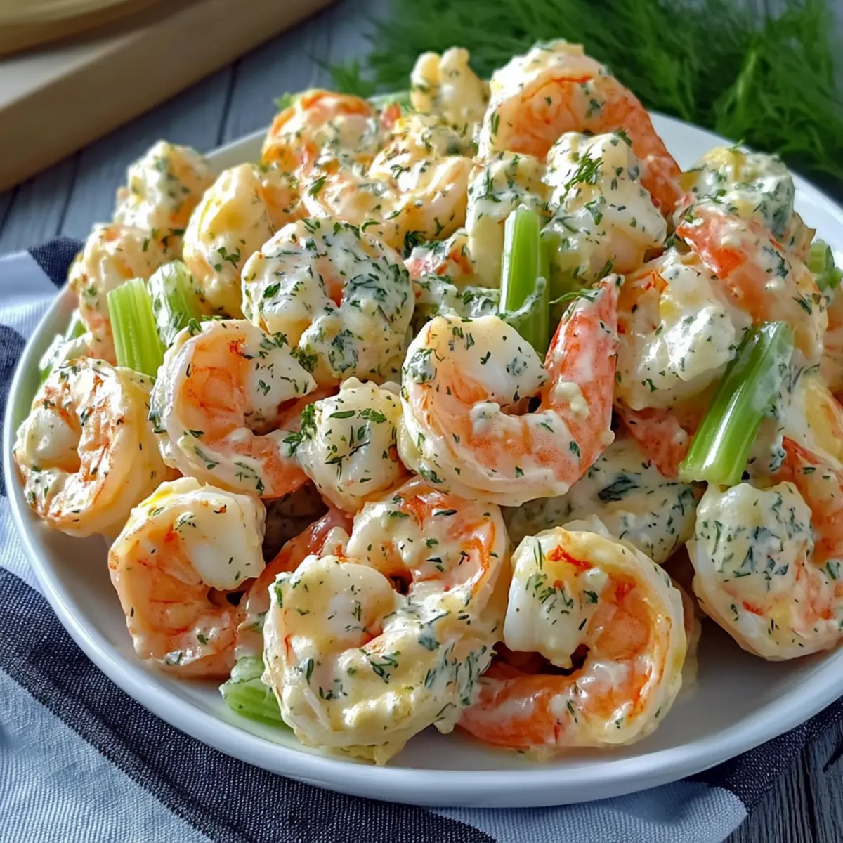 The sun shone brightly as I savored the first bite of my homemade shrimp salad, instantly transported to a blissful summer picnic where the flavors danced like sunlight on the water. This delightful Shrimp Salad is not just any dish; it’s a versatile masterpiece featuring five creative variations that can elevate your culinary game. Whether you crave the classic taste, a creamy shrimp avocado combo, or a zesty spicy mango twist, each option is simple to whip up and perfect for both relaxed lunches and lively gatherings. Plus, it’s gluten-free and packed with healthy ingredients! Ready to dive into a summer dish that’s both refreshing and satisfying? Let’s explore these shrimp salad variations and discover your new favorite! Why is Shrimp Salad a Must-Try? Versatile and Adaptable: This shrimp salad shines with five distinct variations, catering to every taste preference, whether you favor creamy avocado or spicy mango. Fresh and Flavorful: Each recipe bursts with summer freshness, from tender shrimp to a medley of crunchy veggies and zesty herbs that awaken your palate. Quick and Easy: Prepare this dish in no time! It’s perfect for busy weeknights or casual lunches, allowing you to enjoy homemade taste without the fuss. Crowd-Pleasing Appeal: Serving a delightful dish like the Mediterranean Grilled Shrimp Salad can impress your guests at potlucks or BBQs. Health-Conscious Choices: Gluten-free and packed with protein, this shrimp salad is a healthy option for light meals. Don’t forget to try the Shrimp Avocado Salad for an extra nutritious twist! Shrimp Salad Ingredients For the Salad • Shrimp – the star of the dish; use medium to large shrimp for the best texture and flavor. • Celery – provides a satisfying crunch and freshness; no substitutions needed. • Red Onion – offers a sharp flavor; substitute green onion for a milder taste. For the Dressing • Mayonnaise – creates a creamy base; consider substituting with Greek yogurt or part mashed avocado for a healthier Shrimp Salad. • Lemon Juice – adds brightness and acidity; fresh juice is always the best choice. • Dill – enhances flavor with its fresh herb notes; can be replaced with parsley or tarragon if needed. • Salt – essential for seasoning; adjust to taste. • Pepper – gives a kick of flavor; add according to preference. Feel free to mix and match these ingredients to create your perfect dish from the various shrimp salad variations! Step‑by‑Step Instructions for Shrimp Salad Step 1: Poach the Shrimp In a medium saucepan, bring water to a gentle simmer over medium heat. Add the shrimp and cook for 2-3 minutes until they turn pink and opaque, signaling that they are fully cooked. Use a slotted spoon to transfer the shrimp to an ice bath immediately, halting the cooking process and preserving their tender texture. Allow them to chill for about 5 minutes before draining. Step 2: Prepare the Dressing In a mixing bowl, combine the mayonnaise, fresh lemon juice, Dijon mustard, dill, salt, and pepper. Whisk together until smooth and creamy, ensuring each ingredient is well blended and seasonings are evenly distributed. Taste the dressing and adjust the flavors, adding more lemon juice or salt as needed to create a balanced, zesty flavor that complements the shrimp. Step 3: Combine Ingredients Once the shrimp have cooled and are patted dry, chop them into bite-sized pieces and place them in a large mixing bowl. Then, add the diced celery and minced red onion for a refreshing crunch. Pour the prepared dressing over the shrimp and vegetables, gently tossing everything together until the shrimp are coated perfectly. Be careful not to break the shrimp as you mix. Step 4: Chill Before Serving Cover the shrimp salad with plastic wrap or transfer it to an airtight container, then place it in the refrigerator for at least 30 minutes. This chilling time allows the flavors to meld beautifully and enhances the overall taste of the shrimp salad. When ready to serve, check for seasoning one last time, adjusting if necessary for a vibrant, fresh dish. Shrimp Salad Variations & Substitutions Feel free to customize your shrimp salad to suit your taste buds and pantry staples, making it a unique delight every time! Avocado Boost: Add ripe diced avocado for a creamy and nutritious element. The smooth texture contrasts beautifully with crunchy vegetables. Spicy Kick: Mix in sriracha or diced jalapeños for a fiery flavor. This addition elevates your salad, leaving a tantalizing heat that dances on your palate. Mediterranean Twist: Grill the shrimp and incorporate Mediterranean ingredients like olives and feta cheese. The smoky, savory notes will transport you to sunny shores. Butter-Poached Richness: Replace mayonnaise with butter for a luxurious twist. Pair with a cilantro-lime crema for an exquisite depth of flavor that feels indulgent. No-Mayo Freshness: Swap out mayonnaise for a tangy garlic-infused yogurt dressing. It lightens the dish while maintaining that creamy taste many adore. Herb Variations: Experiment with herbs by substituting dill with parsley or tarragon. Each herb brings a fresh profile that transforms the dish dynamically. Protein Alternatives: If shrimp isn’t available, try using grilled chicken or even chickpeas for a delightful change. Each option creates a different flavor profile while remaining satisfying. Zesty Citrus Flair: Add segments of fresh orange or grapefruit for a pop of acidity and sweetness. The bright flavors harmonize with shrimp beautifully, perfect for warm days. For more shrimp inspiration, don’t miss out on my recipe for Mediterranean Grilled Shrimp Salad or a spicy delight with the Coconut Curry Shrimp. Each offers a unique experience for your next meal! How to Store and Freeze Shrimp Salad Fridge: Store the shrimp salad in an airtight container in the refrigerator for up to 1 day. This helps to keep it fresh and flavorful, but try to consume it sooner for the best ta