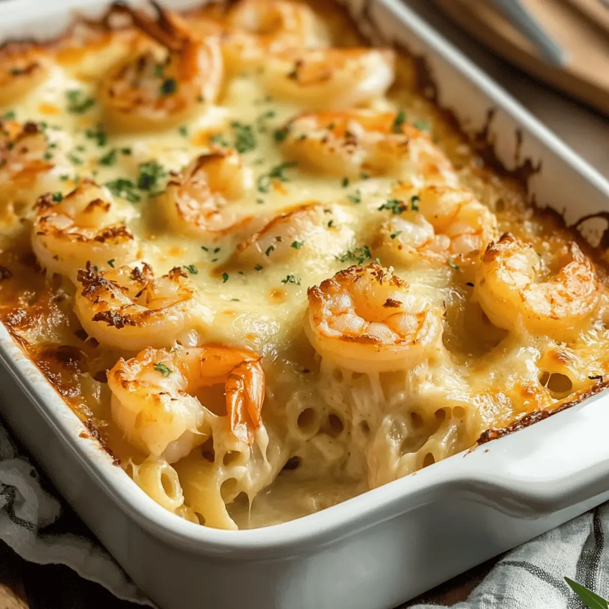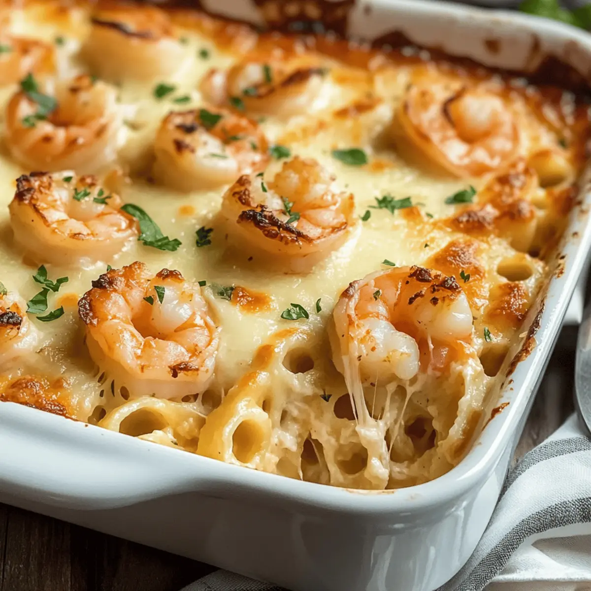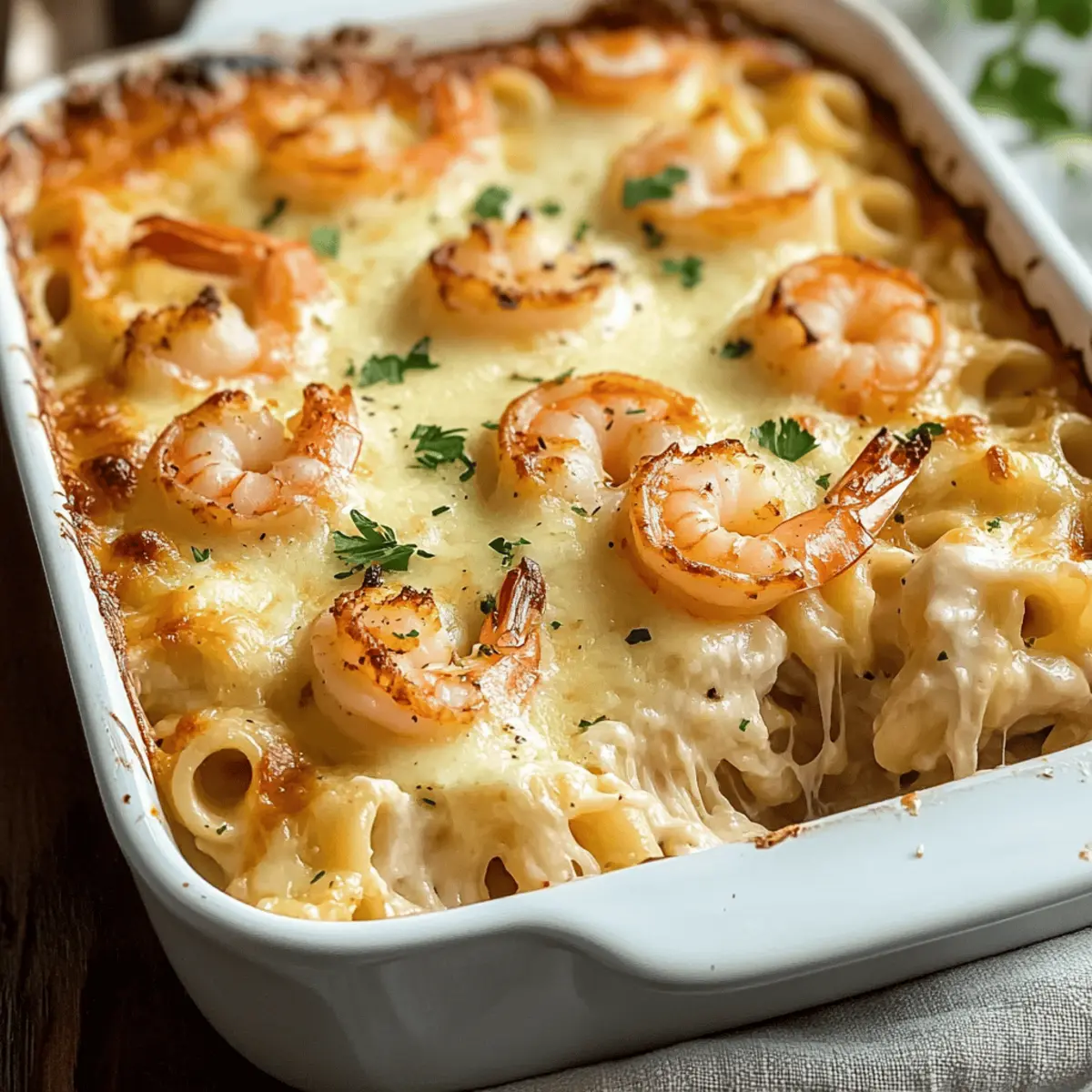 Enjoy this Shrimp Scampi Pasta Bake, a comforting casserole combining shrimp, pasta, and rich flavors for an easy and delicious dinner.