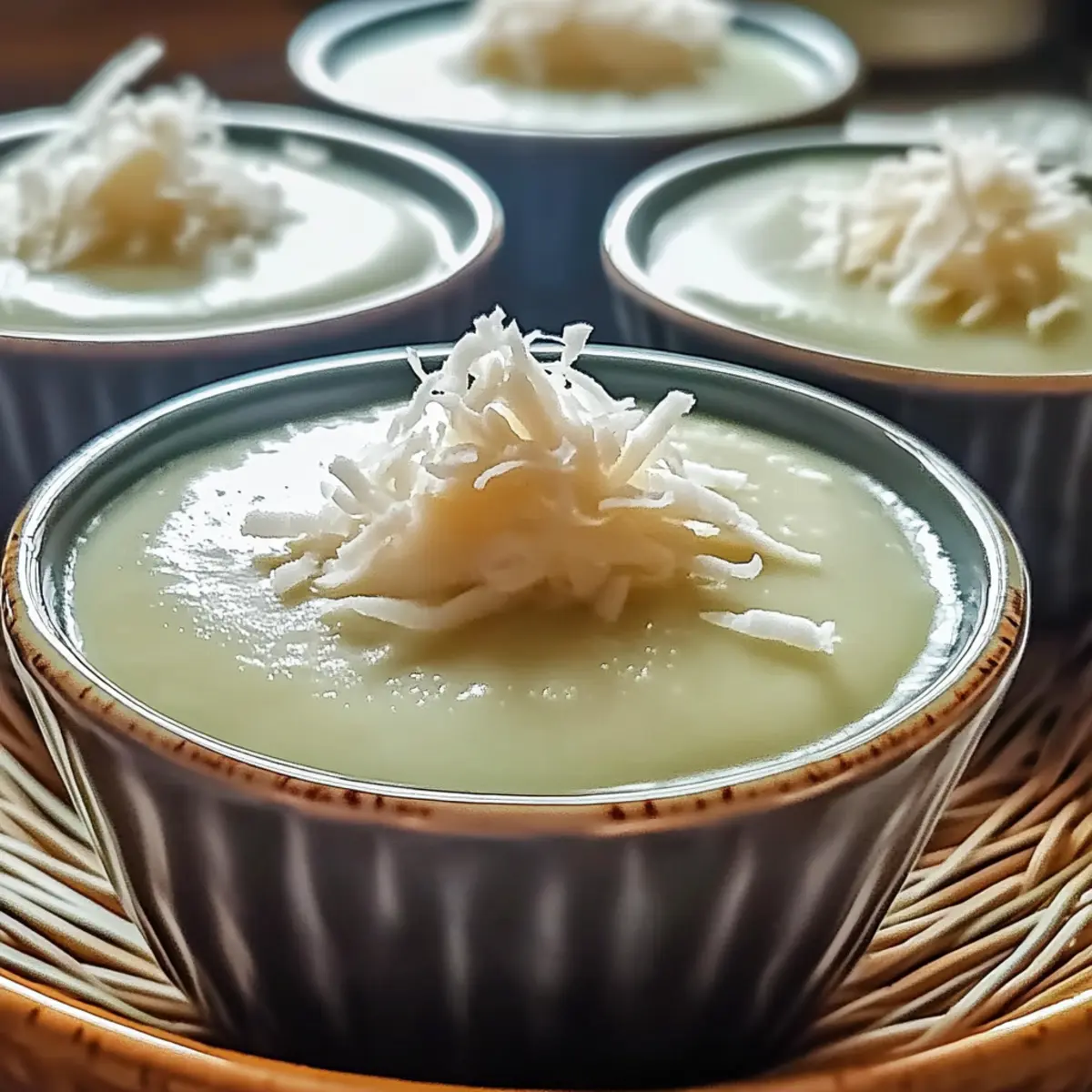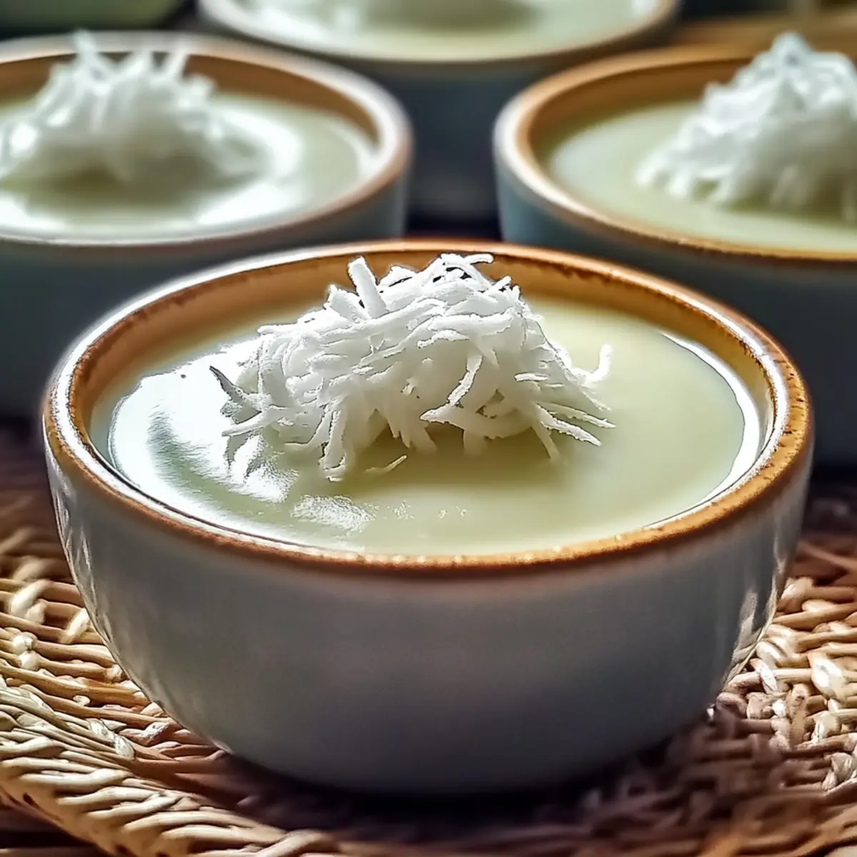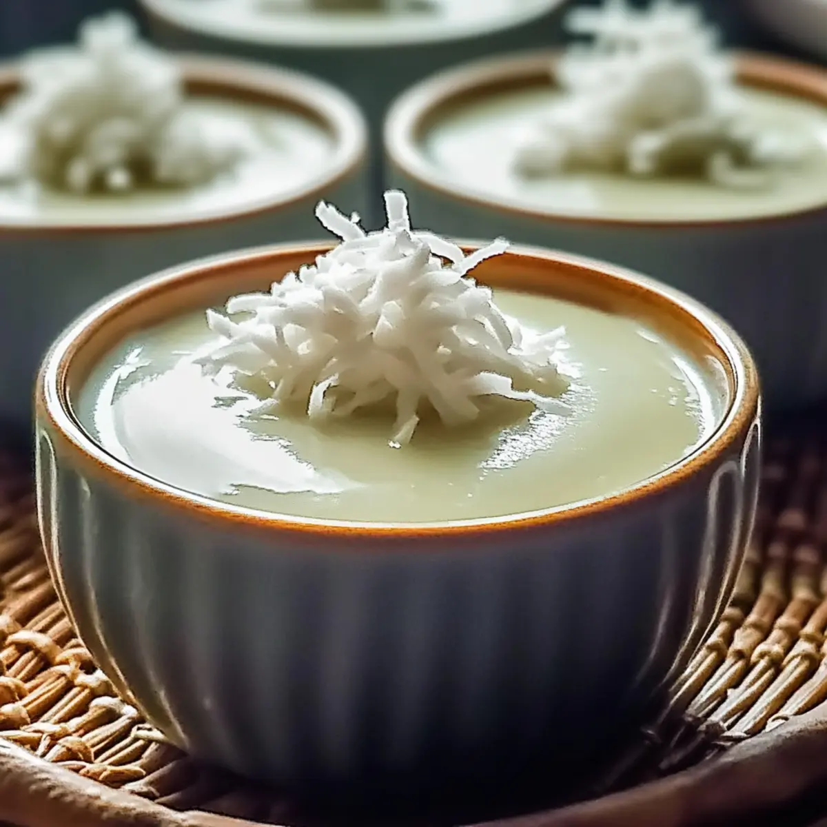The aroma of rich coconut and pandan wafts through the air as I pull my steamer lid off—a moment that feels like a mini victory in my kitchen. Let me introduce you to Guilt-Free Thai Coconut Custard, or Khanom Thuai, a dessert that not only delights the senses but also fits perfectly into your health-conscious lifestyle. Steamed to perfection, this silky Thai coconut custard is gluten-free, vegan-friendly, and incredibly simple to whip up, making it a surefire hit for gatherings or a cozy night in. With its creamy layers and a hint of saltiness from the topping, you’re in for a delightful treat that can easily become a staple in your dessert repertoire. Are you ready to capture the magic of Thailand in your own kitchen? Why Will You Love This Custard? Simplicity at Its Finest: The straightforward method makes preparation a breeze, perfect for home cooks of any skill level. Creamy Delight: Each bite delivers rich, velvety layers that melt in your mouth—an irresistible combination of coconut and pandan. Guilt-Free Indulgence: With gluten-free and vegan-friendly ingredients, this dessert lets you indulge without compromising your health goals. Versatile Topping Options: Feel free to experiment! Add fresh mango, coconut flakes, or nuts for a personalized twist, or even serve it alongside your favorite crispy spring rolls. Crowd-Pleasing Appeal: Whether it’s a family dinner or a festive gathering, this silky Thai coconut custard will have everyone raving. Make-Ahead Convenience: Prepare the bottom layer in advance for added ease, so you can enjoy your time with loved ones without stress. Silky Thai Coconut Custard Ingredients For the Bottom Layer • Rice Flour – Provides structure and base for the custard; can substitute with all-purpose flour for a different texture. • Tapioca Flour – Essential for achieving the perfect chewy texture. • Pandan Juice – Contributes vibrant color and unique flavor; diluted pandan extract can be used if fresh leaves are unavailable. • Palm Sugar – Adds sweetness with a subtle caramel taste; brown sugar or coconut sugar can also work well as alternatives. • Salt – Balances and enhances the sweetness in both layers. For the Top Layer • Coconut Cream – Gives a rich, creamy topping; can be substituted with coconut milk if desired. • Additional Rice Flour – Thickens the coconut cream mixture for that luscious top layer. Embrace the magic of this silky Thai coconut custard with these straightforward ingredients that promise a delightful dessert experience! Step‑by‑Step Instructions for Silky Thai Coconut Custard Step 1: Prepare Cups Begin by greasing 12 small ceramic cups or mini muffin pans thoroughly with neutral oil, ensuring an easy release after steaming. This step is crucial to prevent sticking, so be generous with the oil. Set the cups aside and prepare your steamer by filling it with water, bringing it to a gentle boil. Step 2: Mix Bottom Layer In a mixing bowl, combine rice flour, tapioca flour, pandan juice, palm sugar, and salt. Whisk the ingredients together for 2-3 minutes until you achieve a smooth and homogeneous mixture. The vibrant green color of the pandan juice will begin to shine, indicating it’s ready for steaming. Step 3: Steam Bottom Layer Carefully fill each prepared cup halfway with the bottom layer mixture. Place the cups in the steamer, ensuring they are not touching, and steam for 5-6 minutes. You’ll know it’s ready when the custard slightly jiggles in the center but appears set on the sides—this is the perfect foundation for your silky Thai coconut custard. Step 4: Combine Top Layer In a clean bowl, whisk together coconut cream, additional rice flour, and a pinch of salt until the mixture is creamy and fully combined. This layer will add a luscious finish to your custard. Keep whisking until there are no lumps and the consistency is smooth and velvety. Step 5: Add Top Layer Once the bottom layer has set, gently pour the coconut cream mixture over it, filling the cups to the brim. Place the cups back in the steamer and steam for an additional 5-7 minutes. The top layer will develop a glossy sheen and should be firm to the touch—this indicates the silky Thai coconut custard is nearing completion. Step 6: Cool and Serve After steaming, carefully remove the cups from the steamer and let them cool at room temperature for about 10 minutes. Once cooled, you can enjoy them warm or refrigerate for a refreshing dessert. If serving chilled, let them sit in the fridge for at least an hour to enhance the flavors of the silky Thai coconut custard. Expert Tips for Silky Thai Coconut Custard Steaming Technique: Ensure your steamer water is gently boiling to prevent sogginess; avoid water touching the custard cups. Fresh Ingredients: Use fresh pandan leaves for the best flavor and vibrant green color; substitute with diluted pandan extract if necessary. Check Doneness: Look for a slight jiggle in the center of the custard while steaming; if needed, add 1-2 minutes more until set. Flour Tips: Using a fine rice flour will give you the smoothest texture in your silky Thai coconut custard, avoiding graininess. Make-Ahead Option: Prepare the bottom layer the day before and store it in the fridge; simply mix and steam the top layer before serving. Serving Suggestions: For added flavor and texture, consider topping the custard with mango slices, toasted coconut flakes, or chopped nuts. Silky Thai Coconut Custard Variations Feel free to elevate your custard experience with these fun and delicious variations! Dairy-Free: Substitute coconut cream with almond or cashew cream for a nutty twist. The flavors will blend beautifully, adding an extra layer of richness that pairs well with the pandan essence. Sweetness Adjustments: Swap palm sugar for agave syrup or maple syrup for a lighter sweetness. These alternatives will keep your custard guilt-free while still delighting your taste buds! Flavor Boost: Add a teaspoon of 