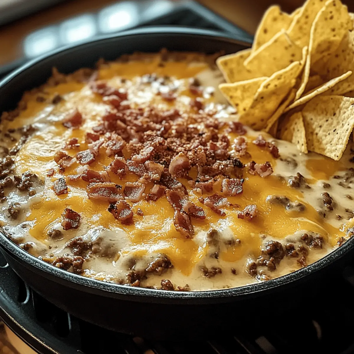Serving Tips: Serve warm with tortilla chips, crackers, or fresh veggies to make every bite of your Sizzling Bacon Cheeseburger Queso Dip delightful!