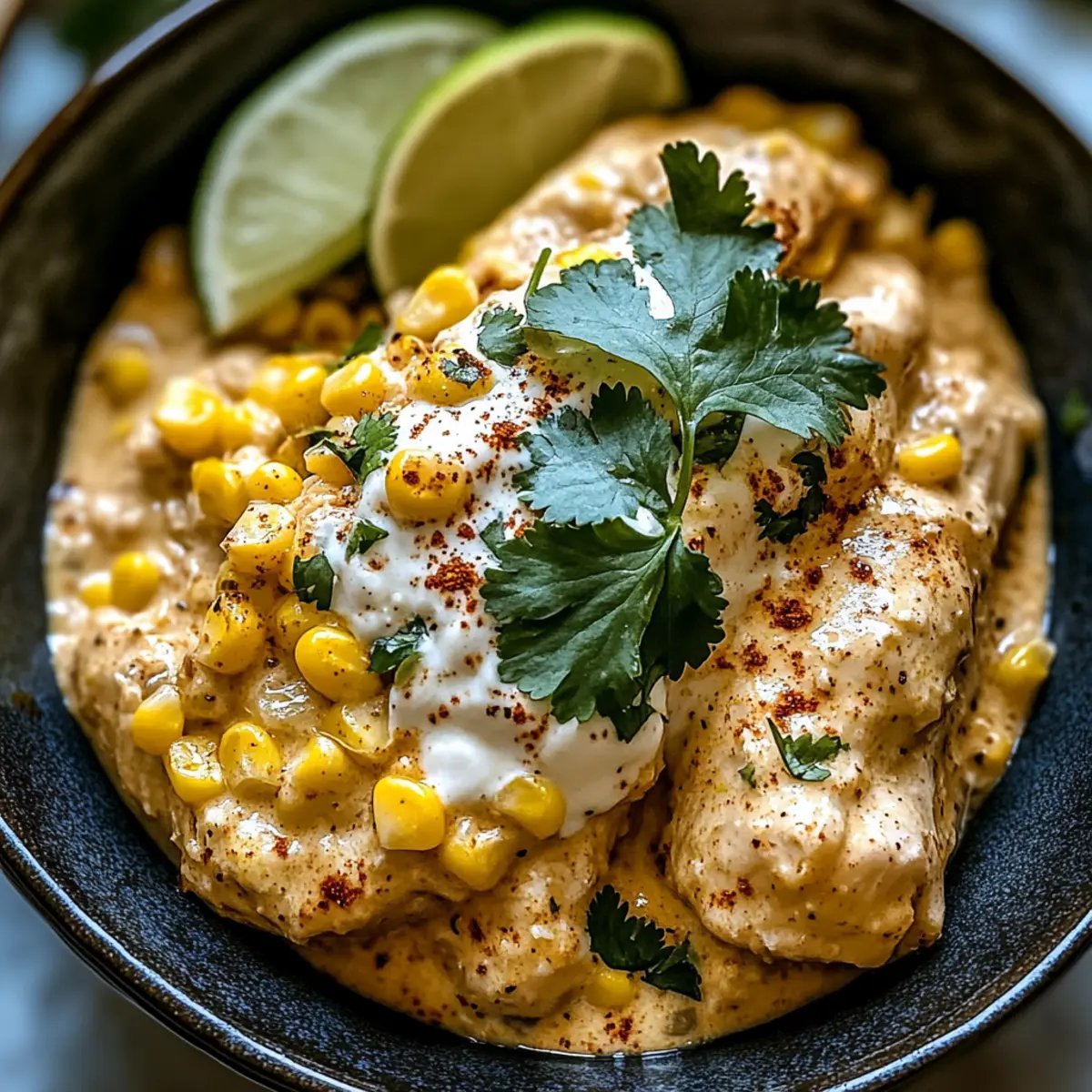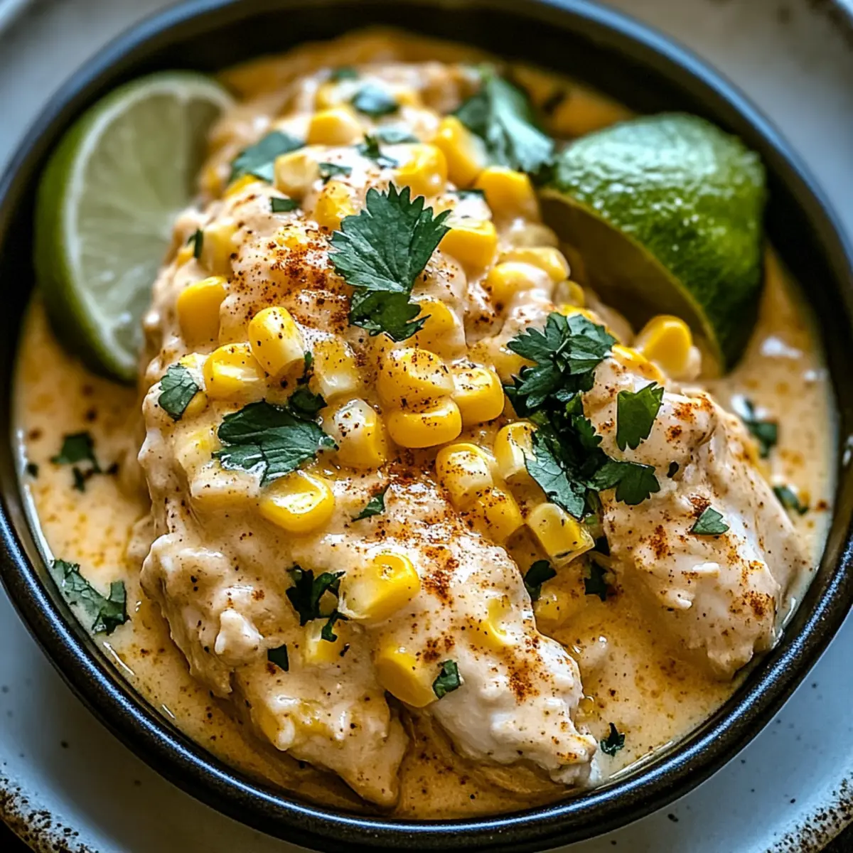 As I watched the sunset paint the sky in hues of orange and pink, the scent of Slow Cooker Street Corn Chicken wafted through my kitchen, instantly transporting me to vibrant street markets in Mexico. This creamy, comforting delight combines tender chicken with a luscious corn sauce, perfect for those evenings when you crave something hearty yet low-effort. With just 10 minutes of prep time, this gluten-free dish is not only a lifesaver for busy weeknights but also the ultimate crowd-pleaser for gatherings. Plus, its customizable nature allows you to explore exciting variations, from spicy buffalo chicken to satisfying vegan options. Are you ready to savor a bowl of pure bliss? Why Is This Recipe a Must-Try? Irresistible Flavor: The rich, creamy corn sauce blends seamlessly with tender chicken, offering a taste that’s reminiscent of vibrant street food markets. Time-Saving: Just 10 minutes of prep means you can spend more time enjoying your meal and less time in the kitchen! Customizable Options: Whether you want buffalo zest or a vegan twist, this recipe is versatile enough to adapt to any palate. Family-Friendly: With gluten-free ingredients and a comforting flavor, it’s sure to please even the pickiest eaters. Crowd-Pleasing Dish: Ideal for gatherings, this Slow Cooker Street Corn Chicken can easily be doubled or transformed into delicious tacos or casseroles. Pair it with a fresh black bean salad or cilantro-lime rice for a complete meal experience. Slow Cooker Street Corn Chicken Ingredients For the Chicken Boneless Chicken Breasts/Thighs – Choose thighs for richer flavor or breasts for a leaner option; both will tenderize beautifully in the slow cooker. For the Corn Sauce Corn – Fresh grilled corn adds a gourmet touch, while frozen or canned corn offers convenience without sacrificing flavor. Cream Cheese – Provides a creamy richness; if you’re looking for a dairy-free option, try Tofutti or Kite Hill products. Cotija Cheese – Adds a delightful salty, tangy note; feta is a great substitute if Cotija isn’t available. Lime Juice – Brightens the dish; use freshly squeezed for the best flavor. Garlic – Essential for depth of flavor; fresh minced garlic enhances taste, but jarred is fine in a pinch. Chili Powder – Adds warmth; spice it up with chipotle or cayenne for more heat. Smoked Paprika – Imparts a smoky flavor reminiscent of grilled street corn. Onion Powder – Elevates the overall flavor profile subtly. Fresh Cilantro (optional) – A vibrant fresh topping that can be omitted if not preferred. This ingredient list is your gateway to creating unforgettable Slow Cooker Street Corn Chicken, radiating comforting flavors right from your kitchen! Step‑by‑Step Instructions for Slow Cooker Street Corn Chicken Step 1: Prepare the Chicken Start by placing your boneless chicken breasts or thighs evenly in the bottom of the slow cooker. This will create a flavorful base for your Slow Cooker Street Corn Chicken. Make sure to line them in a single layer, as this helps them cook evenly. Step 2: Add the Corn and Seasonings Next, layer the corn over the chicken, followed by the softened cream cheese and crumbled cotija cheese. Drizzle fresh lime juice, and sprinkle minced garlic, chili powder, smoked paprika, and onion powder on top. Do not stir just yet; this layering ensures each ingredient infuses its flavor properly. Step 3: Set the Cooker Cover the slow cooker with its lid and set it to LOW for 4-5 hours or HIGH for 2-3 hours. You’ll know it’s ready when the chicken is tender, juicy, and easily shreds apart with a fork. Step 4: Shred the Chicken Once the cooking time is up, remove the lid and use two forks to shred the chicken directly in the pot. This not only combines everything nicely but also allows the creamy corn sauce to envelop the chicken, enhancing the delicious flavors of your Slow Cooker Street Corn Chicken. Step 5: Adjust Consistency If you prefer a creamier sauce, consider adding a bit of chicken broth to achieve your desired consistency. Stir well to incorporate all ingredients, and let it cook uncovered on HIGH for an additional 15 minutes if thickening is needed, ensuring a perfect finish. Step 6: Serve and Garnish Finally, serve your Slow Cooker Street Corn Chicken warm, garnished with fresh cilantro for a pop of color and flavor. Enjoy it on its own, or pair it with cilantro-lime rice or your favorite tortillas for a delightful meal. How to Store and Freeze Slow Cooker Street Corn Chicken Fridge: Store leftovers in an airtight container for up to 3 days to keep your Slow Cooker Street Corn Chicken fresh. Freezer: Freeze in portions for up to 3 months. Be sure to use freezer-safe containers to avoid freezer burn. Reheating: When ready to enjoy again, reheat gently on the stovetop with a splash of broth to restore creaminess and flavor. Serving Size: Consider thawing overnight in the fridge for best results, especially if preparing for a meal. Expert Tips for Slow Cooker Street Corn Chicken Layer Wisely: Avoid stirring before cooking. Let the cream cheese melt and integrate smoothly for a velvety sauce. Frozen Chicken Tip: If using frozen chicken, extend cooking time by an hour, ensuring it’s safe and tender. Thicker Sauce: If the sauce is too thin, mix 1 tablespoon of cornstarch with 2 tablespoons of cold water, then stir in and cook uncovered on HIGH for an additional 15 minutes. Fresh Ingredients Matter: For the best flavor, always opt for fresh lime juice and garlic; they elevate your Slow Cooker Street Corn Chicken significantly. Customize for Taste: Don’t hesitate to explore various spices or cheese substitutions; make this dish your own by adjusting flavors to suit your family’s preferences. Slow Cooker Street Corn Chicken Variations Feel free to play with this recipe and make it your own, exploring delightful twists that will tantalize your taste buds! Buffalo Chicken: Replace chili powder with buffalo sauce for a spicy kick. S