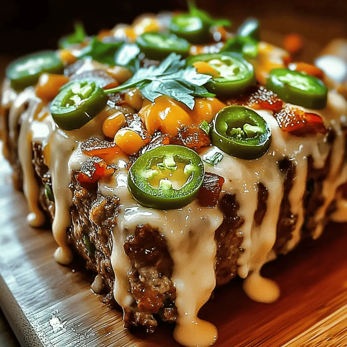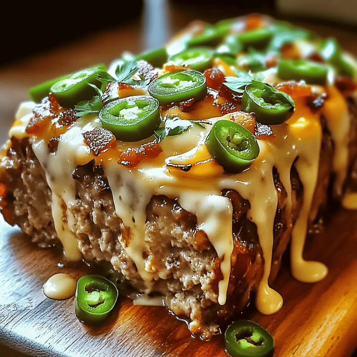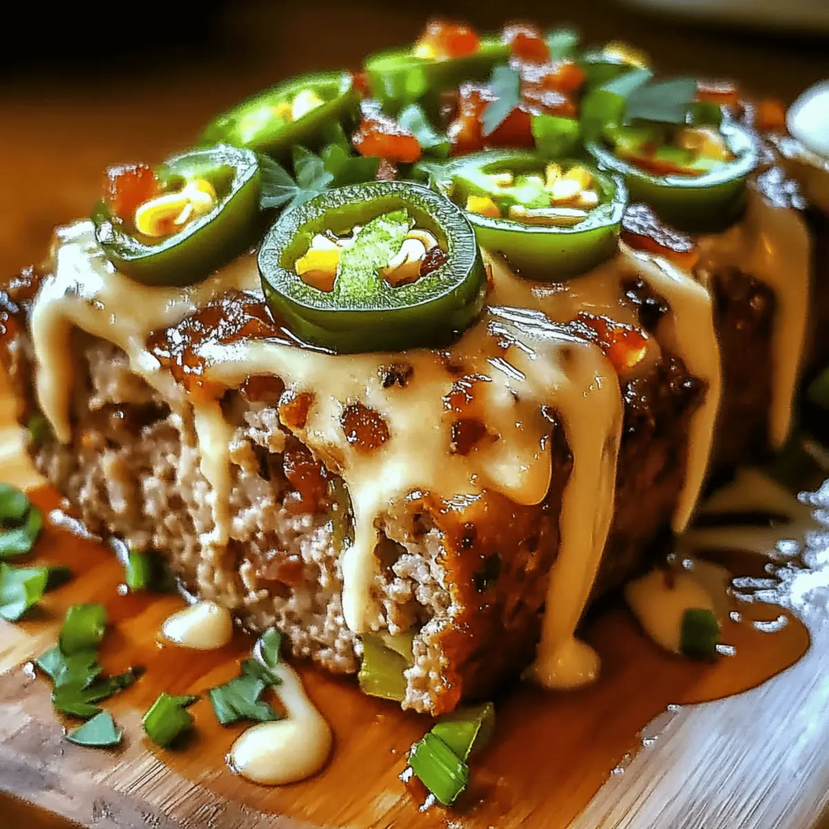 The aroma that fills my kitchen as I pull this Smoky Jalapeño Popper Meatloaf out of the oven is simply irresistible. This dish transforms the classic comfort of meatloaf into a lively explosion of flavors, featuring the delightful kick of jalapeños and a creamy cheese blend that tempts even the pickiest eaters. It’s not just a meal; it’s a culinary celebration that brings comfort food into the realm of zest and excitement. Plus, the recipe comes together quickly, making it a fantastic go-to for weeknight dinners or meal prep. And with the option to easily swap ingredients for dietary preferences, there’s something here for everyone. Are you ready to dive into a flavorful twist on a beloved classic? Let’s get started! Why is This Meatloaf So Unique? Bold, Flavorful Twist: This recipe elevates classic meatloaf with the zesty kick of jalapeños and creamy cheese, turning an old favorite into a modern delight. Quick Preparation: You’ll love how easy it is to whip up this dish, making it the perfect choice for busy weeknights or meal prep sessions. Customizable Options: Whether you prefer turkey, or ground beef, or want to add veggies, this meatloaf adapts beautifully to suit your tastes and dietary needs. Impressive Crowd-Pleaser: Serve this at your next gathering and watch your friends rave about it—it’s comfort food with a bold flair! Aromatic Bliss: The enticing smell wafting through your kitchen as it bakes will have everyone lining up for seconds. Enjoy the combination of spice and creaminess that truly makes this meatloaf a standout! Smoky Jalapeño Popper Meatloaf Ingredients • Dive into the delightful flavors of this dish with the creamy, spicy twist it brings to your table! For the Meatloaf Mixture Lean Ground Beef – Main protein source offering heartiness; swap for ground turkey for a lighter option. Breadcrumbs – Binds the meatloaf together; use gluten-free breadcrumbs for a gluten-free version. Egg (beaten) – Acts as a binder, ensuring everything holds together nicely. Small Onion (finely chopped) – Boosts flavor and moisture; shallots work well for a milder option. Jalapeños (finely diced) – Adds the spicy zing; remove seeds for less heat or use pickled jalapeños for a twist. Cream Cheese (softened) – Infuses creaminess that balances the spice; Greek yogurt can be a lighter alternative. Shredded Cheddar Cheese – Melts beautifully throughout, enhancing the dish; consider dairy-free cheese for a vegan option. Cooked Bacon (crumbled) – Introduces a smoky crunch; turkey bacon is a healthier option if preferred. Worcestershire Sauce – Elevates the depth of flavor; ensure it’s gluten-free if needed. Smoked Paprika – Essential for giving that smoky flavor profile to the meatloaf. Salt and Pepper (to taste) – Classic seasonings to bring out all the flavors. For Serving Ranch Dressing (warmed for drizzling) – Creates a creamy contrast; it enhances the deliciousness of each slice of meatloaf. Step‑by‑Step Instructions for Smoky Jalapeño Popper Meatloaf Step 1: Preheat the Oven Begin by preheating your oven to 350°F (175°C). This initial step ensures that the oven is at the perfect temperature to bake your Smoky Jalapeño Popper Meatloaf evenly. While the oven warms up, you can prepare your meatloaf mixture, saving time and making the most of your cooking experience. Step 2: Combine the Meatloaf Ingredients In a large mixing bowl, combine the lean ground beef, breadcrumbs, beaten egg, finely chopped onion, and diced jalapeños. With clean hands or a spatula, gently mix until everything is well incorporated. You want to ensure the flavors meld together without overworking the meat, which keeps your meatloaf tender and moist. Step 3: Season and Mix Next, add the Worcestershire sauce, smoked paprika, salt, and pepper to the mixture. Stir gently until all the seasonings are evenly distributed throughout the Smoky Jalapeño Popper Meatloaf blend. The Worcestershire sauce adds depth, while the smoked paprika gives it a rich color. Trust your instincts—it should smell delightful! Step 4: Fold in the Creamy Ingredients Carefully fold in the softened cream cheese, shredded cheddar cheese, and crumbled bacon until they are evenly blended into the meat mixture. This step introduces a creamy, savory richness that beautifully complements the spicy jalapeños. Take care not to over-mix, keeping the texture light and fluffy. Step 5: Shape the Meatloaf Transfer the meat mixture onto a greased loaf pan or a lined baking sheet. With your hands, shape the mixture into a loaf, smoothing out the top and sides. Ensure it’s compact but not pressed too firmly, as you want that tender texture in your Smoky Jalapeño Popper Meatloaf. Step 6: Bake to Perfection Place the shaped meatloaf in the preheated oven and bake for 45–50 minutes. You’ll know it’s done when the top is golden and the internal temperature reaches 160°F (71°C) on a meat thermometer. The mouthwatering aroma will fill your kitchen, promising a comforting and delicious meal. Step 7: Allow to Rest Once out of the oven, let your Smoky Jalapeño Popper Meatloaf rest for 5–10 minutes before slicing. This crucial step allows the juices to redistribute, ensuring each slice is juicy and full of flavor. Trust me; it’s worth the wait for that perfect bite. Step 8: Serve with Ranch Dressing To elevate your meal, drizzle warmed ranch dressing over each slice just before serving. This creamy addition balances the spice of the jalapeños and adds an extra layer of flavor to your delicious Smoky Jalapeño Popper Meatloaf. Enjoy! Expert Tips for Smoky Jalapeño Popper Meatloaf Rest for Juiciness: Let the meatloaf rest after baking to allow juices to redistribute throughout, ensuring every slice is flavorful and moist. Don’t Overmix: Be gentle when combining ingredients; overmixing can lead to a dense meatloaf. Treat your Smoky Jalapeño Popper Meatloaf mixture with care for perfect texture! Cus