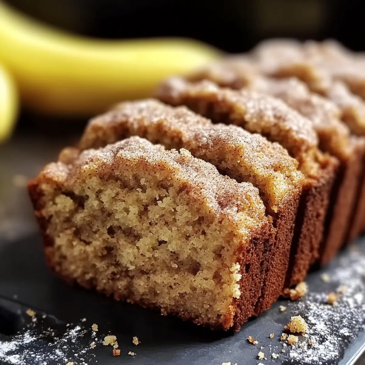 As I stood in my kitchen, the scent of cinnamon and sugar enveloped me like a warm hug, instantly transporting me to my childhood with memories of baking cookies on snowy afternoons. That same feeling of joy inspired me to whip up a loaf of Snickerdoodle Banana Bread, where the familiar flavors of a classic snickerdoodle meet the moistness of overripe bananas. This cozy recipe is perfect for breakfast, an afternoon snack, or even as a sweet dessert. Plus, it’s incredibly easy to customize with your favorite add-ins, whether you prefer nuts or a handful of chocolate chips. With every slice, you’ll experience a delicious burst of nostalgia, making it impossible to resist! Are you curious to find out how to make this delectable treat? Let’s dive in! Why is Snickerdoodle Banana Bread a Must-Try? Irresistible flavor: With the delightful combo of cinnamon and sugar, this recipe captures the essence of both snickerdoodle cookies and banana bread. Effortless preparation: Perfect for busy days, this bread comes together quickly, making it a great choice for beginners. Customizable options: Add in your choice of nuts or chocolate chips to make it your own. Vegetarian-friendly: This loaf caters to all diets with its wholesome ingredients. Serve warm with a pat of butter or a hot cup of tea, just like my Banana Oatmeal Cookies for the ultimate cozy experience! Snickerdoodle Banana Bread Ingredients For the Batter Ripe Bananas – Choose bananas with brown spots for maximum sweetness and moisture. All-Purpose Flour – Provides structure; can substitute half for whole wheat for added fiber. Granulated Sugar – Sweetens the bread; honey or maple syrup can be used for a lighter option. Brown Sugar – Adds depth of flavor and moisture to the loaf. Baking Soda – A leavening agent that helps the bread rise and stay fluffy. Salt – Balances the sweetness and enhances flavors throughout. Ground Cinnamon – The star of this recipe, providing warm and cozy notes. Large Eggs – Adds richness; for a vegan option, use a flax egg instead. Butter – Contributes to moisture and flavor; can swap for a plant-based alternative. Milk – Moisture enhancer; non-dairy options like almond or oat milk work well. For the Topping Sugar for Topping – An optional sprinkling of sugar that creates a delightful crunchy crust. Indulge in this Snickerdoodle Banana Bread and let its delightful aroma whisk you away to comforting moments shared around the kitchen! Step‑by‑Step Instructions for Snickerdoodle Banana Bread Step 1: Preheat the Oven Begin by preheating your oven to 350°F (175°C). This crucial step ensures that the Snickerdoodle Banana Bread bakes evenly. While the oven heats, gather all your ingredients and equipment, including a mixing bowl, a loaf pan, and a whisk for easy preparation. Step 2: Mash the Bananas In a large mixing bowl, take your ripe bananas and use a fork or potato masher to mash them until they are mostly smooth. This step enhances the natural sweetness and moisture of the bread. Aim for a creamy texture with some small lumps remaining, typically taking about 2-3 minutes. Step 3: Mix Wet Ingredients In a separate bowl, whisk together melted butter, large eggs, and milk until well combined. Once mixed, gently fold this mixture into the mashed bananas, ensuring everything blends beautifully. This combination should be slightly warm from the melted butter, enriching the overall flavor of your Snickerdoodle Banana Bread. Step 4: Combine Dry Ingredients In another bowl, whisk together the all-purpose flour, baking soda, salt, ground cinnamon, granulated sugar, and brown sugar. This mixture of dry ingredients creates the structure and flavor profile needed for the perfect loaf. Ensure everything is fully combined and free of lumps, typically taking about 2 minutes. Step 5: Incorporate Dry Into Wet Gently fold the dry ingredients into the wet mixture until just combined. Be careful not to overmix; a few flour streaks are acceptable. This technique keeps your Snickerdoodle Banana Bread soft and tender. At this point, the batter will come together, forming a thick and slightly lumpy texture. Step 6: Prepare the Loaf Pan Grease a standard loaf pan with butter or non-stick spray to prevent sticking. Pour the batter into the prepared pan, smoothing the top with a spatula for an even appearance. Ensure the batter fills the pan only about three-quarters full to allow for rising during baking. Step 7: Add Topping If desired, mix together a small amount of granulated sugar and cinnamon in a bowl. Sprinkle this mixture generously over the top of the batter for an added crunch and sweetness. This topping enhances the snickerdoodle flavor, making your Snickerdoodle Banana Bread even more delightful. Step 8: Bake Carefully place the loaf pan in the preheated oven and bake for 50 to 60 minutes. Check for doneness by inserting a toothpick into the center; it should come out clean or with a few moist crumbs. Keep an eye on it near the end of the baking time, as ovens can vary. Step 9: Cool & Serve Once baked, remove the Snickerdoodle Banana Bread from the oven and let it cool in the pan for about 10 minutes. After that, gently transfer the loaf to a wire rack to cool completely. This cooling step ensures that the flavors settle, making for a beautifully sliced loaf ready to enjoy! Snickerdoodle Banana Bread Variations Feel free to let your creativity shine and customize this delightful banana bread to match your taste and dietary preferences! Nuts: Fold in chopped walnuts or pecans for added crunch and a nutty flavor. They not only enhance texture but also complement the sweet bananas beautifully. Chocolate Chips: Sprinkle in semi-sweet or dark chocolate chips for a decadent treat. The melty chocolate against the warm bread is an irresistible combination! Dairy-Free: Substitute the butter with coconut oil and use almond or oat milk to make a completely dairy-free version. This swap keeps the bread moist w