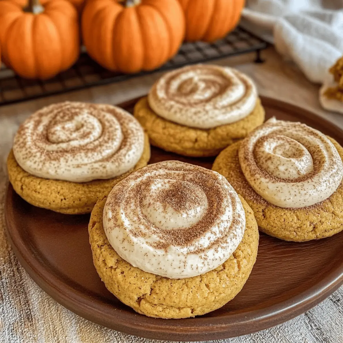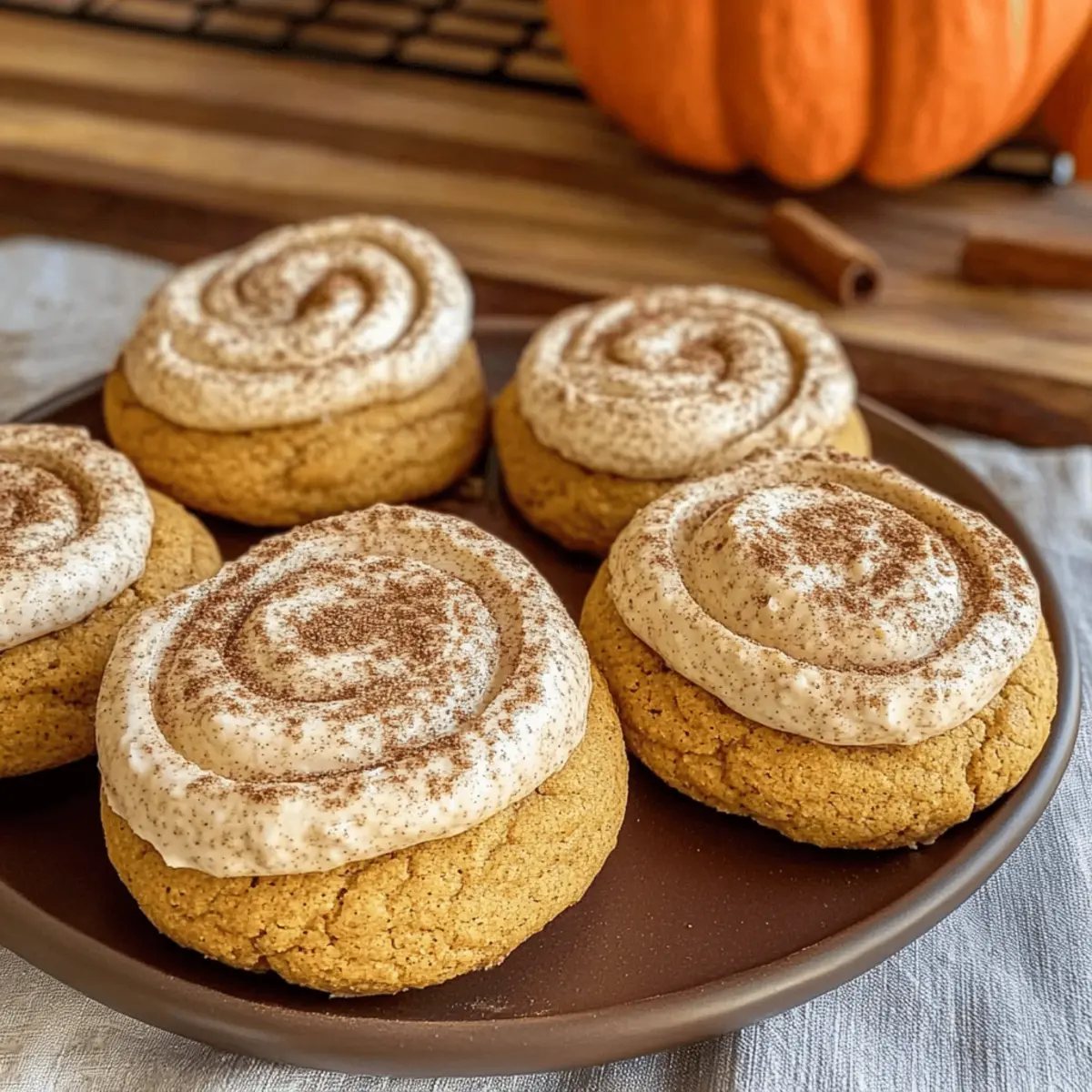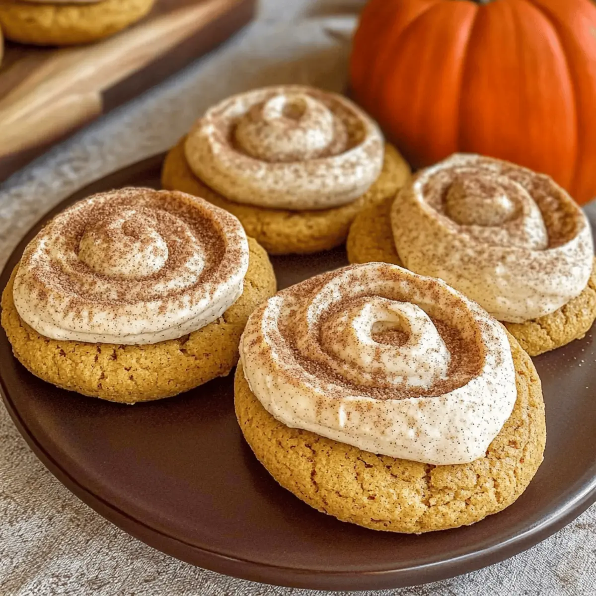 As the leaves start to turn and the air crispens, there’s nothing more comforting than a warm cookie fresh from the oven. That’s where my Soft Pumpkin Cookies with Cinnamon Frosting come into play, enveloping your kitchen in the sweet, inviting scent of fall flavors. Designed to be quick and easy, these vegan delights are perfect for anyone balancing a busy life while still craving that homemade touch. Plus, they’re adaptable, meaning you can opt for gluten-free flour without compromising on taste or texture. So, whether you’re entertaining friends or indulging during a cozy night in, these cookies promise to be a hit! Are you ready to scoop your way into seasonal bliss? Why Are These Cookies a Must-Try? Deliciously Soft: These Soft Pumpkin Cookies with Cinnamon Frosting boast a cake-like texture that’s irresistible, making every bite a gentle hug of comfort during chilly days. Effortless Preparation: Enjoy a fuss-free baking experience! Quick to whip up and needing only basic ingredients, even novice bakers can shine here. Versatile Indulgence: With gluten-free options available, these cookies cater to various dietary needs without sacrificing flavor. Why not try adding your own twist with chocolate chips or nuts? Perfect for Fall Gatherings: Whether it’s a dinner party or a cozy night in, these cookies are the ideal sweet treat to share, leaving everyone craving more. Tempting Aroma: The smell of baking pumpkin cookies adds warmth to any home, setting the perfect autumn mood while making your kitchen feel like a bakery. With their rich taste and easy customization, these cookies are sure to become a seasonal favorite. Don’t forget to check out our Cinnamon Roll Sugar and Cookies Cream Ice recipes for more delightful treats! Soft Pumpkin Cookies Ingredients Indulge in the heartwarming essence of fall with these luscious cookies! For the Cookies Pumpkin Puree – Adds natural moisture and sweetness; canned or homemade works beautifully. Flour – Provides structure; swap with a gluten-free blend if needed. Sugar – Sweetens the cookies; consider using coconut sugar for a healthier option. Baking Powder – Acts as a leavening agent; ensure it’s fresh for the best rise. Cinnamon – Brings that signature warm flavor; feel free to add nutmeg or ginger for extra depth. Plant-Based Milk – Ensures moisture and binding; almond or soy milk is perfect here. Oil or Vegan Butter – Adds richness; applesauce can be a great low-fat substitute. For the Frosting Powdered Sugar – Sweetens the frosting; coconut powdered sugar can make it refined-sugar-free. Vegan Cream Cheese – Serves as the base for frosting; silky tofu blended can also work for a lighter touch. Dive into these Soft Pumpkin Cookies with Cinnamon Frosting that promise to warm your heart and home this fall! Step‑by‑Step Instructions for Soft Pumpkin Cookies with Cinnamon Frosting Step 1: Prep Dough In a large mixing bowl, combine the flour, sugar, baking powder, cinnamon, and pumpkin puree. Stir the mixture gently until all ingredients are smoothly incorporated, creating a soft, slightly sticky dough. This should take about 2 minutes. Ensure there are no dry flour pockets visible for the best cookie texture. Step 2: Incorporate Wet Ingredients Add the plant-based milk and oil to the dry mixture. Stir vigorously for another 2 minutes, blending until the dough is entirely uniform and glossy. This step is crucial as it helps the Soft Pumpkin Cookies achieve that delightful moistness, creating a batter that’s both inviting and full of fall flavor. Step 3: Scoop Cookies Using a cookie scoop or tablespoon, carefully portion out the dough onto a baking sheet lined with parchment paper. Ensure to leave about 2 inches of space between each scoop, as they will spread slightly while baking. You should aim for 12-15 cookies depending on your scoop size, setting the stage for a warm batch of pumpkin goodness. Step 4: Bake Preheat your oven to 350°F (175°C) and place the baking sheet of cookies inside. Bake for approximately 10 minutes, until the edges begin to feel firm to the touch but the centers remain soft. Keep an eye on them, as you want to avoid overbaking these soft delights for perfect fall treats. Step 5: Cool Cookies Remove the cookies from the oven and allow them to cool on the baking sheet for 5 minutes. After that, gently transfer them to a wire rack to cool completely. This step is essential to ensure they maintain their soft texture, giving you that irresistible warm pumpkin flavor with ease. Step 6: Prepare Frosting While the cookies cool, in a separate bowl, whip together the powdered sugar and vegan cream cheese until the mixture is smooth and creamy. This preparation should take about 2-3 minutes and should yield a thick, yet spreadable frosting that perfectly complements the Soft Pumpkin Cookies. Step 7: Frost Cookies Once the cookies are completely cooled, generously spread the prepared cinnamon frosting over each cookie. Use a butter knife or a spatula for an even layer of frosting. The creamy topping adds the final touch, enhancing the cookies’ soft texture and pumpkin flavor, making them an irresistible fall treat. How to Store and Freeze Soft Pumpkin Cookies Airtight Container: Store your Soft Pumpkin Cookies in an airtight container for up to 3-4 days at room temperature to maintain their soft texture and freshness. Refrigeration: If you need a few extra days, refrigerate the cookies for up to a week. Just remember to bring them to room temperature before serving for the best flavor. Freezing Unfrosted: For longer storage, freeze unfrosted cookies in a single layer on a baking sheet, then transfer to a freezer bag for up to 2 months. Thawing Tips: When ready to enjoy, thaw the frozen cookies in the fridge overnight or at room temperature for a couple of hours. Frost them before serving for that delightful fall treat experience! Soft Pumpkin Cookies with Cinnamon Frosting Variations Feel fre