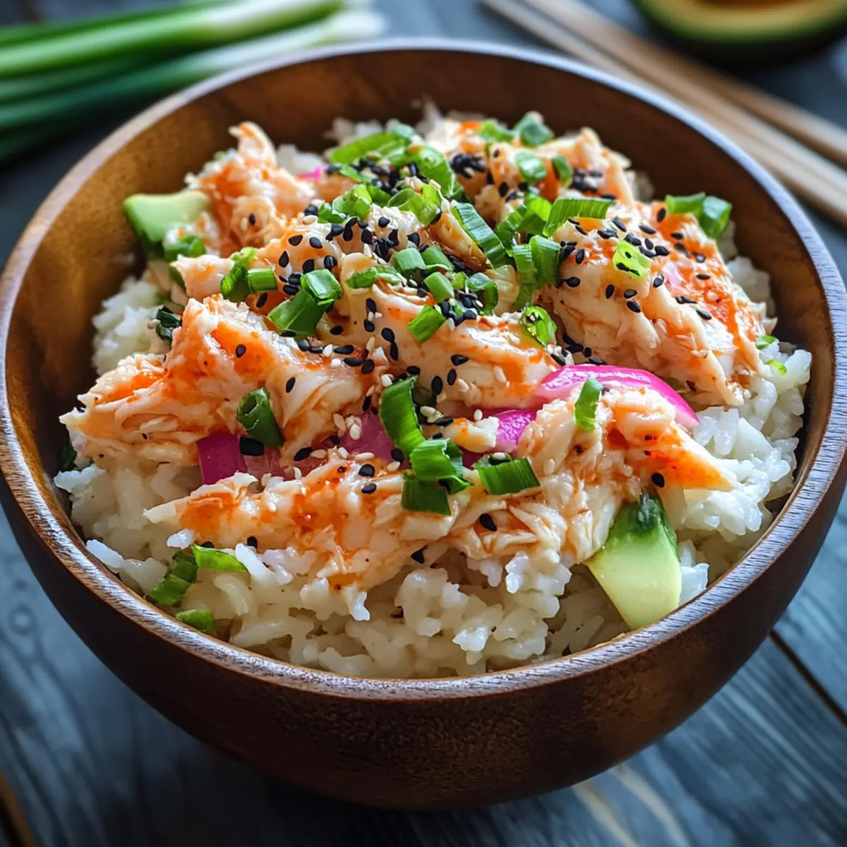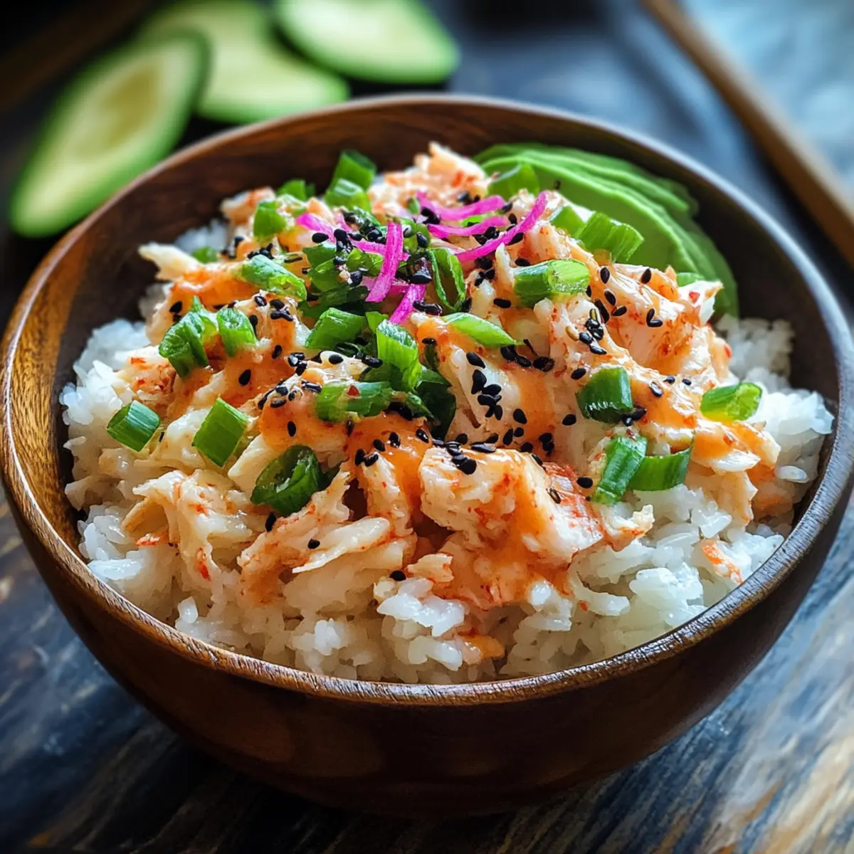 As I stood in my kitchen, the enticing aroma of warm rice filled the air, mingling perfectly with the kick of sriracha. I was in the midst of creating my favorite weeknight wonder: Spicy Crab Sushi Bowls. This dish transforms a typically elaborate sushi experience into a quick, budget-friendly meal that satisfies both my cravings and my busy schedule. With creamy crab salad piled high on fluffy rice, each bowl bursts with customizable toppings that make it easy to cater to everyone’s tastes. These sushi bowls are not only a fun way to enjoy flavors reminiscent of your favorite sushi restaurant, but they also offer a delightful fusion of textures. Ready to elevate your dinner game and impress your loved ones? Let’s dive in! Why are Spicy Crab Sushi Bowls a Must-Try? Quick and Easy: You can whip these bowls up in no time—perfect for busy weeknights when you’re craving something delicious. Budget-Friendly Delight: Utilizing imitation crab and simple ingredients ensures you create an impressive dish without breaking the bank. Customizable Toppings: Whether you’re a fan of avocado or prefer a sprinkle of crunchy sesame seeds, you can tailor each bowl to suit your taste. Flavor Fusion: The creamy, spicy crab salad layered on fluffy rice delivers a delicious harmony of textures and flavors that will satisfy your sushi cravings. Impress Your Guests: Serve alongside miso soup or edamame for an unforgettable sushi night right at home—your friends will be raving about your culinary skills! Take your meal to the next level with our Spicy Mexican Chicken for an additional flavor kick! Spicy Crab Sushi Bowls Ingredients • Here’s everything you need to create your delicious Spicy Crab Sushi Bowls! For the Crab Salad Imitation Crab – Main protein providing seafood flavor; can substitute with real crab or shrimp. Mayonnaise – Adds creaminess to the spicy crab salad; use vegan mayo for a dairy-free option. Sriracha – Delivers heat and spice; adjust to taste or use chili sauce for a milder experience. For the Base Warm Rice (short-grain preferred) – Acts as the base for the bowls, providing texture; quinoa or cauliflower rice are great low-carb alternatives. For Garnishing Sesame Seeds – Enhance flavor and visual appeal; crushed peanuts can be used for a different texture. Green Onions – Adds freshness and crunch; substitute with chives if needed. For Serving Soy Sauce – Traditional condiment; opt for tamari for a gluten-free version or coconut aminos for a soy-free alternative. Wasabi and Pickled Ginger – Classic toppings that elevate the sushi experience; optional based on preference. Step‑by‑Step Instructions for Spicy Crab Sushi Bowls Step 1: Prepare the Spicy Crab Mixture In a medium bowl, blend together ¼ cup of mayonnaise and 2 tablespoons of sriracha until smooth and well-combined. This creamy base should have a vibrant orange hue. Using a spatula, gently fold in 8 ounces of chopped imitation crab, ensuring the crab is entirely coated in the spicy mayo mixture. Set aside for flavors to meld for about 5 minutes. Step 2: Cook the Rice While the crab mixture rests, prepare your rice according to package instructions, ideally short-grain for a classic sushi texture. Rinse 1 cup of rice under cold water until it runs clear, then cook it with 1 ¼ cups of water in a rice cooker or stovetop. Once done, let it sit covered for 10 minutes to steam and get fluffy, resembling a perfect sushi base. Step 3: Assemble the Sushi Bowls Once your rice is ready, divide it evenly into two bowls, creating a warm, fluffy base for the Spicy Crab Sushi Bowls. Use a spoon to create a well in the center of the rice, making it easy to add your toppings. The rice should still be slightly warm to ensure the crab mixture stays cohesive and flavorful. Step 4: Top with Spicy Crab Salad Spoon a generous portion of the spicy crab mixture over each rice bowl, allowing it to spill slightly for a visually appealing presentation. The vibrant colors and textures should entice your taste buds, making the bowl look as good as it tastes. Make sure each bowl receives an ample amount of the creamy crab salad for maximum flavor. Step 5: Garnish Your Bowls Sprinkle a tablespoon of sesame seeds over the spicy crab topping for an added crunch and visual interest. Follow this by scattering sliced green onions on top, which will not only enhance the flavor but also add a fresh pop of color. Each garnish should be applied liberally to ensure every bite is delightful. Step 6: Serve with Condiments Prepare a small dish of soy sauce for drizzling over the bowls, and set aside any wasabi and pickled ginger if desired. Present your Spicy Crab Sushi Bowls alongside these traditional condiments, allowing each person to customize their meal. This combination will elevate the experience, enhancing the flavors of your homemade sushi creation. Make Ahead Options These Easy Spicy Crab Sushi Bowls are perfect for meal prep, saving you precious time on busy weeknights! You can prepare the spicy crab salad up to 24 hours in advance. Simply mix the mayonnaise and sriracha, fold in the chopped imitation crab, and store it in an airtight container in the refrigerator. The rice can also be cooked ahead of time and kept warm in a rice cooker or stored in the fridge for up to 3 days—just reheat it gently before serving to maintain the perfect texture. When you’re ready to enjoy, assemble the bowls by placing the warm rice in bowls, topping it with the crab salad, and adding your favorite garnishes like sesame seeds and green onions for that fresh crunch. This way, you can have restaurant-quality Spicy Crab Sushi Bowls with minimal effort! Spicy Crab Sushi Bowls Variations Unlock the full potential of your Spicy Crab Sushi Bowls with these exciting twists that will elevate every bite! Real Crab: Substitute imitation crab with fresh or lump crab for a more luxurious experience. The freshness will truly shine through! Shrimp Swap: R