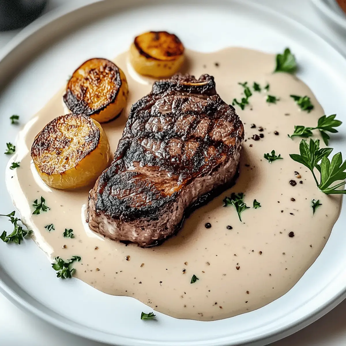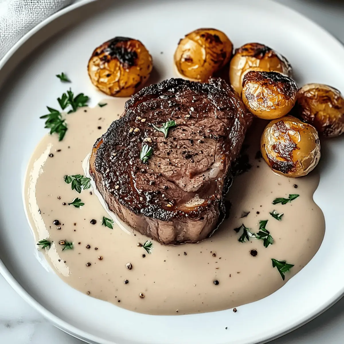 As the chilled autumn breeze whispers through the trees, I find myself drawn to a heartwarming dish that perfectly captures the essence of the season: Steak with Haunted Bourbon Garlic Cream Sauce. Imagine searing a juicy ribeye steak, its edges crisping and releasing those irresistible meaty aromas. Once it meets the rich, creamy bourbon and garlic sauce, a world of flavors unfolds, making each bite an enchanting experience. This recipe not only impresses dinner guests with its enticing smoky notes and subtle heat from paprika and cayenne, but it’s also perfect for those cozy evenings when homemade comfort food is a must. Whether you’re elevating a regular weeknight meal or adding a touch of the spooky to your Halloween gathering, this dish has got you covered. Curious how to recreate this culinary magic in your own kitchen? Let’s dive in! Why is this steak recipe special? Indulgent Flavors: The creamy bourbon garlic sauce adds a rich and decadent twist, making each bite unforgettable. Perfectly Seared Steak: Enjoy a juicy ribeye steak with a delightful crust that locks in all those delicious juices. Seasonal Appeal: This dish is a cozy, comforting choice for chilly nights and is especially festive for Halloween celebrations. Quick and Simple: With straightforward steps, you can impress your family or guests in no time—perfect for both novice cooks and seasoned chefs alike! Versatile Pairings: Serve it alongside creamy mashed potatoes or roasted root vegetables for a well-rounded meal, just like with my Roasted Garlic Mashed that would complement this dish beautifully. Crowd-Pleaser: Ideal for dinner parties, this steak is sure to be the star of the show, bringing smiles and satisfied tastes with every serving! Steak with Haunted Bourbon Garlic Cream Sauce Ingredients For the Steak • Ribeye Steak – The star of the dish, offering incredible tenderness and flavor due to its marbling. • Salt and Pepper – Essential for enhancing the meat’s natural flavors; don’t skimp on seasoning! • Olive Oil – High smoke point oil helps achieve a caramelized crust while searing. For the Sauce • Garlic – Provides a rich aroma and savory depth; sauté gently to prevent burning. • Bourbon – Adds nuanced sweetness and a smoky profile; can flambé for a dramatic flair. • Heavy Cream – Creates the creamy base of the sauce; balances out the tang from other ingredients. • Dijon Mustard – Introduces a tangy kick that sharpens the sauce flavor. • Brown Sugar – Offers a mellow sweetness that beautifully complements the bourbon. • Worcestershire Sauce – Enhances umami depth and complexity for a well-rounded flavor. • Smoked Paprika – Contributes smoky warmth and color, perfect for that haunted vibe. • Cayenne Pepper – Provides a spicy kick; adjust based on your heat preference. For the Finish • Butter – Mix in for a velvety finish that adds gloss and richness to the sauce. • Parsley – Brightens the dish with its color and freshness as a garnish. Now that you have your Steak with Haunted Bourbon Garlic Cream Sauce ingredients, you’re all set to create this captivating dish that will surely be a hit at your next dinner gathering or Halloween celebration! Step‑by‑Step Instructions for Steak with Haunted Bourbon Garlic Cream Sauce Step 1: Season the Steaks Generously season your ribeye steaks with salt and pepper on both sides, ensuring an even coating to enhance their natural flavor. Allow them to rest at room temperature for about 20 minutes while you gather your equipment. This helps the steaks cook more evenly when you whop them in the pan! Step 2: Sear the Steaks In a large skillet, heat 2 tablespoons of olive oil over medium-high heat until shimmering, about 2 minutes. Carefully place the seasoned steaks in the hot oil and sear them for 4-5 minutes on each side for a perfect medium-rare. Look for a rich, brown crust to form on the outside, then transfer the steaks to a plate to rest while you prepare the sauce. Step 3: Sauté the Garlic Reduce the heat to medium and add the minced garlic to the skillet, stirring constantly for about 1-2 minutes until fragrant but not browned. This step is vital for infusing that sweet garlic aroma into your Haunted Bourbon Garlic Cream Sauce. Make sure to scrape up any brown bits left in the skillet for added flavor. Step 4: Deglaze with Bourbon Carefully pour in ½ cup of bourbon, allowing it to bubble and cook down for about 2-3 minutes. If you’re feeling adventurous, you can flambé the bourbon for an extra layer of flavor, just be cautious! As the sauce reduces, relish those smoky notes that perfectly complement the steak. Step 5: Prepare the Cream Sauce Stir in 1 cup of heavy cream, 2 tablespoons of Dijon mustard, 2 tablespoons of brown sugar, 1 tablespoon of Worcestershire sauce, 1 teaspoon of smoked paprika, and a pinch of cayenne pepper. Simmer the mixture on low heat for about 4-5 minutes while stirring gently, allowing the sauce to thicken slightly and become beautifully velvety. Step 6: Finish the Sauce Remove the skillet from heat and incorporate 2 tablespoons of butter, whisking until melted and fully combined. This addition smoothens the sauce, giving your Steak with Haunted Bourbon Garlic Cream Sauce its luxurious richness. Taste and adjust the seasoning if needed, adding more salt or cayenne for a kick. Step 7: Baste and Warm the Steaks Return the rested steaks back to the skillet and spoon the luscious sauce over them. Simmer gently for about 2 minutes, allowing the steaks to absorb the flavors and warm through. This final step brings everything together, ensuring every bite is infused with that hauntingly delicious garlic and bourbon sauce. Step 8: Serve and Garnish Arrange the steaks on warmed plates, generously drizzling them with the remaining sauce. Finish with a sprinkle of freshly chopped parsley for a pop of color and freshness. Your Steak with Haunted Bourbon Garlic Cream Sauce is now 