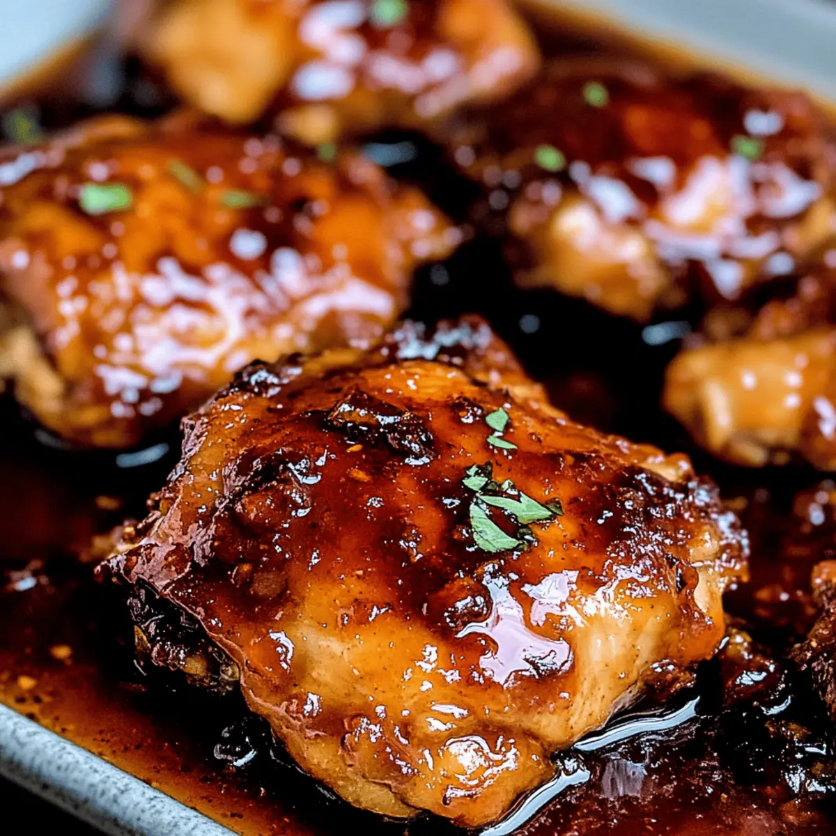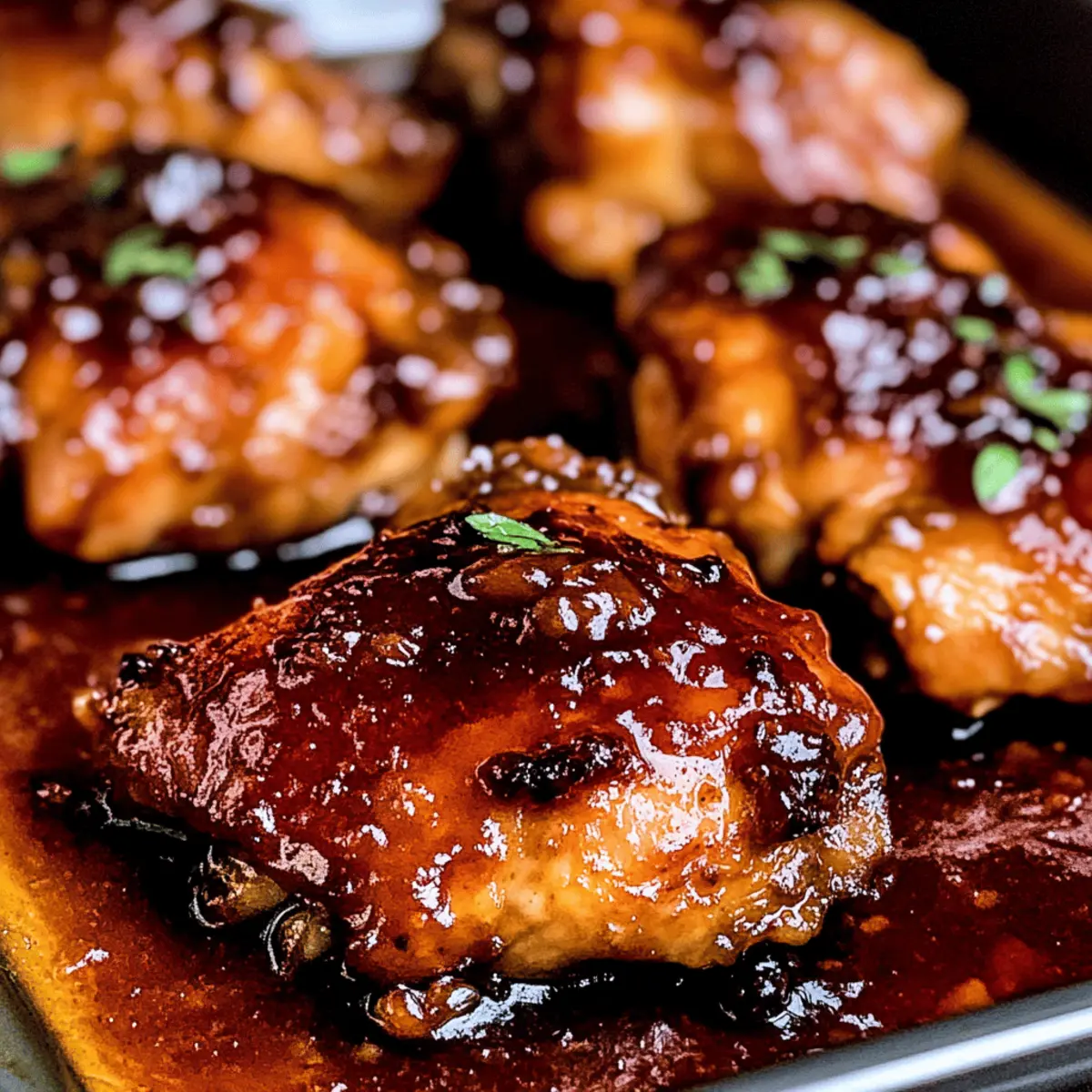 As I pulled the tender chicken from the oven, the air filled with a delightful aroma that whisked me back to cherished family dinners. This Sticky, Gooey, Sweet & Savory Apricot Chicken is a vibrant blend of rich apricot preserves and savory seasonings that not only makes your taste buds dance but also checks the box for a simple weeknight meal. In just over an hour, you can create a dish that promises to be a showstopper at any dinner table. With its ease of preparation and the ability to cater to gluten-friendly preferences, this recipe is designed to become a staple in your kitchen. Curious about how to elevate your weeknight dinners with a sweet twist? Let’s dive into this delectable recipe! Why is Apricot Chicken a Game Changer? Simplicity at Its Best: This recipe is easy to follow, making it an ideal choice for busy weeknights. Gooey, Sweet Flavor: The combination of apricot preserves and savory spices creates a mouthwatering glaze that is both sweet and tangy. Versatile Ingredients: Feel free to swap the apricot preserves with peach or orange marmalade for a unique twist! Time-Saving Delight: In just over an hour, you’ll have a delicious dinner ready to impress the whole family. It fits perfectly into your regular meal rotation. Crowd-Pleasing Appeal: This sticky chicken will satisfy even the pickiest eaters, making it a fantastic addition to any gathering or special occasion. Elevate your mealtime with this delicious Sweet Chili Chicken or pair it with a side of Smothered Chicken Rice for an unforgettable experience! Sticky, Gooey, Sweet & Savory Apricot Chicken Ingredients For the Chicken • Chicken Thighs – This cut provides tenderness and juiciness, making it perfect for soaking up all the delicious flavors. For the Sauce • Soy Sauce – Adds a savory umami kick; opt for low sodium to keep it heart-healthy. • Dijon Mustard – Introduces a zesty tang that complements the sweetness of the apricot. • Apricot Preserves – The star of the show, this sweetener creates that signature sticky glaze—feel free to swap for peach or orange marmalade for a twist! • Dehydrated Onion – Enhances the depth of flavor; fresh onion can be used for a more vibrant taste. • Kosher Salt – Essential for balancing flavors; adjust if using regular soy sauce to avoid over-salting. • Granulated Garlic – Infuses a delightful aroma; fresh garlic is a great alternative if you have it on hand. • Crushed Red Pepper – Adds a pinch of heat; adapt the amount to your taste preferences or leave it out for a milder dish. This Sticky, Gooey, Sweet & Savory Apricot Chicken is just a few ingredients away from making your dinner both easy and memorable! Step‑by‑Step Instructions for Sticky, Gooey, Sweet & Savory Apricot Chicken Step 1: Preheat Your Oven Begin by preheating your oven to 425°F (220°C). This temperature will ensure a beautiful caramelization on the chicken as it bakes. While your oven heats up, prepare your 9×13 baking dish by lightly greasing it with a splash of oil, which will help prevent the chicken from sticking. Step 2: Make the Sauce In a large mixing bowl, combine ½ cup of soy sauce, ¼ cup of Dijon mustard, and 1 cup of apricot preserves. Add in 1 tablespoon of dehydrated onion, 1 teaspoon of kosher salt, 1 teaspoon of granulated garlic, and a pinch of crushed red pepper. Stir these ingredients thoroughly until you create a smooth and glossy sauce that’s both sweet and savory, the key to your Sticky, Gooey, Sweet & Savory Apricot Chicken. Step 3: Coat the Chicken Take your chicken thighs and coat them generously with the prepared sauce. Arrange them skin side down in the greased baking dish, ensuring they are well-spaced for even cooking. Reserve any leftover sauce in the bowl, as it will come in handy later. This will create that delightful sticky glaze that everyone will love when it’s time to serve. Step 4: First Bake Place the baking dish in the preheated oven and bake the chicken for 20 minutes. At this point, the chicken should start to cook through and your kitchen will fill with a mouthwatering aroma. Keep an eye on it—you want the chicken to begin browning without burning. Step 5: Flip and Add Sauce After 20 minutes, carefully remove the baking dish from the oven. Using tongs, flip the chicken thighs over so that the skin side is now facing up. Spoon the reserved sauce generously over the top of each piece of chicken, allowing that sticky goodness to infuse as it cooks further. Step 6: Final Bake Return the dish to the oven and bake for an additional 25-30 minutes. You’ll know your Sticky, Gooey, Sweet & Savory Apricot Chicken is ready when the skin is dark and slightly charred, and the internal temperature reaches 165°F (74°C). The chicken should look glossy and caramelized—absolutely irresistible! Sticky, Gooey, Sweet & Savory Apricot Chicken Variations Get ready to explore delightful twists on this family favorite that will tantalize your taste buds! Peach Preserve Twist: Swap apricot preserves for peach preserves for a sweet, summery flavor that’s simply irresistible. The juicy sweetness of peaches adds a refreshing note that enhances the dish’s overall profile. Boneless Options: Use boneless chicken thighs or breasts to cut down on cooking time; reduce baking by about 15 minutes. This not only saves time, but the result is just as tender, allowing for a quick weeknight fix! Crockpot Version: Slow cook the chicken for 3-4 hours for a different texture, then broil briefly to caramelize. The low-and-slow method deepens the flavor, making every bite wonderfully succulent. Vegetarian Delight: Replace chicken with firm tofu, pressing and marinating it in the apricot sauce for a cozy meat-free option. When baked, the tofu soaks up the glaze beautifully, providing a hearty, satisfying meal. Add Some Heat: Toss in a few jalapeño slices to the sauce for an extra kick of heat that spices things up! Adjust the level of spice to your liking