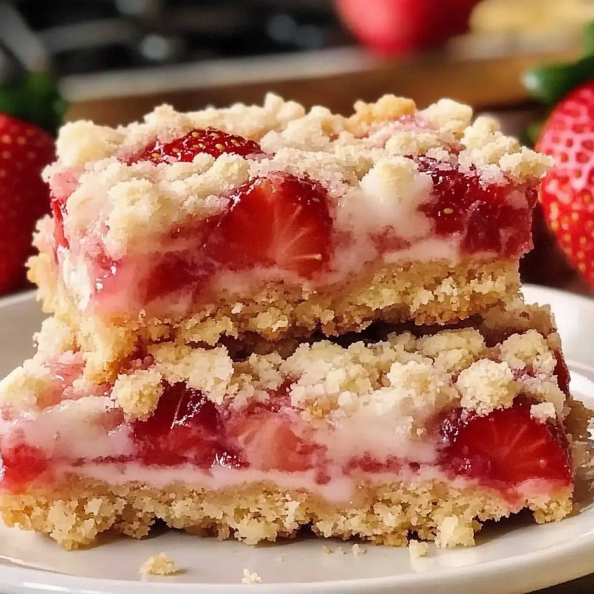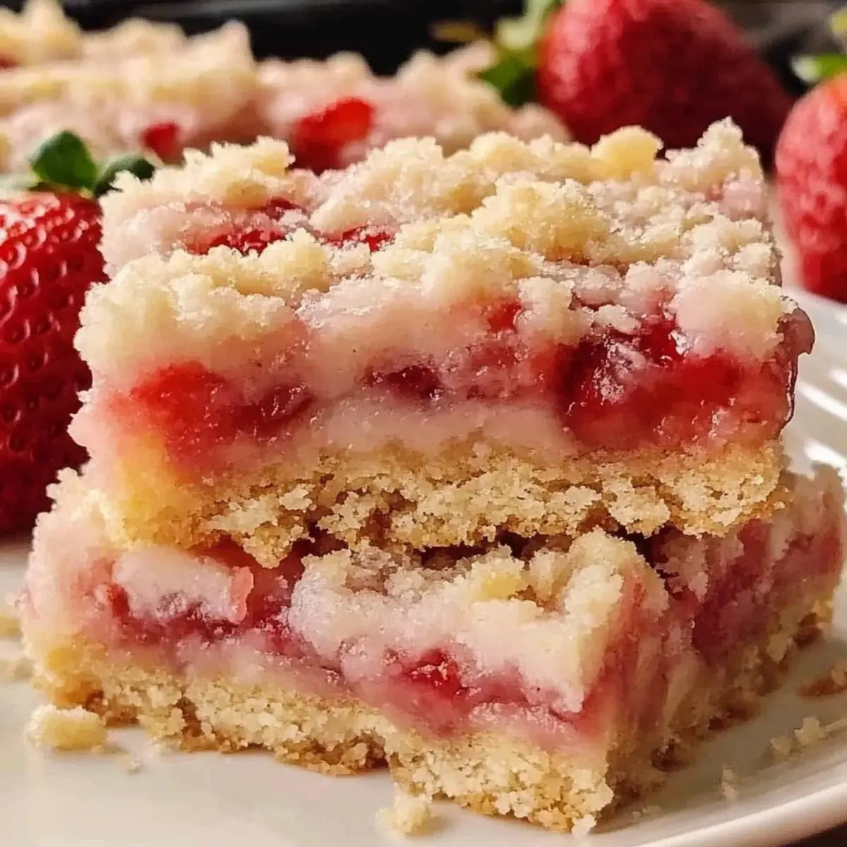 The scent of summer wafts through my kitchen as I pull a tray of Bright and Summery Strawberry Shortcake Bars from the oven, and let me tell you—I almost can’t wait for them to cool! These delightful dessert bars feature a crumbly buttery crust, juicy fresh strawberries, and a sweet vanilla glaze that dances on your taste buds. Perfect for potlucks or lazy weeknight cravings, they truly encapsulate the essence of summer gatherings. What’s more, they’re incredibly easy to whip up, making them a go-to for anyone wanting to impress without spending all day in the kitchen. Trust me, once you serve these sweet treats, you’ll have guests coming back for seconds…or thirds! Ready to indulge in a slice of summer? Let’s dive into making these Strawberry Shortcake Bars a highlight of your dessert repertoire. Why are Strawberry Shortcake Bars so special? Summer Vibes: These bars capture the vibrant essence of summer! With fresh strawberries à la the classic shortcake, they are light and fruity. Effortless Preparation: Whip them up in no time! The straightforward steps make it perfect for both novices and seasoned chefs who want a quick dessert. Family-Friendly: Kids and adults alike adore these bars. They’re universally loved, making them ideal for gatherings where everyone can indulge. Versatile Delight: Dress them up with whipped cream or serve them plain. These bars fit any occasion, from a casual family treat to a fancy gathering. Make-Ahead Magic: Prep them in advance and store them! These dessert bars store beautifully in the fridge for a refreshing treat whenever you crave something sweet. Strawberry Shortcake Bars Ingredients For the Crust • All-purpose flour – 1 ¾ cups (250g) provide structure for the crust and filling; substitute with gluten-free flour for a gluten-free option. • Granulated sugar – ⅓ cup (65g) adds sweetness to the crust; you can use brown sugar for a richer flavor. • Light brown sugar – 3 tablespoons (45g) adds moisture and caramel notes; granulated sugar can be a suitable substitute. • Salted butter – ¾ cup (170g, melted) binds the crust together and enhances flavor; unsalted butter works well too—just adjust salt accordingly. • Pure vanilla extract – 1 teaspoon (5ml) elevates the sweetness; consider vanilla bean paste for a more pronounced flavor. For the Filling • Fresh strawberries – 3 cups (400g, chopped) are the star of the show, bringing juiciness; other berries can be used, but adjust sugar based on sweetness. For the Glaze • Powdered sugar – ½ cup (60g) adds sweetness to the glaze; agave syrup is a tasty lower-sugar alternative. • Heavy whipping cream or light cream – 1 tablespoon (15ml) gives creaminess to the glaze; milk can also be a decent substitute. • Pure vanilla extract – ¼ teaspoon (optional for glaze) enhances flavor and ties everything together. Enjoy whipping up these delightful Strawberry Shortcake Bars that truly capture the spirit of summer! Step‑by‑Step Instructions for Strawberry Shortcake Bars Step 1: Preheat and Prepare Begin by preheating your oven to 350°F (175°C). While the oven warms, grab an 8×8-inch baking pan and line it with parchment paper, allowing some overhang for easy removal later. This will set the stage for your delicious Strawberry Shortcake Bars! Step 2: Mix the Crust Ingredients In a large mixing bowl, whisk together 1 ¾ cups of all-purpose flour, ⅓ cup granulated sugar, 3 tablespoons of light brown sugar, and a pinch of salt. Pour in ¾ cup of melted salted butter and 1 teaspoon of pure vanilla extract, mixing until the dough becomes crumbly yet cohesive. Step 3: Form the Crust Take approximately two-thirds of the crumb mixture and press it firmly into the bottom of the prepared baking pan. Ensure the crust is even and compact. Bake in the preheated oven for 15 to 20 minutes, or until it turns lightly golden on the edges, giving you a perfect base for your strawberry filling. Step 4: Prepare the Strawberry Filling While your crust bakes, in another bowl, combine 3 cups of chopped fresh strawberries with 2 tablespoons of granulated sugar and a tablespoon of flour. Gently toss to coat the strawberries and let them sit to macerate. This juicy mixture will spread beautifully over your hot crust. Step 5: Assemble the Bars Once the crust is done baking, remove it from the oven and immediately spoon the macerated strawberry mixture evenly over the warm crust, allowing the juices to seep in. Sprinkle the remaining crumb mixture over the strawberries, ensuring an even layer that will form a delightful topping for your Strawberry Shortcake Bars. Step 6: Bake to Perfection Return the assembled bars to the oven and bake for an additional 30 to 35 minutes. You’ll know they are ready when the top is set and lightly golden, filling your kitchen with that delicious aroma of strawberries and vanilla. Step 7: Cool the Bars After baking, let the bars cool completely in the pan on a wire rack. This cooling step is crucial for ensuring the bars hold their shape when sliced. Patience is key—let them rest at room temperature for about 1 hour. Step 8: Whip Up the Glaze While the bars cool, prepare a simple glaze by whisking together ½ cup of powdered sugar with 1 tablespoon of heavy cream and ¼ teaspoon of pure vanilla extract. Mix until smooth; it should be thick but drizzle-able. Step 9: Drizzle and Slice Once the bars have cooled, carefully lift them out of the pan using the parchment overhang. Drizzle the glaze evenly over the top, allowing it to cascade down the sides. Cut into 12 equal squares and admire your scrumptious Strawberry Shortcake Bars before serving. Strawberry Shortcake Bars Variations Feel free to give these delightful dessert bars your personal touch and make them truly yours! Berry Medley: Substitute some strawberries with blueberries or raspberries for a colorful twist. This mix brings a burst of flavor that will surprise your taste buds. Lemon Zest 