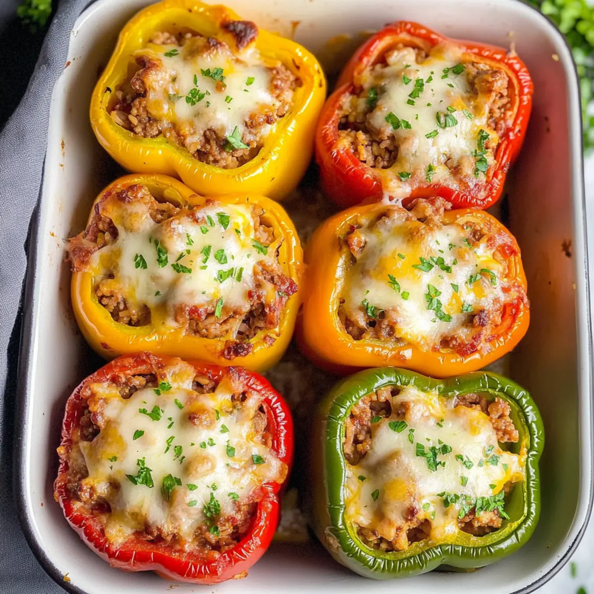 As I pulled the freshly baked stuffed peppers from the oven, the warm, savory aroma enveloped my kitchen like a cozy hug. These Healthy Cheesy Stuffed Peppers, filled with seasoned ground beef, rice, and a rich tomato sauce, have quickly become a weeknight staple in my home. Not only are they quick to prepare, but they also make fantastic leftovers, ideal for meal prep or freezing for busy days ahead. Each vibrant bell pepper cradles a hearty filling that promises satisfaction and comfort without the fuss of takeout. Plus, you can easily modify the ingredients to suit your family’s tastes! With every bite, you’ll feel a sense of joy and fulfillment—who doesn’t love a wholesome meal that’s both nourishing and delicious? Ready to transform your dinner routine with these delightful stuffed peppers? Let’s dive into the recipe!