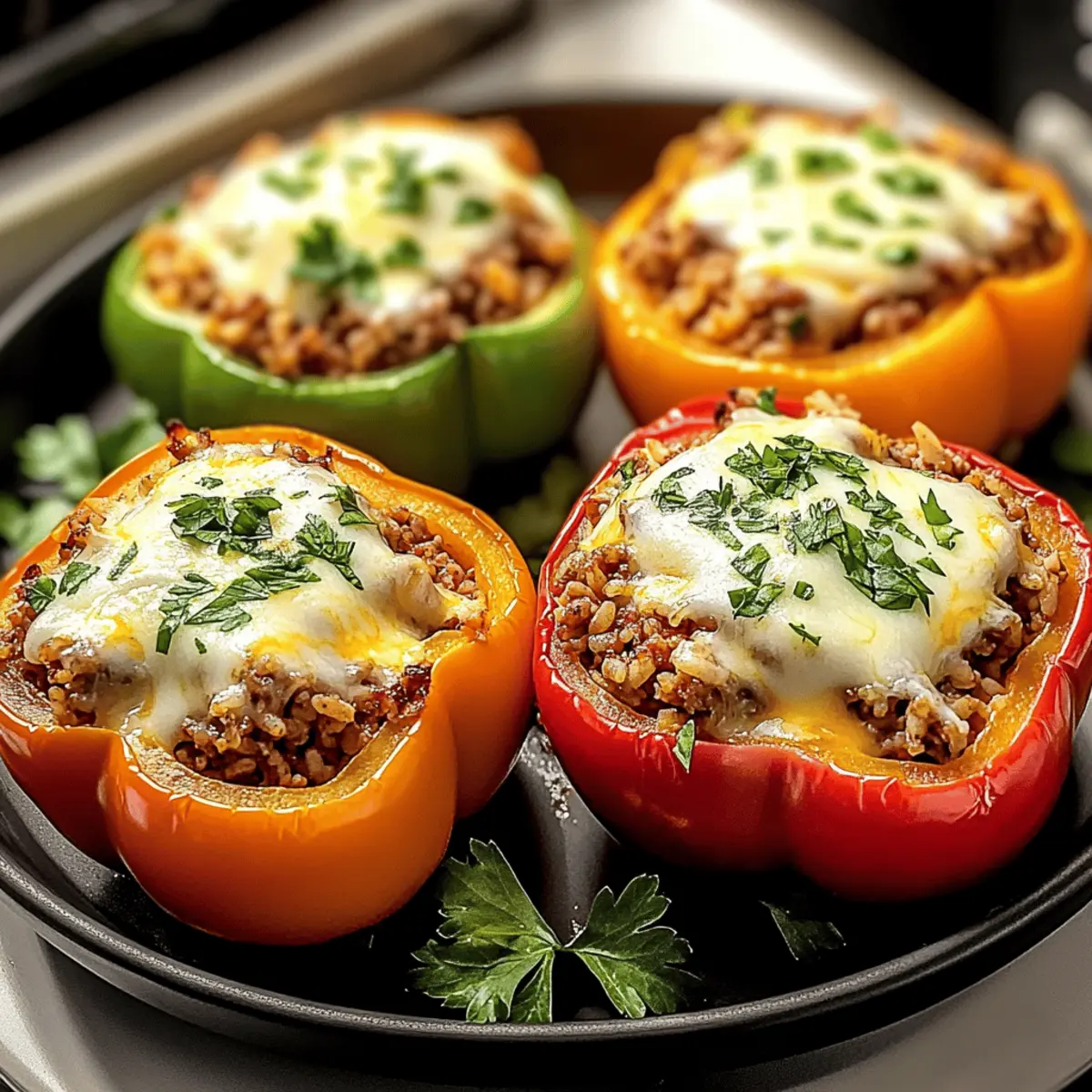 As the oven work its magic, the unmistakable scent of bell peppers fills the kitchen, instantly transporting me back to cozy family dinners. My go-to recipe for Quick & Easy Classic Stuffed Peppers combines savory goodness with a vibrant twist, featuring tender bell peppers stuffed to the brim with a delightful mix of ground beef, rice, and melty cheese. The best part? This meal takes only 20 minutes to prep, making it the perfect solution for busy weeknights while staying healthy. Plus, it’s versatile enough to cater to any palate—whether you prefer ground turkey, a medley of veggies, or an array of bold spices, you’ll find a variation that excites you. Ready to treat your loved ones to a wholesome homemade meal? Let’s dive into this comforting dish that’s bound to become a family favorite! Why are Stuffed Peppers a Family Favorite? Convenience: With just 20 minutes of preparation, you can enjoy a delicious homemade meal without the hassle. Perfect for busy evenings! Flavor Explosion: Each bite is a delightful blend of savory ground beef, tender rice, and melted cheese, making for a mouthwatering combination. Versatile Options: Easily customize your stuffed peppers with different proteins, veggies, or spices to suit your family’s taste, like my Spinach Stuffed Chicken. Healthy Choices: Choose lean meats or vegetarian fillings to fit your dietary needs while keeping dinner nutritious and balanced. Appeal to All: These eye-catching, colorful peppers are sure to impress both kids and adults alike, turning any dinner into a lively gathering! Stuffed Peppers Ingredients For the Filling Bell Peppers – A vibrant and sturdy vessel for your flavorful filling; consider using poblano peppers for a twist. Ground Beef – Adds rich flavor and hearty texture; can be replaced with ground turkey or a plant-based substitute for a lighter option. Cooked Rice – Provides bulk and texture; swap with quinoa or cauliflower rice for a gluten-free alternative. Onion – Finely chopped for sweetness and depth in flavor; can substitute with shallots for a milder taste. Garlic – Minced to enhance the aroma and flavor profile; roasted garlic can also be used for a sweeter essence. Tomato Sauce – Moisture and acidity that binds the filling; crushed tomatoes work equally well if you prefer a chunkier texture. Diced Tomatoes – Adds freshness and texture; use drained tomatoes if you want to reduce moisture in your filling. Italian Seasoning – Brings herbal notes to the dish; you can substitute with fresh herbs like basil or oregano for a brighter taste. Salt and Black Pepper – Essential for enhancing the flavors; adjust to personal taste as needed. For the Toppings Mozzarella Cheese – Melts beautifully for a gooey finish; swap with cheddar or pepper jack for a different flavor profile. Parmesan Cheese – Finely grated and sprinkled for a savory depth; nutritional yeast can be used as a vegan alternative. For Cooking Olive Oil – Used for sautéing aromatics; vegetable or canola oil can also be used. For Garnish Fresh Parsley – Chopped for a touch of color and freshness; cilantro or basil can also add a unique twist. Enjoy creating these delicious stuffed peppers that are sure to bring warmth and joy to your dinner table! Step‑by‑Step Instructions for Quick & Easy Classic Stuffed Peppers Step 1: Preheat the Oven Start by preheating your oven to 375°F (190°C) while you prepare the ingredients. This ensures the perfect temperature for the Classic Stuffed Peppers once they are ready to bake. Gather your baking dish, as you’ll need it shortly, and make sure to have a foil ready to cover the peppers during the initial baking phase. Step 2: Prepare the Bell Peppers Carefully cut the tops off the bell peppers and remove the seeds and membranes inside. Rinse them under cool water to clean, then set them upright in your baking dish. The vibrant colors of the peppers will bring a wonderful liveliness to your meal, making the classic stuffed peppers even more visually appealing. Step 3: Sauté the Aromatics In a large skillet, heat about a tablespoon of olive oil over medium heat. Add the finely chopped onion and minced garlic, stirring them together for about 3 to 4 minutes, until the onions become translucent and fragrant. This step builds the flavorful foundation for your pepper filling; the aroma will surely whet your appetite for what’s to come. Step 4: Cook the Ground Beef Add the ground beef to the skillet with the sautéed onion and garlic. Cook for about 5 to 7 minutes, stirring frequently, until the beef is browned and fully cooked. Break up the meat as you stir, ensuring there are no large chunks. The rich flavor of the beef will blend beautifully with the rest of the filling for the stuffed peppers. Step 5: Mix in the Filling Ingredients To the skillet, add the cooked rice, tomato sauce, diced tomatoes, Italian seasoning, salt, and black pepper. Stir the mixture together, letting it simmer for about 5 minutes. You’ll notice that everything combines into a cohesive mixture, enhancing the aromas and flavors essential for your Classic Stuffed Peppers. Step 6: Stuff the Peppers Using a spoon, carefully fill each prepared bell pepper with the savory beef and rice mixture. Pack the filling gently but firmly, ensuring each pepper is full to the brim but not overflowing. The filling should be warm to the touch, and the peppers will exude a vibrant appearance as they get ready for the next step. Step 7: Bake the Stuffed Peppers Place the stuffed peppers upright in the prepared baking dish and pour in about 1/4 inch of water; this will help steam the peppers during baking. Cover the dish tightly with aluminum foil and place it in your preheated oven. Bake for 35 minutes, allowing the peppers to soften and the flavors to meld beautifully. Step 8: Add Cheese and Finish Baking After 35 minutes, carefully remove the foil from the baking dish. Sprinkle mozzarella and Parmesan cheese generou