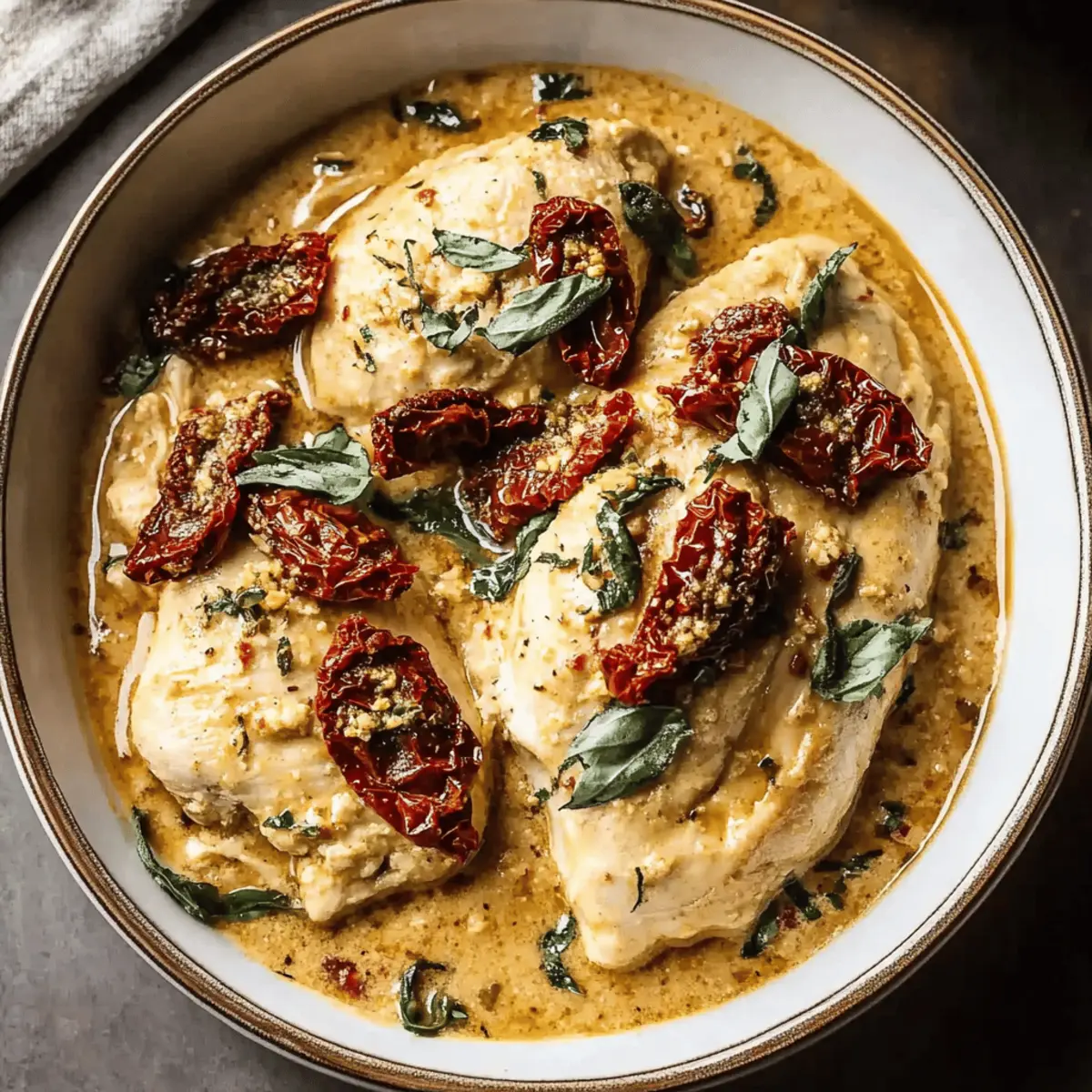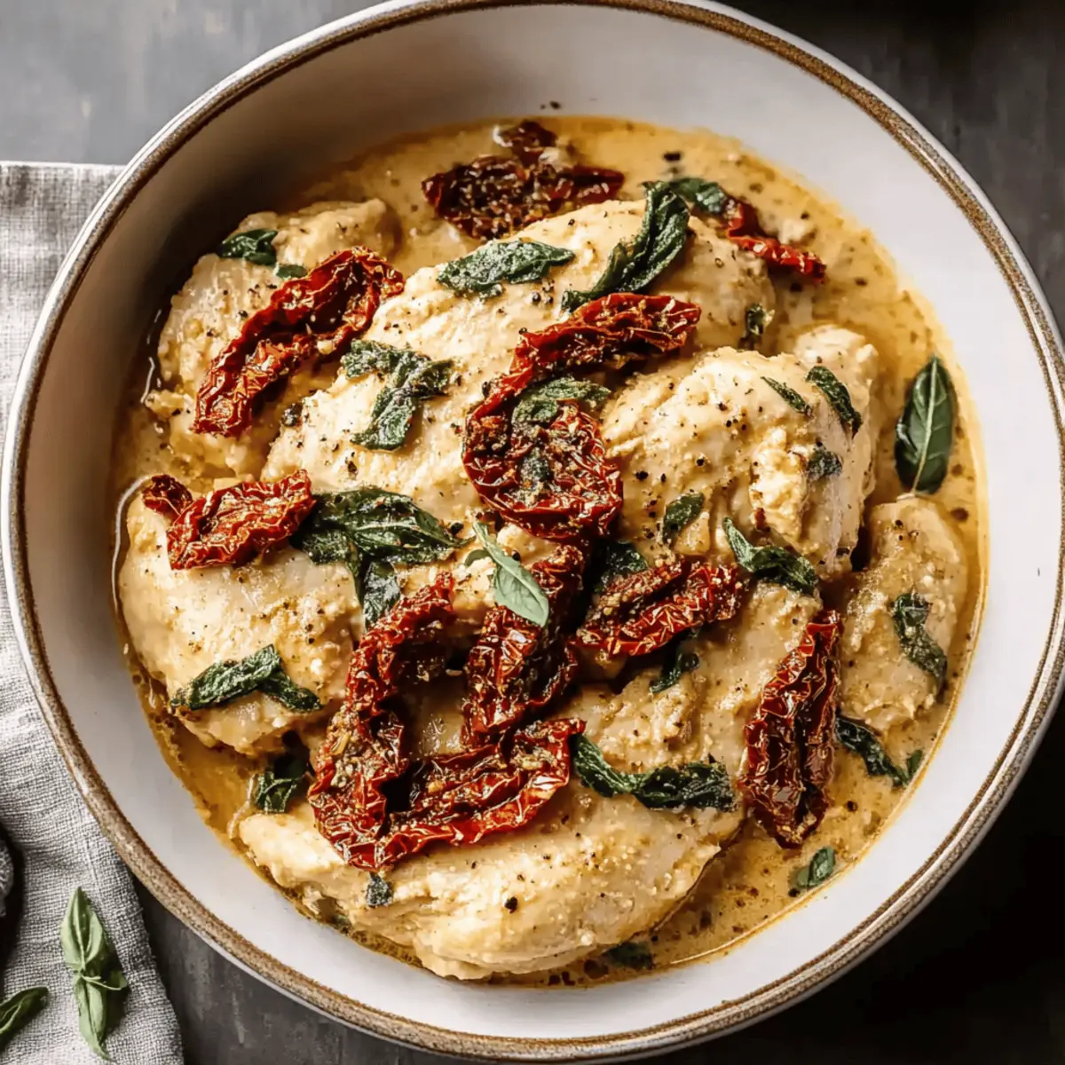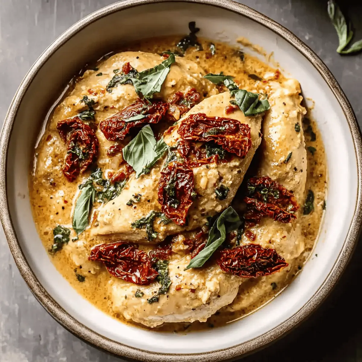 The irresistible aroma of sun-dried tomatoes mingling with garlic is enough to draw anyone into the kitchen, and trust me, this Creamy Sun-Dried Tomato Crockpot Chicken will keep you coming back for more. On busy weeknights, when the last thing I want to do is spend hours at the stove, this easy crockpot dish comes to the rescue with minimal prep and maximum comfort. The tender chicken simmers gently in a luscious sauce made creamy with coconut milk and brightened by zesty lemon and fresh basil—a true crowd-pleaser for every palate. Plus, it’s versatile enough to accommodate various dietary needs, making it gluten-free, dairy-free, and even Whole30 compliant! Are you ready to elevate your weeknight dinners with this soul-soothing recipe? Let’s dive in! Why is This Recipe a Must-Try? Comforting Ease: This Sun-Dried Tomato Crockpot Chicken is the epitome of effortless cooking, perfect for busy weeknights, allowing you to set it and forget it! Flavor Explosion: The combination of sun-dried tomatoes, garlic, and creamy coconut milk creates a symphony of flavors that are simply irresistible. Dietary-Friendly: Accommodating various diets, this dish is gluten-free, dairy-free, and adaptable to paleo or Whole30 diets. Versatile Options: Pair it with rice, zucchini noodles, or even enjoy it over mashed potatoes for a satisfying meal. Crowd-Pleaser: It’s a recipe that delights everyone at the table. Pair it with a crisp salad for a balanced meal! This dish truly transforms simple ingredients into something special—perfect for anyone looking to elevate their dinner game while keeping it wholesome. For more inspiring ideas, don’t forget to check out my other favorites, like Cheesy Chicken Enchiladas or Mango Chicken Stir. Sun-Dried Tomato Crockpot Chicken Ingredients For the Chicken • Chicken breasts or thighs – Use thighs for extra flavor and moisture. For the Sauce • Sun-dried tomatoes – These add an intense sweetness and tang. Fresh tomatoes can be used, but adjust cooking time for moisture. • Coconut milk or heavy cream – Coconut milk is perfect for a dairy-free version, while heavy cream adds richness. • Grated parmesan cheese – Omit for dairy-free; consider nutritional yeast for a cheesy flavor in a vegan version. • Garlic (minced) – Opt for fresh for the best flavor; garlic powder can be a backup if needed. • Dried oregano – Provides an herbaceous note; fresh oregano can be substituted for a brighter flavor. • Smoked paprika – This ingredient adds a delightful smokiness; adjust quantity according to your spice tolerance. • Crushed red pepper flakes – Add for a kick of heat; reduce or omit for milder versions. • Salt and black pepper – Essential for enhancing the dish’s flavors. For Freshness • Fresh basil (chopped) – Adds brightness to the dish just before serving; you can use parsley if necessary. • Lemon juice – A must for brightening the rich flavors of the dish. For Cooking • Olive oil – Incorporates healthy fat and flavor; substitute with butter for added richness if desired. For Accompaniment • Rice, mashed potatoes, or pasta – Your chosen base for serving; consider gluten-free options like cauliflower rice or zucchini noodles for dietary needs. This Sun-Dried Tomato Crockpot Chicken is not just easy to prepare, it’s the cozy comfort food you’ve been searching for! Step‑by‑Step Instructions for Sun-Dried Tomato Crockpot Chicken Step 1: Prepare the Base Begin by placing chicken breasts or thighs in a large crockpot. Add the sun-dried tomatoes, coconut milk or heavy cream, grated parmesan cheese, minced garlic, dried oregano, smoked paprika, crushed red pepper flakes, salt, and black pepper. Ensure all ingredients are evenly distributed around the chicken for a harmonious flavor profile. Step 2: Mix and Cook Gently stir the ingredients until the chicken is well-coated in the creamy mixture. Cover the crockpot with its lid and set it to cook on low for 6-7 hours or on high for 3-4 hours. As it cooks, the chicken will tenderize, and the aroma of sun-dried tomatoes will fill your kitchen, signaling that a comforting meal is on the way. Step 3: Shred and Incorporate Once the cooking time is up, remove the lid and check that the chicken is tender enough to shred easily with two forks. If you prefer shredded chicken, gently pull it apart and return it to the sauce in the crockpot. This step allows the chicken to soak up even more of the delicious flavors from the creamy sauce. Step 4: Brighten the Dish Next, stir in the fresh lemon juice and olive oil, giving your Sun-Dried Tomato Crockpot Chicken a refreshing lift. To add a delightful herbaceous note, fold in the chopped fresh basil. This combination not only enhances flavor but also adds a vibrant touch to your dish right before serving. Step 5: Serve and Enjoy Finally, dish out the chicken and sauce over your choice of accompaniment, such as rice, mashed potatoes, or gluten-free options like zucchini noodles. Garnish with additional fresh basil for an appealing presentation. Each serving will be a warm embrace of flavors, ready to be enjoyed by family and friends! What to Serve with Sun-Dried Tomato Crockpot Chicken Enhance your cozy meal with complementary sides that bring out the flavors of this creamy and aromatic dish. Crispy Garlic Bread: Slices of golden-brown, buttery garlic bread provide a crunchy complement, perfect for soaking up that delicious sauce. Creamy Mashed Potatoes: The velvety texture pairs beautifully with the sauce, creating a rich and satisfying mouthfeel that tempts every forkful. Roasted Vegetables: Seasonal vegetables like zucchini and bell peppers add freshness and color, complementing the savory flavors of the chicken while adding a nutrient boost. Cauliflower Rice: For a low-carb option, this light substitute absorbs the sauce well and adds a delightful crunch, making it a stellar base. Bright Arugula Salad: The peppery arugula dressed in l