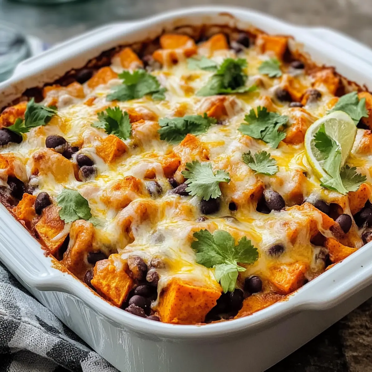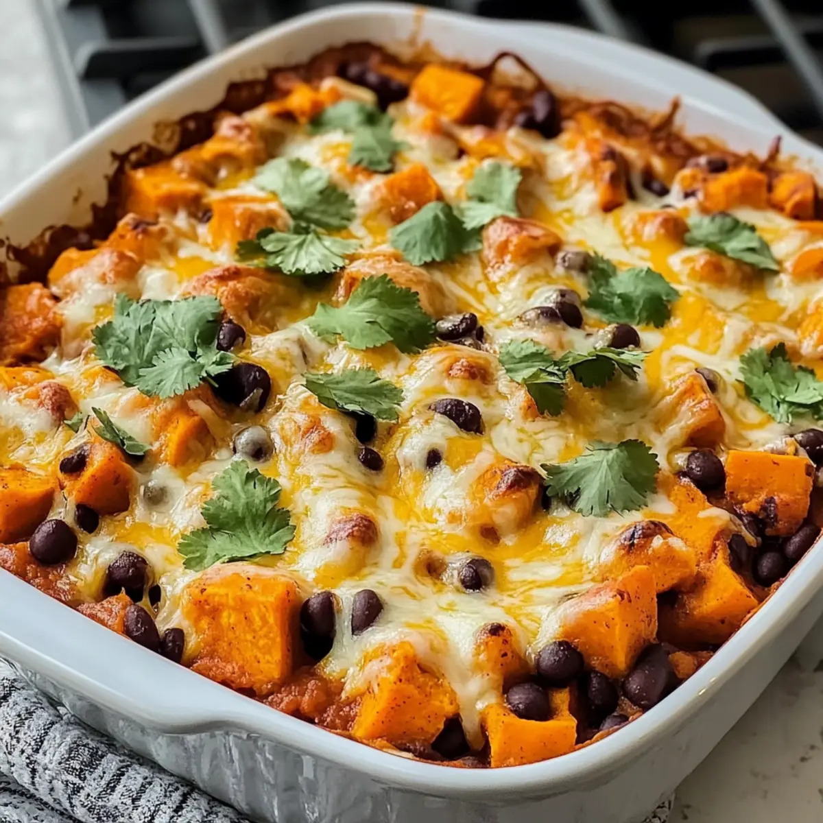 As I gathered ingredients for dinner one evening, the cozy aroma of sweet potatoes and vibrant spices whisked me away to my favorite Mexican restaurant. This experience led me to create my very own Sweet Potato and Black Bean Enchilada Casserole! This recipe is not only a delightful vegetarian option but also a quick weeknight dinner that will fill your home with mouthwatering scents. Each layer of tender sweet potatoes, hearty black beans, and creamy cheese reminds me of gatherings with friends and family. Best of all, it’s packed with nutrients, allowing you to indulge in comfort food without the guilt. Are you ready to bring this comforting dish to your table and warm your heart? Why is this casserole a must-try? Comforting Layers: The Sweet Potato and Black Bean Enchilada Casserole combines the heartwarming flavors of sweet potatoes and black beans in each bite. Nutrient-Packed: Veggies and beans make this dish not only hearty but also bursting with vitamins and protein, perfect for a healthy weeknight dinner. Time-Saving: This one-dish wonder can be prepped ahead and baked when you’re ready, making life easier on busy evenings. Versatile Options: Feel free to mix it up by adding different veggies or beans for a personalized spin! Plus, a side of avocado or salad complements this dish beautifully. Crowd-Pleasing Delight: Ideal for both family dinners and gatherings, it’s sure to please vegetarians and omnivores alike. Don’t forget to check out my Sausage and Potatoes Skillet for another comforting option! Sweet Potato and Black Bean Enchilada Casserole Ingredients For the Casserole Sweet Potatoes – provide natural sweetness and a creamy texture when baked; butternut squash can work as a substitute. Black Beans – add delicious protein and fiber; feel free to use canned or cooked dried beans for convenience. Enchilada Sauce – brings a spicy, savory kick; you can use store-bought or homemade sauce, or even green salsa for a fresh twist. Cheese – enhances richness and flavor; go for shredded cheddar, Monterey Jack, or a dairy-free alternative for a vegan option. Tortillas – form the base layers; traditional corn tortillas are great, but whole wheat versions can also be used for a healthier choice. Onion – contributes aromatic depth; you can substitute with leeks for a milder flavor. Garlic – adds warmth and depth; fresh garlic cloves are ideal, but powdered garlic can work in a pinch. Optional Toppings Avocado Slices – bring creamy freshness that pairs wonderfully with the casserole’s flavors. Hot Sauce – add some heat to elevate your dish, perfect for those who enjoy a spicy kick! This hearty Sweet Potato and Black Bean Enchilada Casserole is a fantastic way to enjoy a nutritious meal filled with comforting flavors! Step‑by‑Step Instructions for Sweet Potato and Black Bean Enchilada Casserole Step 1: Preheat and Prepare Begin by preheating your oven to 350°F (175°C). While it warms up, peel your sweet potatoes and slice them thinly, about 1/8 inch thick, for even cooking. This ensures they become creamy and tender in the casserole. Gather your baking dish—an 8×8 inch or similar size will work perfectly for this Sweet Potato and Black Bean Enchilada Casserole. Step 2: Create the Base Layer In your prepared baking dish, pour a thin layer of enchilada sauce to coat the bottom, ensuring a flavorful foundation. Next, arrange a layer of tortillas over the sauce, slightly overlapping them to cover the base. This builds the first delicious layer of your casserole, ready to support the rest of the ingredients. Step 3: Add Vegetables and Beans Now, layer half of the sliced sweet potatoes on top of the tortillas, making sure they are evenly distributed. Sprinkle half of the black beans and add in some chopped onions and minced garlic to give an aromatic kick. This combination creates a hearty, nutrient-packed segment of your Sweet Potato and Black Bean Enchilada Casserole, filled with flavor and texture. Step 4: Incorporate Cheese Next, sprinkle a generous handful of cheese over the layered vegetables, allowing it to melt beautifully during baking. Repeat the layering process by adding another set of tortillas, sweet potatoes, beans, onion, garlic, and cheese. Continue building the layers, topping the final layer with more enchilada sauce and a final sprinkle of cheese to create that golden, bubbly finish. Step 5: Bake the Casserole Cover the assembled casserole with aluminum foil and place it in the preheated oven. Bake for about 30 minutes, allowing the sweet potatoes to soften and the flavors to meld together. After this time, carefully remove the foil to let the cheese bubble and brown; bake for an additional 5-10 minutes, until it’s golden and deliciously fragrant. Step 6: Cool and Serve Once baked, remove the casserole from the oven and let it cool for about 10 minutes. This cooling period allows the layers to set, making it easier to cut into squares. Serve warm, and enjoy the delightful and hearty flavors of your Sweet Potato and Black Bean Enchilada Casserole with family and friends! What to Serve with Sweet Potato and Black Bean Enchilada Casserole Pairing your meal can elevate the experience, making it a delightful feast for the senses. Crisp Green Salad: A refreshing salad with mixed greens and a zesty vinaigrette offers a bright contrast to the warm, hearty casserole. Guacamole: Creamy avocado dip adds a rich, buttery flavor and a cool touch, perfect for balancing the spice of the enchiladas. Mexican Street Corn: This sweet and savory corn dish enhances the flavors of the casserole, adding a delightful crunch and a burst of sweetness. Pico de Gallo: A fresh salsa made from diced tomatoes, onions, and cilantro provides a vibrant, zesty kick that complements the casserole wonderfully. Sour Cream Dollop: A tangy dollop of sour cream or yogurt on top makes for a creamy addition that cools and balances the flavors beautifully. Cilantro Lime Rice: Ligh