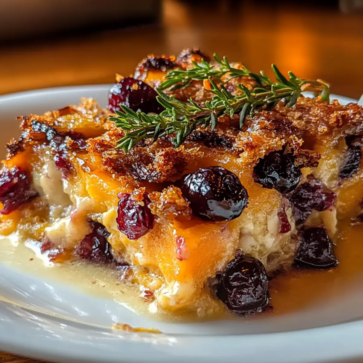 As I shuffled through my holiday recipe collection, I stumbled upon an old favorite that instantly drew me in: Sweet Potato & Cranberry Gratin. The vibrant color contrast between creamy sweet potatoes and tart cranberries is a feast for the eyes, while their flavors intertwine to create a dish that feels like a warm hug on a chilly day. This gratin not only promises to brighten up any festive table but also requires just 55 minutes of your precious time, making it perfect for those bustling holiday gatherings. It’s vegetarian-friendly and adaptable for vegan and gluten-free diets, so everyone can savor this comforting delight. Ready to elevate your holiday meals with a dish that will have your family asking for seconds? Let’s get started! Why is this gratin a holiday essential? Vibrant Colors: The striking contrast of orange sweet potatoes and bright red cranberries not only delights the eyes but also elevates your holiday table. Quick Preparation: In just 55 minutes, this recipe comes together, making it an ideal choice for busy cooks during the holiday rush. Versatile Options: Easily adjust to fit dietary needs—go vegan with coconut cream and plant-based cheese or make it gluten-free by using appropriate breadcrumbs. Crowd Pleaser: This Sweet Potato & Cranberry Gratin is sure to impress guests and family members alike, leaving them raving about your culinary skills. Cozy Comfort: With its creamy texture and warm spices, this dish wraps you in comfort, reminiscent of cherished family memories around the holiday table. For more savory side dishes to complement your festive feast, check out my Garlic Mashed Potatoes or the hearty Sausage Potatoes Skillet. Sweet Potato & Cranberry Gratin Ingredients For the Gratin Sweet Potatoes – Provide sweetness and texture; substitute with purple or white sweet potatoes for a fun twist. Fresh Cranberries – Add tartness and color; frozen cranberries can work if properly drained. Heavy Cream – Creates a luscious creaminess; replace with coconut cream for a vegan alternative. Brown Sugar – Enhances the sweetness of the dish significantly. Cinnamon – Adds a warm spice flavor that beautifully complements the sweet potatoes. Salt and Pepper – Essential for seasoning and bringing all flavors together. Gruyère Cheese – Offers richness and creaminess; use Cheddar or mozzarella for a different flavor profile. Breadcrumbs – Provides a delightful crunchy topping; opt for gluten-free breadcrumbs to make this dish gluten-free. For Serving Chopped Fresh Herbs – Fresh parsley or thyme can add a pop of color and freshness when sprinkled on top before serving. This Sweet Potato & Cranberry Gratin combines flavor and elegance, making it a must-have for your festive meals. Enjoy preparing it with love! Step‑by‑Step Instructions for Sweet Potato & Cranberry Gratin Step 1: Preheat the Oven Begin by preheating your oven to 375°F (190°C). This step is crucial as a properly heated oven ensures even baking, which is vital for achieving that golden, bubbly top on your Sweet Potato & Cranberry Gratin. Step 2: Prepare the Sweet Potatoes While the oven is preheating, peel and slice your sweet potatoes evenly. Place them in a large pot of boiling water and cook for 10-15 minutes until they are just tender when pierced with a fork. This softening process enhances the gratin’s creamy texture later. Drain the sweet potatoes and set them aside. Step 3: Layer the Ingredients In a greased baking dish, start layering half of the cooked sweet potato slices. Overlap them slightly for an inviting presentation. This layer will serve as a lovely foundation for the gratin, showcasing the vibrant colors and flavors of the sweet potatoes and cranberries. Step 4: Add the Cranberries Sprinkle half of the fresh cranberries over the layer of sweet potatoes, distributing them evenly. The tartness of the cranberries will contrast beautifully with the sweet, creamy potatoes, creating a delightful flavor balance in your Sweet Potato & Cranberry Gratin. Step 5: Prepare the Cream Mixture In a mixing bowl, combine heavy cream, brown sugar, cinnamon, salt, and pepper. Whisk these ingredients together until well-blended and smooth. This rich mixture will pour over the layered ingredients, adding creaminess and warmth to your dish. Step 6: Repeat the Layering Layer the remaining sweet potato slices on top of the first layer, followed by the rest of the cranberries. Ensure even coverage so that every bite of the Sweet Potato & Cranberry Gratin bursts with flavor. Then, pour the remaining cream mixture over this layer, ensuring it seeps into the filling. Step 7: Add the Topping Sprinkle the shredded Gruyère cheese generously over the top of the gratin, followed by a layer of breadcrumbs. This combination will create a delightful crispy topping that complements the creamy layers beneath beautifully. Step 8: Bake the Gratin Place the baking dish in your preheated oven and bake for 30-35 minutes. Keep an eye on the gratin; it’s ready when the top is golden brown and the edges are bubbling gently. This step is crucial for achieving that mouthwatering finish. Step 9: Cool and Serve Once baked, remove the Sweet Potato & Cranberry Gratin from the oven and allow it to cool for a few minutes. This resting time helps the dish set, making it easier to serve. Enjoy this beautifully layered, comforting dish as a festive side during your holiday gatherings. Sweet Potato & Cranberry Gratin Variations Feel free to get creative with this Sweet Potato & Cranberry Gratin to suit your taste and dietary needs! Vegan Delight: Use coconut cream and plant-based cheese for a fully vegan version. The creamy coconut adds a sweet richness that pairs wonderfully with sweet potatoes and cranberries. Cheese Swaps: Switch out Gruyère for Cheddar or Mozzarella for a different flavor profile. Each cheese brings its unique richness, making this gratin adaptable to your favorite tastes. Gluten-Free Crumb: Substi
