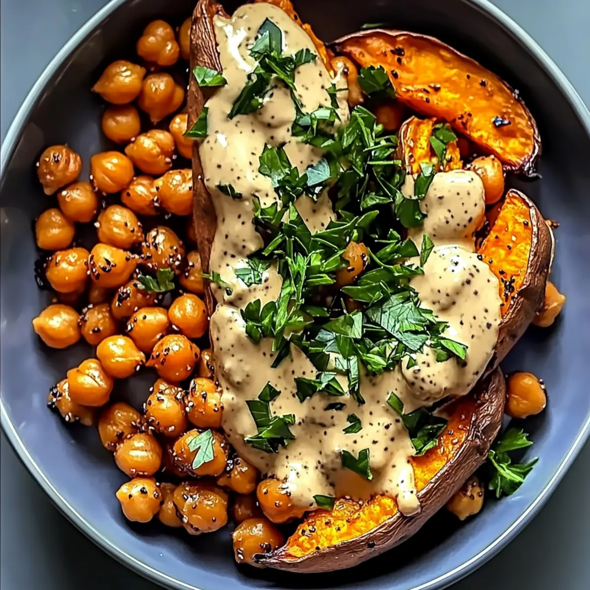 Nutritious Delight: This dish packs in vitamins and minerals, making it a healthy choice for any meal. Ease of Preparation: With just a few simple steps, you can create a stunning dish that looks fancy but is incredibly easy to whip up. Versatile Serving: Enjoy it as a main course or a delightful side; it pairs perfectly with options like crispy kale salad. Flavor Fusion: The sweet potato’s natural sweetness contrasts beautifully with the nutty, creamy tahini butter chickpeas, offering a balance of robust flavors. Meal Prep Friendly: This budget-friendly recipe is perfect for meal prep, saving you both time and money. Your kitchen will be filled with cozy aromas that invite everyone to the table!