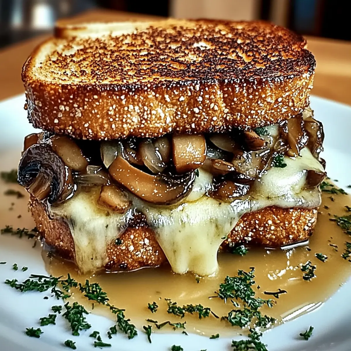 As I stood over the stove, the sweet aroma of caramelizing onions filled my kitchen, instantly transporting me to a cozy diner on a rainy afternoon. This is the essence of my Ultimate Swiss Mushroom Melt Sandwich, a warm embrace of crispy bread, savory mushrooms, and gooey Swiss cheese that I can whip up in no time. Not only is this vegetarian delight the perfect solution for quick lunches, but it also elevates comfort food to a whole new level—your taste buds will thank you! With room to personalize it your way, whether you prefer a tangy mustard kick or a touch of heat, this sandwich is as versatile as it is delicious. What toppings will you add to make it your own? Why Is This Sandwich So Irresistible? Indulgent, the Swiss Mushroom Melt Sandwich combines the rich flavors of caramelized onions, savory mushrooms, and gooey Swiss cheese for a delightful experience. Versatile, you can customize it with your favorite toppings and substitutions—whether it’s a tangy kick from mustard or a bounty of extra veggies. Quick to prepare, this sandwich is ideal for a fast lunch, yet impressive enough for entertaining guests. Comforting and satisfying, it’s the ultimate feel-good meal that evokes warm diner memories. Pair it with a side salad or a bowl of creamy tomato soup for a complete feast that’s sure to impress! Swiss Mushroom Melt Sandwich Ingredients For the Caramelized Onions • Large Yellow Onions – Adds sweetness and depth of flavor; substitute with sweet onions if necessary. • Olive Oil – Used for sautéing, providing healthy fats; can replace with butter or another cooking oil. • Butter – Adds richness and helps caramelize the onions; use additional olive oil for dairy-free options. • Brown Sugar – Enhances sweetness in the onions; honey or maple syrup can work as substitutes. • Balsamic Vinegar – Increases acidity and balances sweetness; replace with apple cider vinegar in a pinch. • Salt and Freshly Ground Black Pepper – Seasoning that enhances flavors. For the Mushrooms • Cremini Mushrooms – Provide an earthy taste and hearty texture; replace with button mushrooms or portobellos if desired. • Garlic – Adds aromatic flavor; leave out for a milder taste. • Dry White Wine (optional) – De-glazes the pan and adds flavor depth; substitute with vegetable broth if avoiding alcohol. • Fresh Thyme Leaves – Adds aromatic freshness; omit or use dried thyme for simpler prep. For the Sandwich • Sourdough Bread (or favorite bread) – Base for the sandwich; adds texture; use whole grain bread for a healthier option. • Swiss Cheese – Nutty flavor that melts beautifully; use Gruyère or a dairy-free cheese as an alternative. • Softened Butter – For spreading on the bread; enhances crispness. • Dijon Mustard (optional) – Adds tanginess; substitute with yellow mustard or omit for a milder flavor. The Swiss Mushroom Melt Sandwich allows for endless personalization—what ingredients will you choose to make this delight your own? Step‑by‑Step Instructions for Swiss Mushroom Melt Sandwich Step 1: Prepare the Onions Begin by peeling and thinly slicing two large yellow onions. Heat a large skillet over medium-low heat and add a tablespoon of olive oil along with a tablespoon of butter. Once the butter has melted, add the sliced onions to the pan, ensuring they’re coated in the oil and butter mixture for even cooking. Step 2: Caramelize the Onions Cook the onions slowly for 30-45 minutes, stirring occasionally, until they turn deep golden brown and become soft. This low-and-slow method is essential for developing the sweet, rich flavor of the onions that will elevate your Swiss Mushroom Melt Sandwich. Watch for a slight sticky residue as they caramelize, indicating they are ready. Step 3: Add Sweetness Once the onions are caramelized, stir in a teaspoon of brown sugar and a splash of balsamic vinegar, mixing well. Continue cooking for about 2-3 minutes, until the sugar dissolves and the mixture becomes syrupy. Season with salt and freshly ground black pepper to enhance the flavors, then remove the skillet from heat and set the caramelized onions aside. Step 4: Prepare the Mushrooms Clean and slice 8 ounces of cremini mushrooms while the onions cool. In the same skillet, add a bit more olive oil and increase the heat to medium-high. Add the sliced mushrooms, ensuring not to overcrowd the pan, and sauté for about 8-10 minutes until they become browned and tender, stirring occasionally. Step 5: Infuse Aromatics Once the mushrooms are browned, add a minced clove of garlic and a few sprigs of fresh thyme. Stirring for about 1 minute will release their aromatic flavors, creating a beautiful base for your Swiss Mushroom Melt Sandwich. Remove from heat when fragrant, and give it a season with salt and pepper. Step 6: Assemble the Sandwich Butter one side of each slice of sourdough bread and spread Dijon mustard on the unbuttered sides of two slices. Place Swiss cheese on each slice of bread, then layer on the caramelized onions and sautéed mushrooms. Top with another slice of bread, buttered-side up, ready for grilling. Step 7: Grill the Sandwiches Heat the skillet over medium heat and carefully place the assembled Swiss Mushroom Melt Sandwiches in the pan. Grill for 3-5 minutes on each side or until the bread turns golden brown and crispy, and the cheese has melted beautifully. Covering the skillet with a lid will help the cheese melt evenly. Step 8: Serve and Enjoy Once your sandwiches are grilled to perfection, carefully slice them in half with a sharp knife. Serve immediately to fully enjoy the melty goodness of the Swiss Mushroom Melt Sandwich, complete with warm, caramelized onions and savory mushrooms. Make Ahead Options These Swiss Mushroom Melt Sandwiches are perfect for meal prep enthusiasts! You can prepare the caramelized onions and sauté the mushrooms up to 3 days in advance, allowing you to save time during busy weeknights. Store th