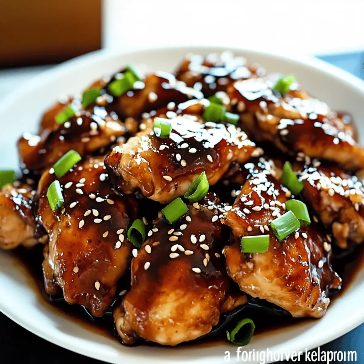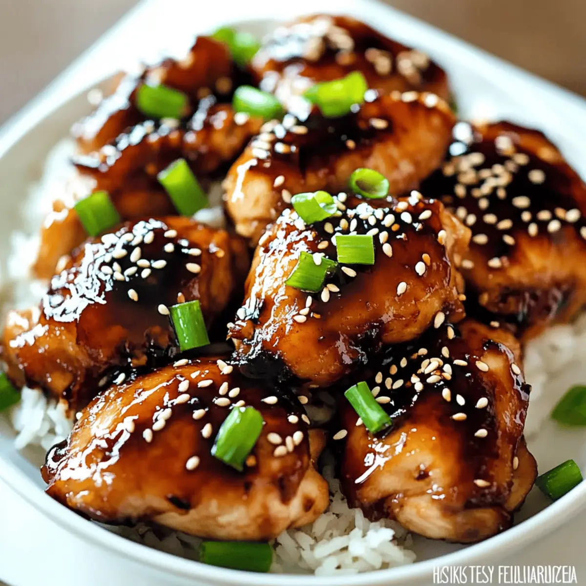 The sweet, tantalizing scent of teriyaki chicken sautéing in the pan is enough to make anyone’s mouth water. As I stood in my kitchen, watching the chicken thighs transform into tender, glossy morsels, I couldn’t help but feel excited about sharing this recipe. My Easy Teriyaki Chicken has quickly become a staple in our household—not only because it’s a breeze to prepare in just 30 minutes, but also due to the joy it brings to the dinner table. Whether you’re looking to impress family or seeking a comforting weeknight dinner, this dish is the answer. Plus, it’s adaptable; you can easily kick up the heat for those who crave a spicy twist. Isn’t it wonderful to have a recipe that promises both speed and satisfaction? How do you like your teriyaki chicken—sweet, spicy, or somewhere in between? Why Is Teriyaki Chicken So Loved? Simplicity: With only a few ingredients, this dish is easy to whip up, making it perfect for busy weeknights. Deliciously Versatile: You can easily customize it to suit your taste, whether you prefer it sweet or with a spicy kick. Family-Friendly: Everyone loves teriyaki chicken, and it’s a hit with both kids and adults alike! Quick Meal Solution: Ready in just 30 minutes, it’s a fantastic option when you’re short on time but still want something homemade. Perfect Pairings: Serve it over rice, with stir-fried veggies, or alongside a refreshing cucumber salad for a complete meal. This recipe truly shines, bringing warm, delightful flavors to your table that will make everyone ask for seconds! Teriyaki Chicken Ingredients • Here’s everything you need to make this easy and delicious Teriyaki Chicken. For the Chicken Chicken thighs (1 lb / 450g) – Juicy and flavorful, these provide the perfect base; for a leaner option, boneless chicken breasts work well. Vegetable oil (1 tbsp) – Essential for cooking the chicken without sticking; can easily be swapped for canola or sesame oil. For the Teriyaki Sauce Soy sauce (2 tbsp) – Adds that savory umami flavor; tamari is a great gluten-free alternative. Honey or brown sugar (2 tbsp) – Balances the saltiness of soy sauce with sweetness; try maple syrup if you’re feeling adventurous! Rice vinegar (2 tbsp) – Offers a touch of acidity to brighten the sauce; apple cider vinegar is a suitable substitute. Water (1/4 cup) – Helps achieve the right consistency for glazing without overpowering flavors. Fresh ginger, minced (1 tsp) – Infuses the dish with a fragrant, spicy touch; ground ginger works in a pinch, but fresh is best. Garlic, minced (1 tsp) – Builds aromatic depth in the sauce; garlic powder can be used if needed. Cornstarch mixed with water (1 tbsp cornstarch + 2 tbsp water) – This thickens the sauce to coat your chicken beautifully; no substitutes needed. For the Garnish Sesame seeds and chopped green onions – Adds a delightful crunch and visual appeal; use them for that finishing touch. This easy Teriyaki Chicken recipe is sure to make a splash at your dinner table! Enjoy the vibrant flavors and flexibility that come with each mouthful. Step‑by‑Step Instructions for Easy Teriyaki Chicken Step 1: Prepare the Sauce In a small bowl, combine 2 tablespoons of soy sauce, 2 tablespoons of honey or brown sugar, 2 tablespoons of rice vinegar, and 1/4 cup of water. Add 1 teaspoon of minced fresh ginger and 1 teaspoon of minced garlic. Whisk everything together until well blended, ensuring the sugar dissolves. Set this teriyaki sauce aside while you get the chicken ready to maximize its flavor. Step 2: Cook the Chicken Heat 1 tablespoon of vegetable oil in a large skillet over medium-high heat. Once the oil shimmers, season 1 pound of chicken thighs with salt and pepper, then add them to the skillet. Allow the chicken to sear for about 5-7 minutes, flipping once until both sides are golden brown and the chicken is cooked through, reaching an internal temperature of 165°F. Step 3: Combine Chicken and Sauce Once the chicken is perfectly cooked and golden, pour the prepared teriyaki sauce over the chicken in the skillet. Stir vigorously to ensure each piece of chicken is evenly coated in the sauce. Allow this mixture to bubble for a minute or two, creating a harmonious blend of flavors before you thicken the sauce. Step 4: Thicken Sauce Reduce the heat to low, and in a separate small bowl, mix 1 tablespoon of cornstarch with 2 tablespoons of water to create a slurry. Pour the slurry into the skillet with the chicken and sauce, stirring continuously for 2-3 minutes until the sauce thickens and glistens, perfectly enveloping the teriyaki chicken. Step 5: Finish and Serve Once the sauce has thickened to your liking, remove the skillet from heat. Garnish your teriyaki chicken with a sprinkle of sesame seeds and chopped green onions for both flavor and presentation. Serve this delightful dish hot over a bed of steamed rice or noodles, creating a satisfying, wholesome meal. Expert Tips for Teriyaki Chicken Customize the Heat: Add red pepper flakes or sriracha to amp up the spice level of your teriyaki chicken according to your family’s taste preferences. Don’t Overcrowd the Pan: Avoid placing too many chicken pieces in the skillet at once, as this can lead to steaming instead of searing. Use Fresh Ingredients: Fresh ginger and garlic enhance the dish’s flavor significantly. Opt for these over dried alternatives for the best teriyaki chicken experience. Let the Sauce Thicken: Ensure you allow the cornstarch slurry time to thicken the sauce properly; this creates that irresistible glossy coat on the chicken. Serve Immediately: Teriyaki chicken is best served hot. If you need to prepare it ahead, reheat gently to retain the tender texture. What to Serve with Easy Teriyaki Chicken? Creating a delightful meal around your teriyaki chicken promises an evening of joy and flavor for everyone at the table. Steamed Jasmine Rice: The light and fragrant rice beautifully soaks up the sweet teriyaki sau