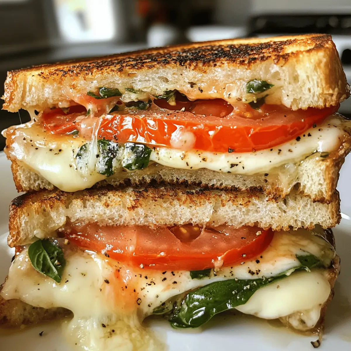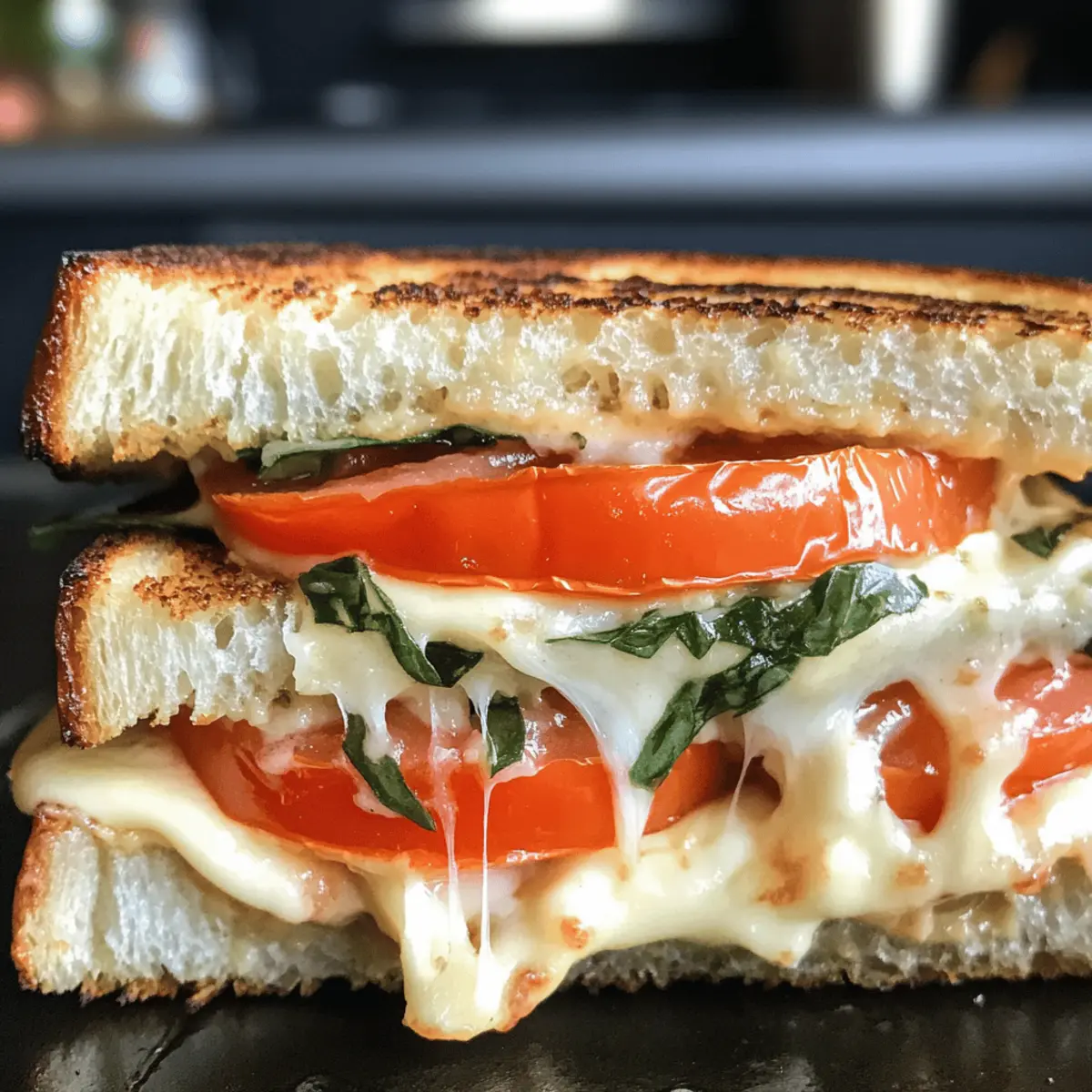 A delightful Tomato Basil Grilled Cheese that combines creamy mozzarella, sweet tomatoes, and fresh basil, providing an extraordinary twist on a classic comfort dish.