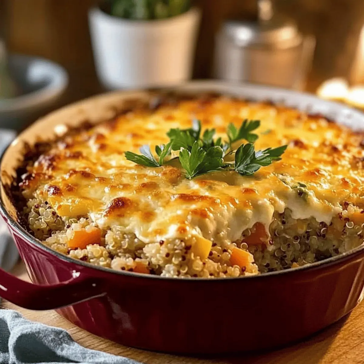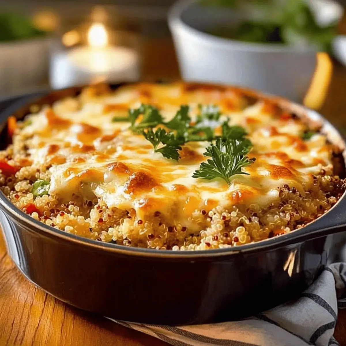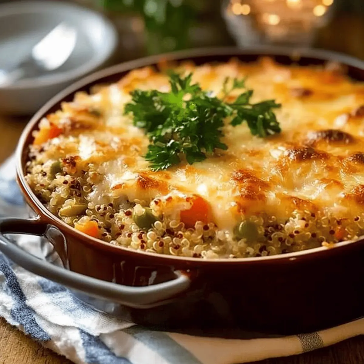 In the middle of a bustling week, I found myself staring into a fridge packed with colorful veggies. As I played a game of “What’s for dinner?” the answer became clear: a cozy, Veggie-Packed Quinoa Casserole. This dish is a nourishing delight that combines vibrant veggies and protein-rich quinoa, effortlessly transforming them into a nutritious meal that even the busiest schedules can accommodate. With its creamy texture and gooey melted cheese topping, it strikes the perfect balance between wholesome and indulgent. Plus, it’s an excellent make-ahead option for meal-prepping or inviting friends over for a potluck. Who can resist the comfort of a cheesy bake that’s both healthy and satisfying? Excited to bring this mouthwatering casserole to your table? Let’s dive into the recipe! Why is this casserole a must-try? Wholesome Comfort: Packed with colorful vegetables, this Veggie-Packed Quinoa Casserole transforms ordinary ingredients into a heartwarming dish that satisfies both hunger and health goals. Easy to Make: With straightforward steps, this recipe is perfect for home cooks of any level. It serves as a fantastic way to elevate your weeknight dinners or impress guests at gatherings. Flavor Explosion: The medley of spices, combined with gooey cheese, creates a mouthwatering experience that no one can resist. Meal Prepping Win: Prepare it ahead of time and store it in the fridge for a quick and nourishing meal. Pair it with a side salad, just like my Pot Pie Casserole or a warm soup for a complete spread. Versatile Options: Feel free to swap the veggies or grains based on what you have on hand. This adaptability makes it a perfect dish for using up leftovers! Veggie-Packed Quinoa Casserole Ingredients For the Casserole • Quinoa – A complete protein that adds a nutty flavor; swap for brown rice or farro for a twist. • Vegetable Broth – Boosts the quinoa’s taste; water can be used if you’re in a pinch. • Olive Oil – Infuses richness and healthy fats; avocado oil makes a great alternative. • Onion – Creates a savory base; shallots can be a delicious substitution. • Garlic – Adds aromatic depth; garlic powder works in a hurry if needed. • Bell Pepper – Brings sweetness and color; feel free to choose red, yellow, or green. • Zucchini – Contributes moisture and blends well with other veggies; yellow squash is a suitable swap. • Cherry Tomatoes – Offers a juicy burst; you can use regular diced tomatoes instead. • Baby Spinach – Packs in nutrition and volume; kale can be an excellent alternative. • Mushrooms – Delivers umami richness; any favorite fungi like shiitake or cremini can work too. For the Seasoning • Dried Oregano & Basil – Kick up the flavor; use Italian seasoning if that’s what you have on hand. • Smoked Paprika – Provides a cozy smokiness; regular paprika can replace it in a pinch. • Salt and Pepper – Essential for enhancing flavor; adjust to your taste preference. For the Sauce • Tomato Sauce – Adds moisture and flavor; homemade or marinara works wonderfully. • Greek Yogurt (or Sour Cream) – Adds a rich creaminess; consider dairy-free yogurt for a vegan option. • Red Pepper Flakes – A zesty touch for those who enjoy a bit of heat; optional if you prefer mild. For the Topping • Mozzarella Cheese – Melts wonderfully over the casserole; go for dairy-free cheese for a vegan dish. • Parmesan Cheese – Offers a savory kick; can be omitted for a dairy-free option. • Fresh Parsley or Basil – Adds a pop of color and fresh flavor on top. Embrace the adventure of creating this Veggie-Packed Quinoa Casserole, and enjoy the nutrition and comfort it brings to your table! Step‑by‑Step Instructions for Veggie-Packed Quinoa Casserole Step 1: Cook the Quinoa In a medium saucepan, bring 2 cups of vegetable broth to a vibrant boil. Add 1 cup of rinsed quinoa, cover, and reduce the heat to low. Let it simmer for about 12-15 minutes until all the liquid is absorbed. Once done, fluff the quinoa with a fork and set it aside to cool slightly while you prepare the vegetables. Step 2: Sauté Vegetables In a large skillet, heat 2 tablespoons of olive oil over medium heat. Add 1 chopped onion and 2 minced garlic cloves, sautéing until the mixture is fragrant and the onions are translucent, about 3 minutes. Next, introduce 1 diced bell pepper, 1 sliced zucchini, and 1 cup of sliced mushrooms. Cook for another 5-7 minutes until the veggies are softened and vibrant, then stir in 1 cup of halved cherry tomatoes and 2 cups of baby spinach, cooking until wilted. Step 3: Prepare Sauce In a mixing bowl, combine 1 cup of tomato sauce, ½ cup of Greek yogurt (or sour cream), and a pinch of red pepper flakes if desired. Stir until the mixture is well blended and creamy. This sauce will add a rich flavor and moisture to your Veggie-Packed Quinoa Casserole, perfectly complementing the vegetables. Step 4: Preheat the Oven While you prepare the casserole, preheat your oven to 190°C (375°F). This ensures that once your casserole is assembled, it can go straight into the oven for a delightful bake. Step 5: Combine & Transfer In a large mixing bowl, combine the cooked quinoa with the sautéed vegetables and the prepared sauce. Mix well until all ingredients are evenly coated and harmonious. Transfer this colorful mixture into a greased 9×13 inch baking dish, spreading it evenly with a spatula for a beautiful presentation. Step 6: Top and Bake Sprinkle 1 cup of shredded mozzarella and ¼ cup of grated parmesan cheese generously over the top of the casserole. Cover the dish with aluminum foil and bake it in the preheated oven for 20 minutes. Remove the foil afterward and bake for an additional 10 minutes, or until the cheese is bubbly and golden brown, creating a delightful cheesy crust. Step 7: Rest and Garnish Once removed from the oven, let the Veggie-Packed Quinoa Casserole rest for about 5 minutes to set. Garnish with fresh