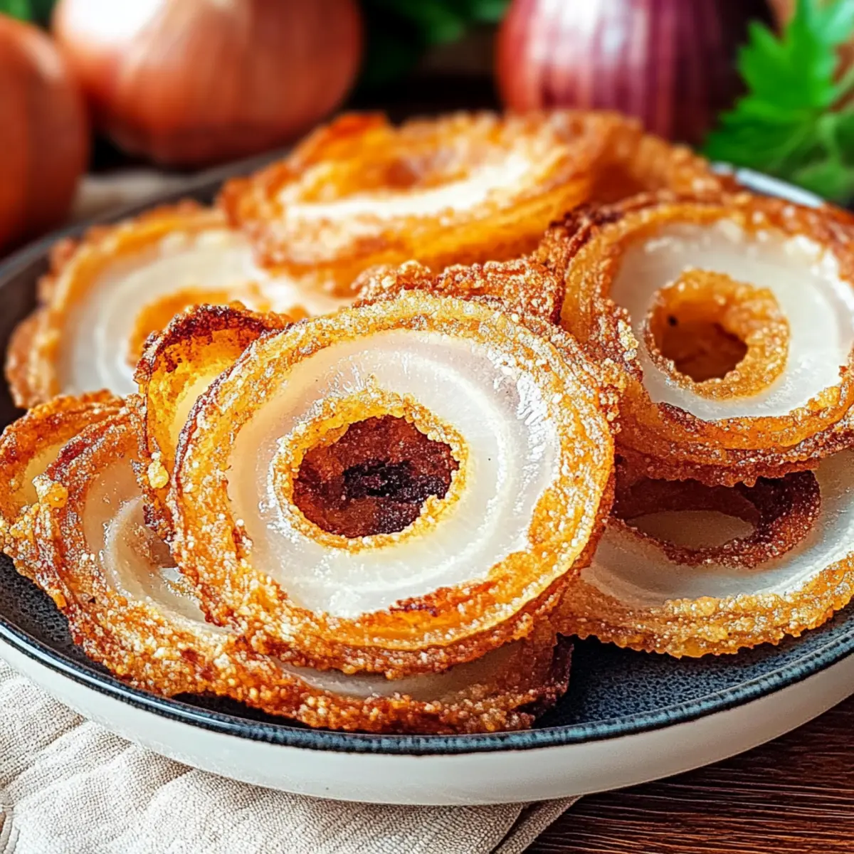 The smell of crispy fried onion rings wafted through my kitchen, but I craved something lighter and healthier. Enter the Crispy Viral Onion Ring Chips—my new obsession! These delightful low-carb snacks are guilt-free yet pack a crunch that will make your taste buds dance. Simple ingredients like Parmesan cheese and yellow onions come together to create a savory treat that’s perfect for dipping or topping on your favorite burger. Not only are they quick and easy to make, but they also fit perfectly into any keto meal plan. Whether you’re hosting game night or just indulging in a weekday snack, these chips are a true crowd-pleaser. Ready to whip up a batch and discover your new favorite nibble?