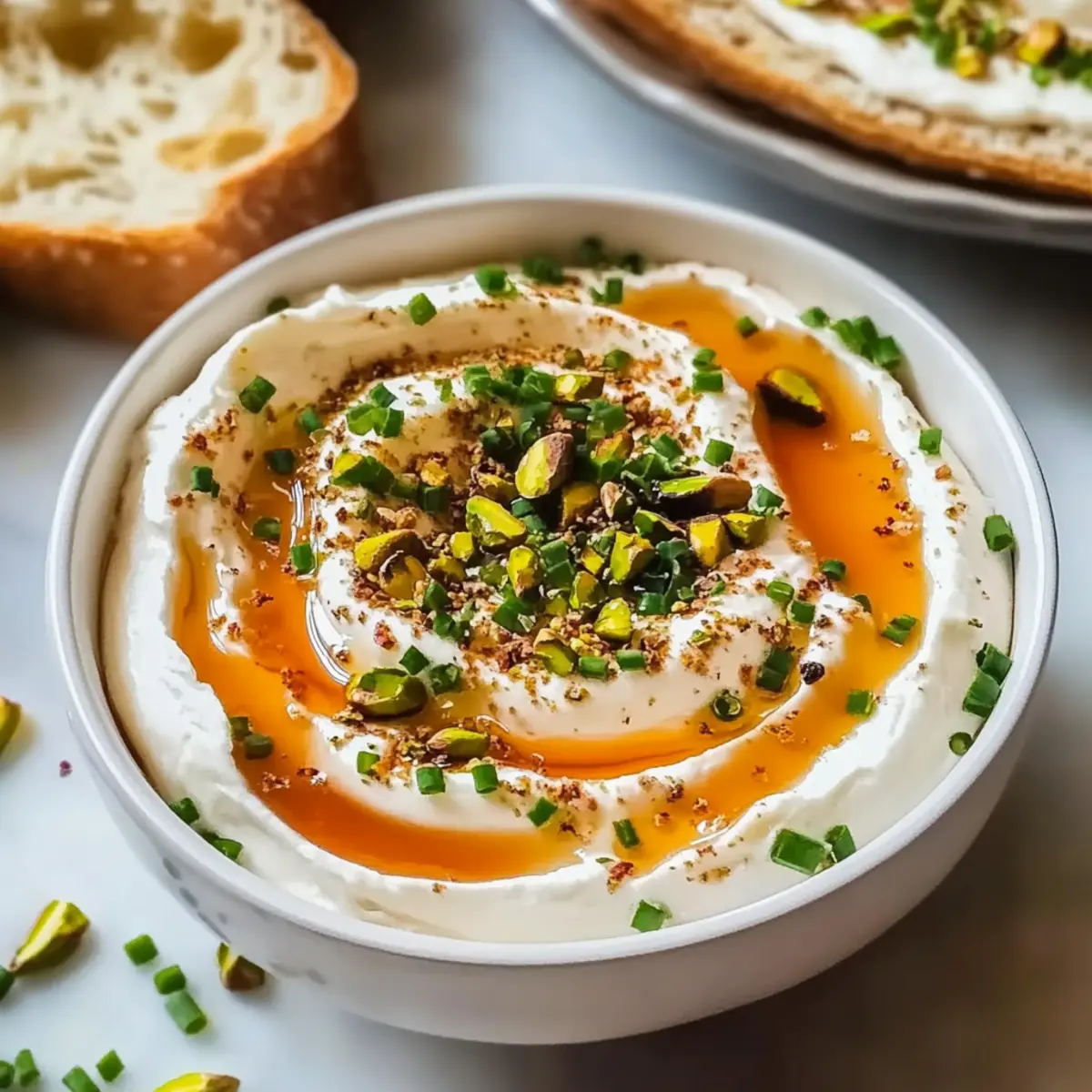 A moment of culinary inspiration hit me while exploring the vibrant aisles of my local market—what if I could elevate a simple gathering with just a few ingredients? Enter the Whipped Goat Cheese with Hot Honey, a recipe that transforms creamy cheese into a luxurious appetizer in five minutes flat. Its fluffiness, beautifully contrasted by the sweet heat of hot honey, is not only visually stunning but also a guaranteed crowd-pleaser. This quick and simple dish is vegetarian-friendly, making it perfect for any occasion, whether you’re hosting friends or indulging in a cozy night in. So, are you ready to impress your guests with this delightful spread? Let’s dive into the deliciousness! Why is this appetizer a must-try? Quick and Easy: Whipped Goat Cheese with Hot Honey can be made in just five minutes, making it an irresistible option for last-minute gatherings. Sophisticated Taste: The combination of tangy goat cheese and sweet, spicy honey creates a delightful flavor explosion that’s sure to impress. Versatile Pairing: This spread pairs beautifully with fresh veggies, crackers, or even crostini, allowing for endless serving options. Vegetarian-Friendly: Enjoy this recipe as a delicious appetizer suitable for everyone at the table, no meat required! Customizable: Mix it up by adding different nuts or herbs to suit your tastes, just as you might with a Breakfast Grilled Cheese or Baked Mac and Cheese. Crowd-Pleaser: Serve it at your next event, and watch your guests rave—this luscious spread will be the highlight of any meal! Whipped Goat Cheese with Hot Honey Ingredients For the Whipped Cheese • Chèvre Goat Cheese – This tangy cheese forms the creamy base; substitute with cream cheese for a milder flavor or ricotta for a lighter texture. • Olive Oil – Adds richness and moisture; while no direct substitute is recommended, other oils may also work well. • Kosher Salt – Enhances the overall flavor profile; feel free to swap for sea salt if preferred. • Freshly Ground Black Pepper – Introduces depth to the dish; omit entirely if you’re sensitive to spice. For the Hot Honey Drizzle • Hot Honey – Infuses the dish with sweet heat; for custom spice levels, replace with a mix of honey and chili flakes. A vegan option can be made with maple syrup and chili flakes! For the Toppings • Salted Pistachios – Provides a delightful crunch; other nuts like walnuts or almonds can be substituted if desired. • Fresh Chives – Adds a burst of herbal brightness; green onions or parsley can work nicely as alternatives. Step‑by‑Step Instructions for Whipped Goat Cheese with Hot Honey Step 1: Prepare the Goat Cheese Begin by crumbling 8 ounces of chèvre goat cheese into the bowl of a food processor. This initial step is crucial for ensuring a smooth texture. Make sure the cheese is at room temperature for easy blending. With a spatula, push any stubborn chunks to the sides as you prepare to blend. Step 2: Add the Oil and Seasonings Drizzle in 2 tablespoons of olive oil over the crumbled goat cheese. Then, sprinkle in a pinch of kosher salt (about 1/4 teaspoon) and a grind of freshly cracked black pepper. These seasonings enhance the flavor of the whipped goat cheese with hot honey. This mixture will create a rich and creamy base, ready to be transformed. Step 3: Blend Until Fluffy Secure the lid on your food processor and blend the cheese mixture on low speed for about 15 seconds. This prevents splatter. Gradually increase the speed and blend for 1-2 minutes until the mixture is light and airy. You’re aiming for a fluffy texture that resembles a creamy mousse, perfect for scooping. Step 4: Transfer to Serving Bowl Once your goat cheese is whipped to perfection, carefully transfer it into a shallow serving bowl. Use a spatula to create a well-defined surface area for the toppings. This step ensures your whipped goat cheese with hot honey will show beautifully, making it both inviting and appetizing for serving. Step 5: Drizzle with Hot Honey Now, gently drizzle 2-3 tablespoons of hot honey over the whipped goat cheese. Allow the honey to cascade down the sides, creating an attractive visual display. This sweet heat will balance out the tangy flavor of the goat cheese, making every bite delightful and intriguing. Step 6: Add Crunchy Toppings Sprinkle roughly 2 tablespoons of chopped salted pistachios over the honey-drizzled cheese. Their crunch will add a wonderful contrast to the creamy texture. Following this, chop a few fresh chives and scatter them on top to provide herbal brightness. The vibrant colors will make your whipped goat cheese with hot honey truly eye-catching. Step 7: Serve and Enjoy Serve the whipped goat cheese with an assortment of fresh vegetables like cucumbers and bell peppers or alongside an array of crackers. This appetizer is best enjoyed freshly made while it’s fluffy and creamy. As you gather friends around, watch them marvel at this stunning dish that’s as easy to prepare as it is pleasing to the palate! Make Ahead Options Whipped Goat Cheese with Hot Honey is a fantastic option for meal prep, allowing you to impress your guests effortlessly! You can prepare the whipped goat cheese base up to 24 hours in advance and store it covered in an airtight container in the refrigerator. Just remember to keep the hot honey and toppings—like chopped pistachios and fresh chives—separate until just before serving. This will help maintain the creamy texture and ensure freshness. When you’re ready to serve, simply drizzle the hot honey over the whipped goat cheese, add the toppings, and watch as it transforms into a stunning centerpiece that is just as delicious as if it were freshly made! What to Serve with Simple Whipped Goat Cheese with Hot Honey Imagine a beautiful gathering filled with laughter and delightful bites, where this creamy, dreamy spread becomes the shining star of your table. Crunchy Veggies: Serve with fresh cucumber, bell pepper