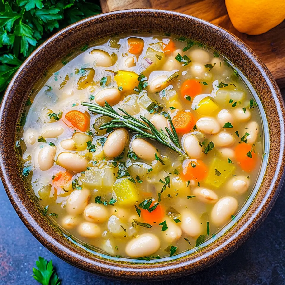 There’s something magical about the soothing aroma of rosemary wafting through the kitchen, instantly transforming your space into a haven of comfort. As I stood stirring my pot, I thought about how far I’d come from relying on takeout, and how satisfying it is to whip up a simple bowl of White Bean and Rosemary Soup in just 30 minutes. This recipe is not only incredibly easy but also perfect for meal prep, making it a staple for those busy weeknights when you crave something nutritious yet quick. With its creamy broth, rich beans, and fresh herbs, this light soup brings a delightful taste of home that leaves you feeling warm inside. Ready to discover just how easy it is to create this wholesome dish? Let’s dive in! Why is this soup a must-try? Quick and Easy: You’ll love how this recipe comes together in just 30 minutes, freeing up your evening for relaxation or family time. Wholesome Goodness: Packed with protein-rich white beans and fresh vegetables, it’s a nutritious powerhouse. Versatile Flavor: Rosemary and lemon add a delightful zing, making every spoonful a burst of freshness. Perfect for Meal Prep: Store leftovers for up to five days or freeze them for a quick meal later, just like my Chicken Noodle Soup or Broccoli Cheddar Soup. Crowd-Pleasing Recipe: This soup is sure to impress, whether you’re serving it at a dinner party or cozying up on a chilly night. Perfect with crusty bread for a satisfying meal! White Bean and Rosemary Soup Ingredients Experience the delightful simplicity of this nourishing dish! For the Soup • Olive Oil – Adds richness and aids in cooking vegetables; avocado oil is a great substitute. • Onions (1 cup, diced) – Provides a base flavor for the soup; shallots can be used for a milder taste. • Carrots (1 cup, diced) – Contributes sweetness and color; parsnips can be used for a different twist. • Celery (1 cup, diced) – Adds crunch and depth of flavor; leeks are a good alternative. • Garlic (3 cloves, chopped) – Enhances aroma and flavor; garlic powder serves as a substitute in a pinch. • Fresh Thyme (1 tsp, chopped or ½ tsp dried) – Offers earthy notes; Italian seasoning works well too. • Red Pepper Flakes (optional) – Adds a hint of heat; simply omit for a milder soup. • Chicken Broth (4 cups, or vegetable broth) – Provides the soup base; homemade broth brings out the best flavor. • White Beans (3 cans, rinsed and drained) – Supplies protein and texture; dried beans work well if soaked and cooked first. • Fresh Rosemary (2 tsp, chopped or 1 tsp dried) – Enriches the dish’s aroma; sage or oregano are suitable substitutes. • Parmesan Cheese (¼ cup, grated) – Adds creaminess and umami; nutritional yeast is perfect for a dairy-free option. • Lemon Juice (2 tbsp) – Brightens flavors; feel free to substitute with lime juice for a citrusy touch. • Parsley (2 tbsp, chopped) – Incorporates freshness; basil can provide a different flavor. • Salt and Pepper – Essential for seasoning; adjust according to the broth’s saltiness. This White Bean and Rosemary Soup brings comfort and warmth, perfect for any chilly evening! Step‑by‑Step Instructions for White Bean and Rosemary Soup Step 1: Heat the Oil In a large saucepan, drizzle 2 tablespoons of olive oil over medium-high heat. Allow the oil to warm for about 1 minute until it shimmers, signaling that it’s ready. This step is crucial as it helps create a rich base for your White Bean and Rosemary Soup, enhancing the vegetables’ flavors. Step 2: Sauté the Vegetables Add 1 cup of diced onions, 1 cup of diced carrots, and 1 cup of diced celery to the pan. Sauté the mixture for 5 to 7 minutes, stirring occasionally, until the vegetables soften and the onions become translucent. The colors should brighten, and the kitchen will begin to fill with a delicious aroma. Step 3: Incorporate Aromatics Stir in 3 cloves of chopped garlic, 1 teaspoon of chopped fresh thyme, and a pinch of red pepper flakes (if using). Cook for an additional minute, allowing the garlic to become fragrant and start to brown slightly. This aromatic blend is what makes the White Bean and Rosemary Soup so delightful and inviting. Step 4: Add the Broth and Beans Pour in 4 cups of chicken broth (or vegetable broth for a vegetarian option) while scraping the bottom of the pan to deglaze. Add 3 cans of rinsed and drained white beans and 2 teaspoons of chopped fresh rosemary. Bring the mixture to a boil over high heat, watching for bubbling at the surface that signals it’s time to reduce the heat. Step 5: Simmer and Develop Flavor Lower the heat to a gentle simmer and let the soup cook uncovered for 10 minutes. Stir occasionally to help the flavors meld together beautifully. You’ll notice the broth thickening slightly, and the vibrant herbs creating a lovely aroma, indicating that your White Bean and Rosemary Soup is progressing wonderfully. Step 6: Mix in the Cheese Remove the saucepan from the heat and stir in ¼ cup of grated Parmesan cheese. Mix well until the cheese melts completely into the soup, enriching the texture and adding a creamy dimension. This step transforms the soup into a comforting bowl of goodness, perfect for any cozy evening. Step 7: Final Touches Finally, squeeze in 2 tablespoons of lemon juice and fold in 2 tablespoons of chopped parsley. Season the soup with salt and pepper to taste, adjusting to your preference. The lemon juice brightens the flavors, making your White Bean and Rosemary Soup fresh and invigorating. Step 8: Serve and Enjoy Ladle the warm soup into bowls and serve hot, possibly accompanied by crusty artisan bread. As you take in the inviting aroma and vibrant colors, know that you have created a nourishing and heartwarming meal that’s bound to gather loved ones around the table. How to Store and Freeze White Bean and Rosemary Soup Fridge: Store your soup in an airtight container for up to 5 days. Make sure it has cooled down to room t